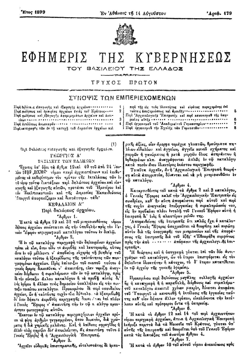 Κωδικός αναγνώρισης: 1899-179A Τίτλος: ΦΕΚ 179/14.08.1899, Τεύχος Α Μέγεθος και υπόστρωμα: Φεκ προγραμμάτων σπουδών, 4 σελίδες. |