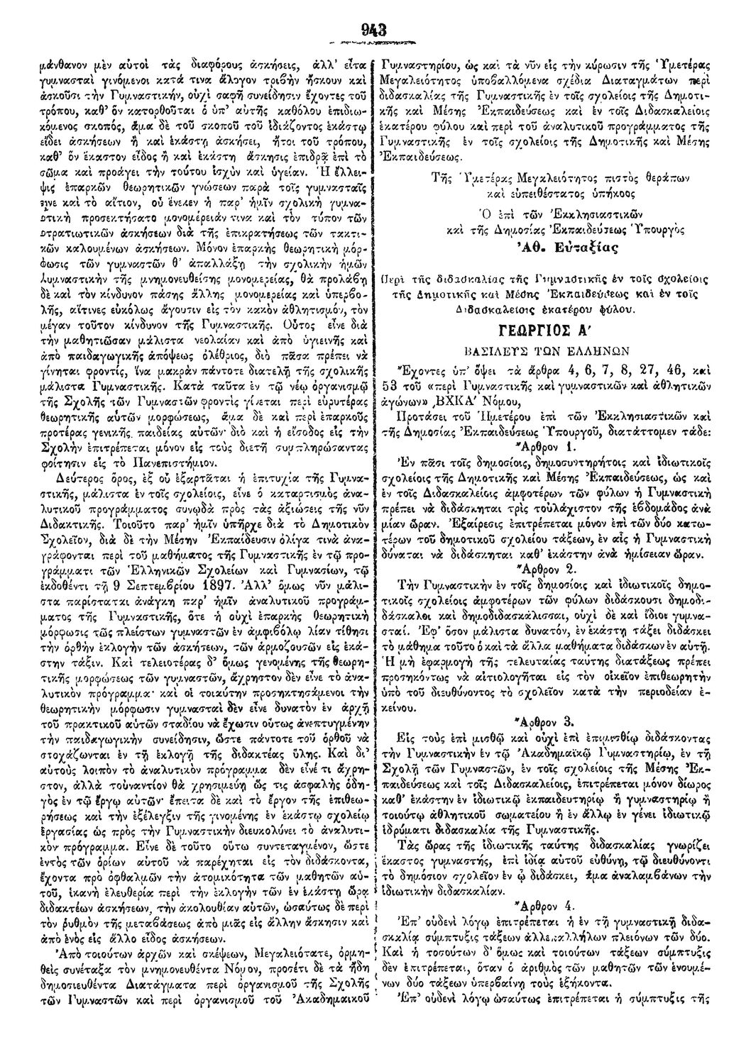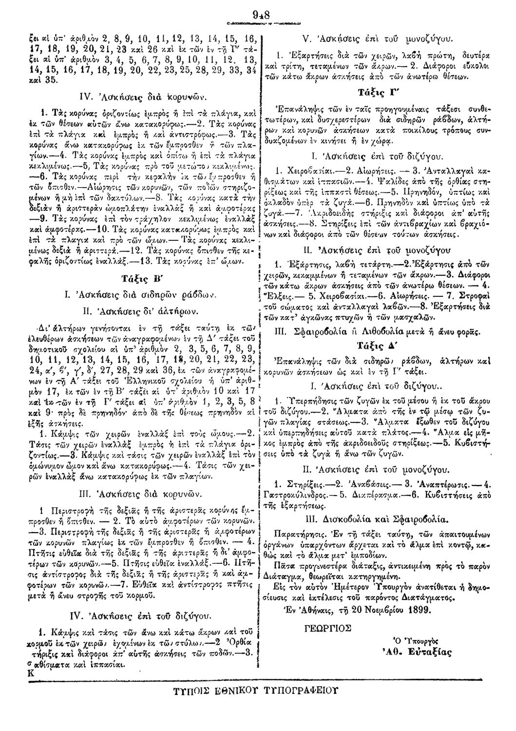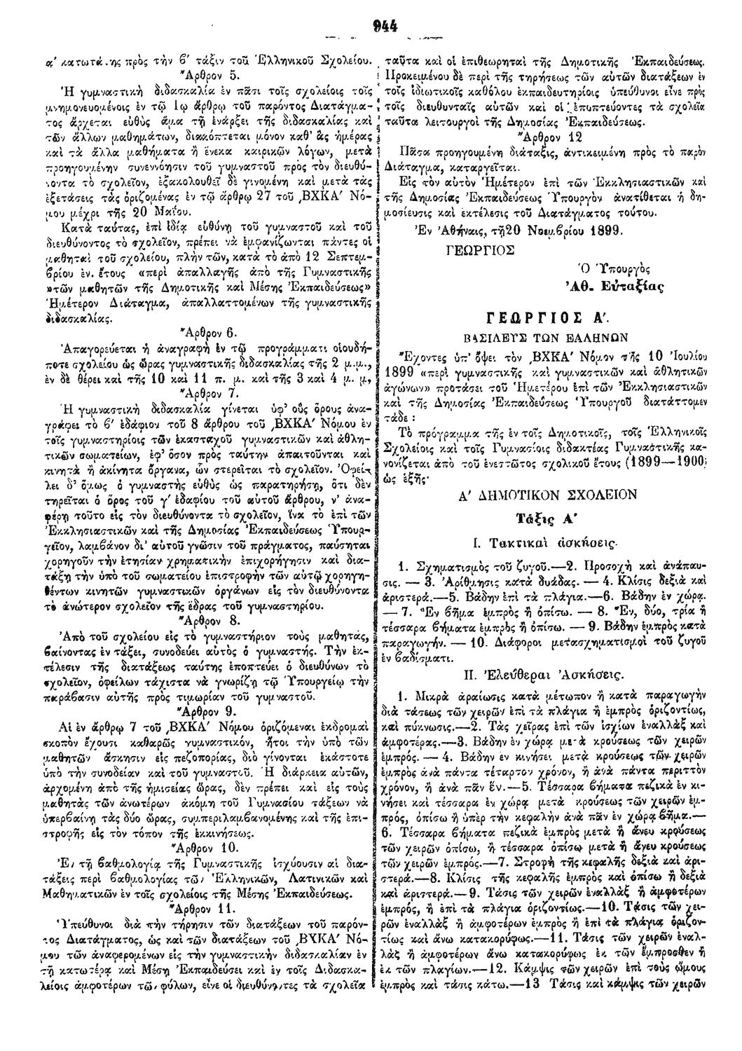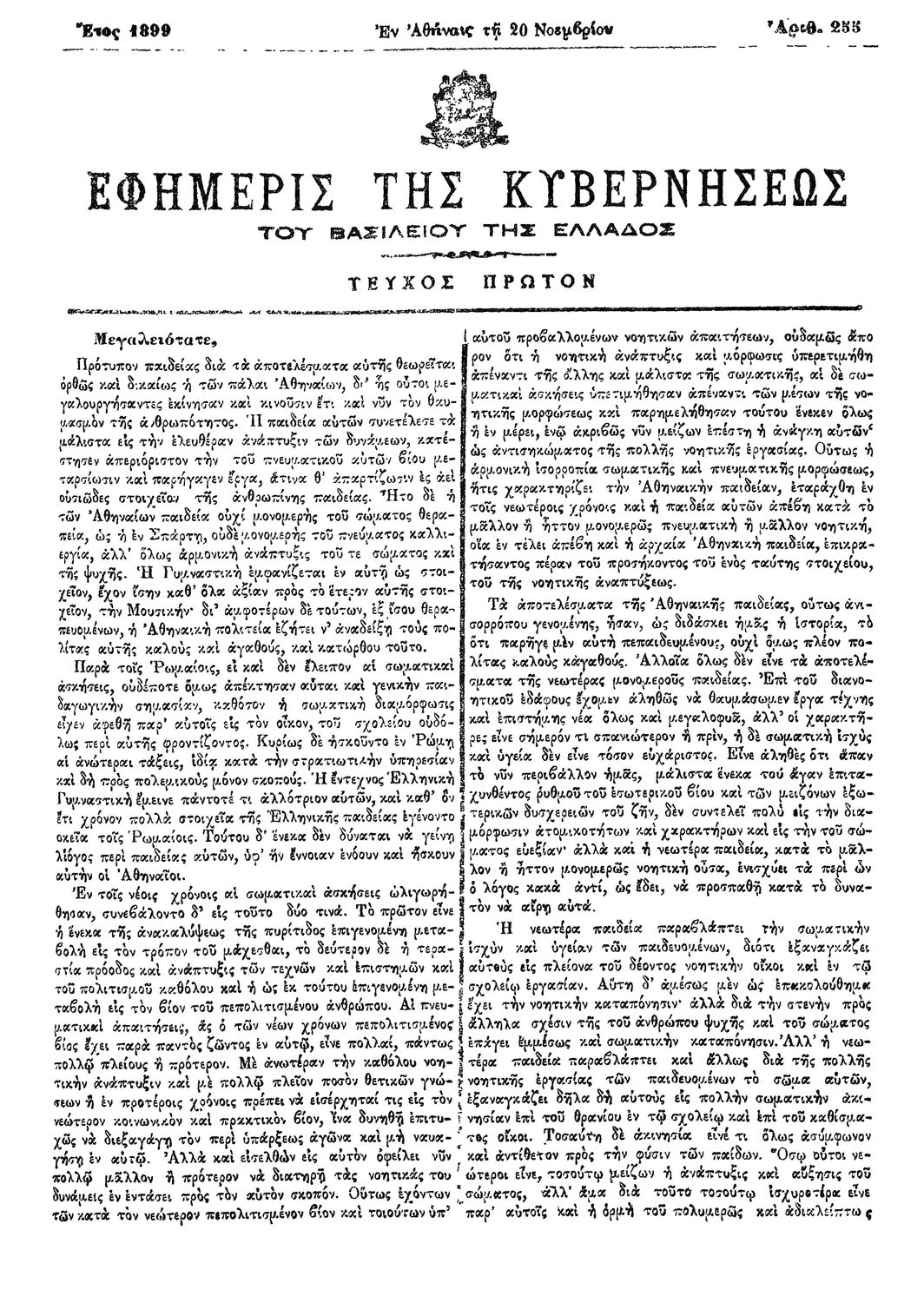 Περί της διδασκαλίας της Γυμναστικής εν τοις σχολείοις της Δημοτικής και Μέσης Εκπαιδεύσεως και εν τοις Διδασκαλείοις εκατέρου φύλου