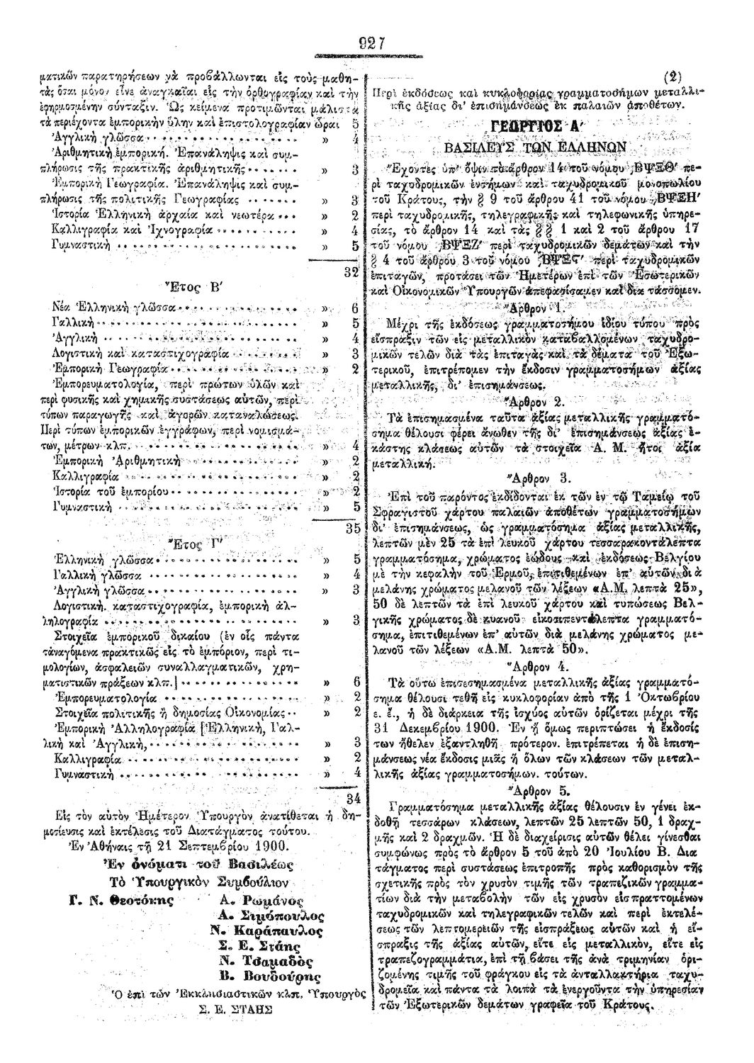 Περι συστάσεως εμπορικής Σχολής εν Ληξουρίω