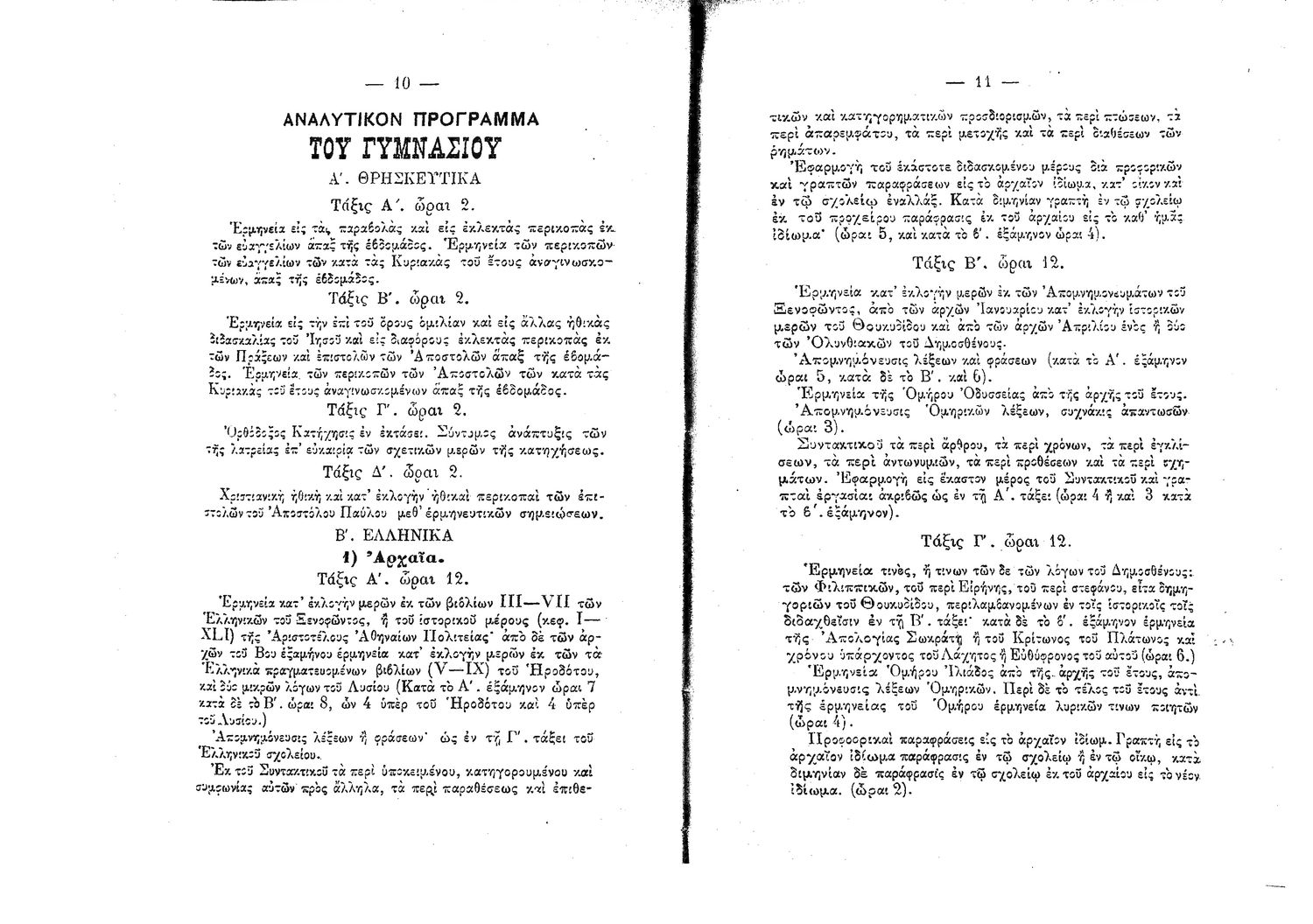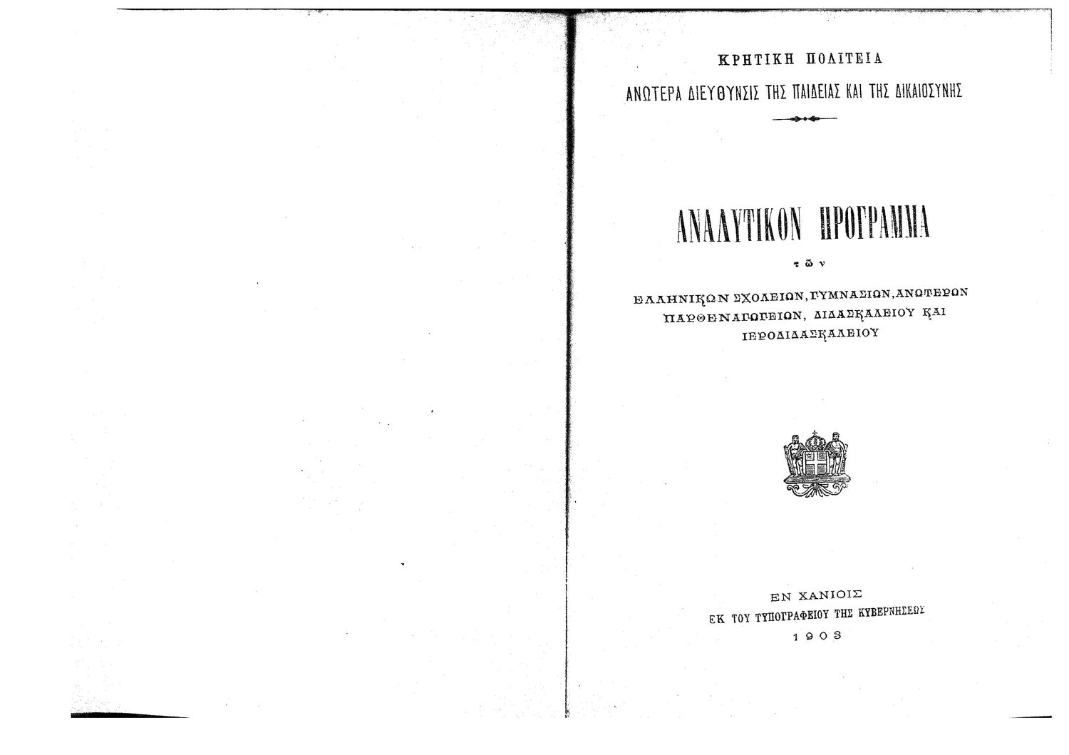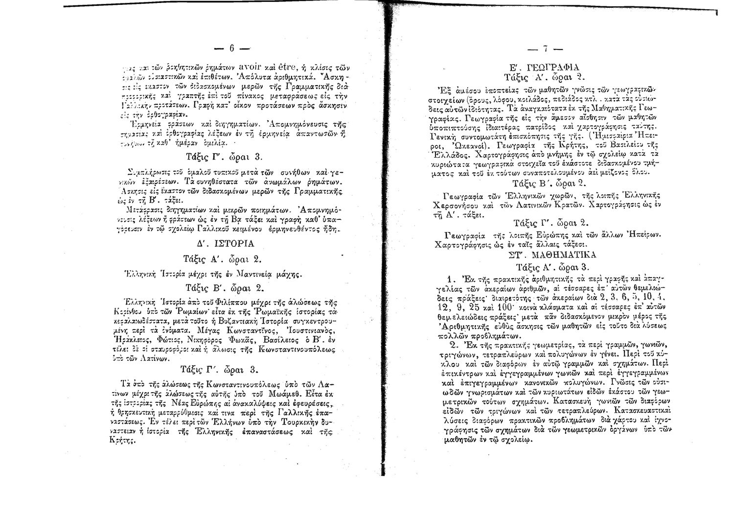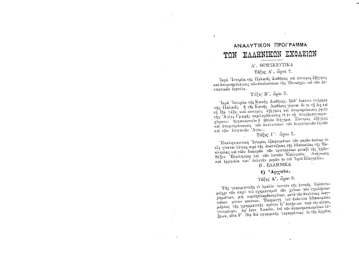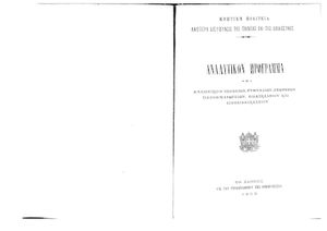 Κωδικός αναγνώρισης: 1903-0022 Τίτλος: Αναλυτικόν πρόγραμμα των ελληνικών σχολείων, γυμνασίων, ανωτέρων παρθεναγωγείων διδασκαλείου και ιεροδιδασκαλείου Μέγεθος και υπόστρωμα: Λοιπά προγραμμάτων σπουδών, 24 σελίδες. |
