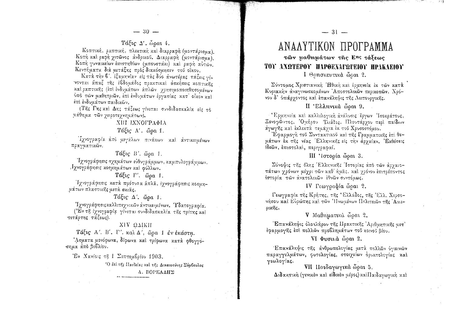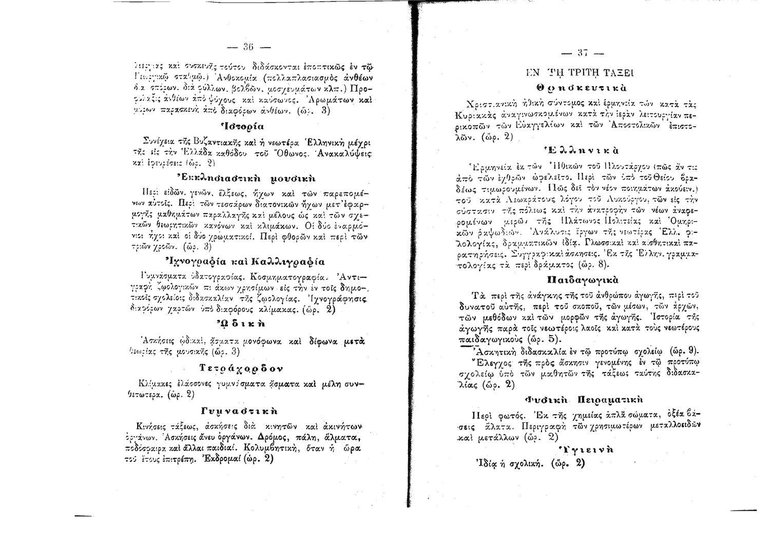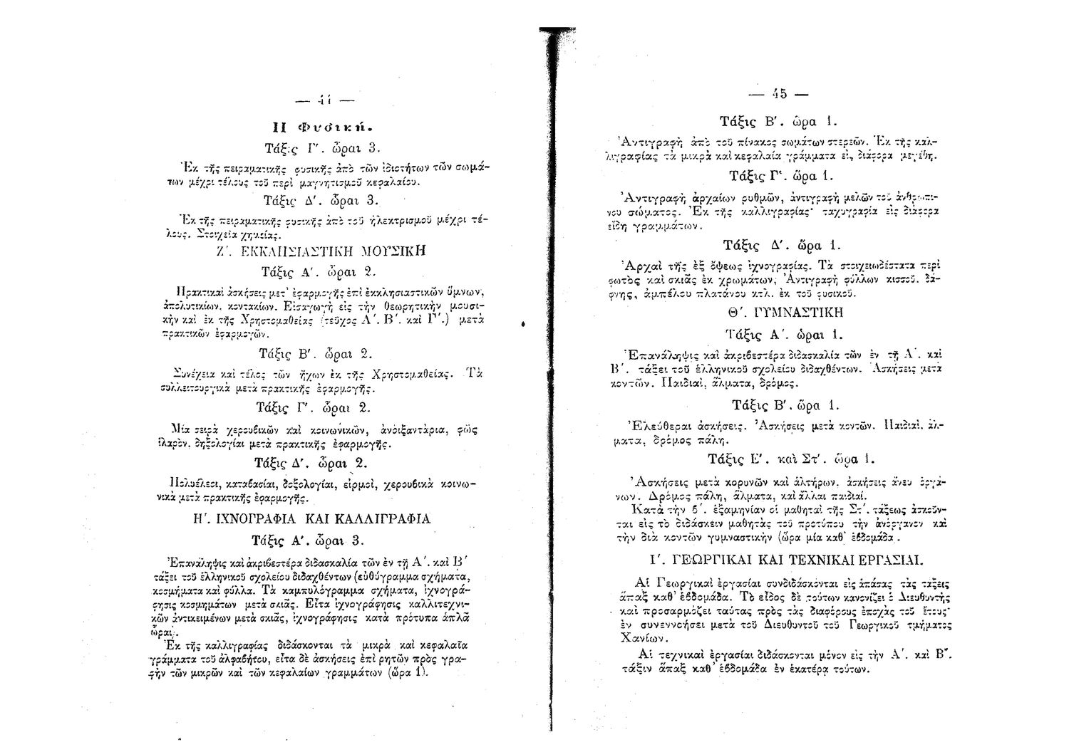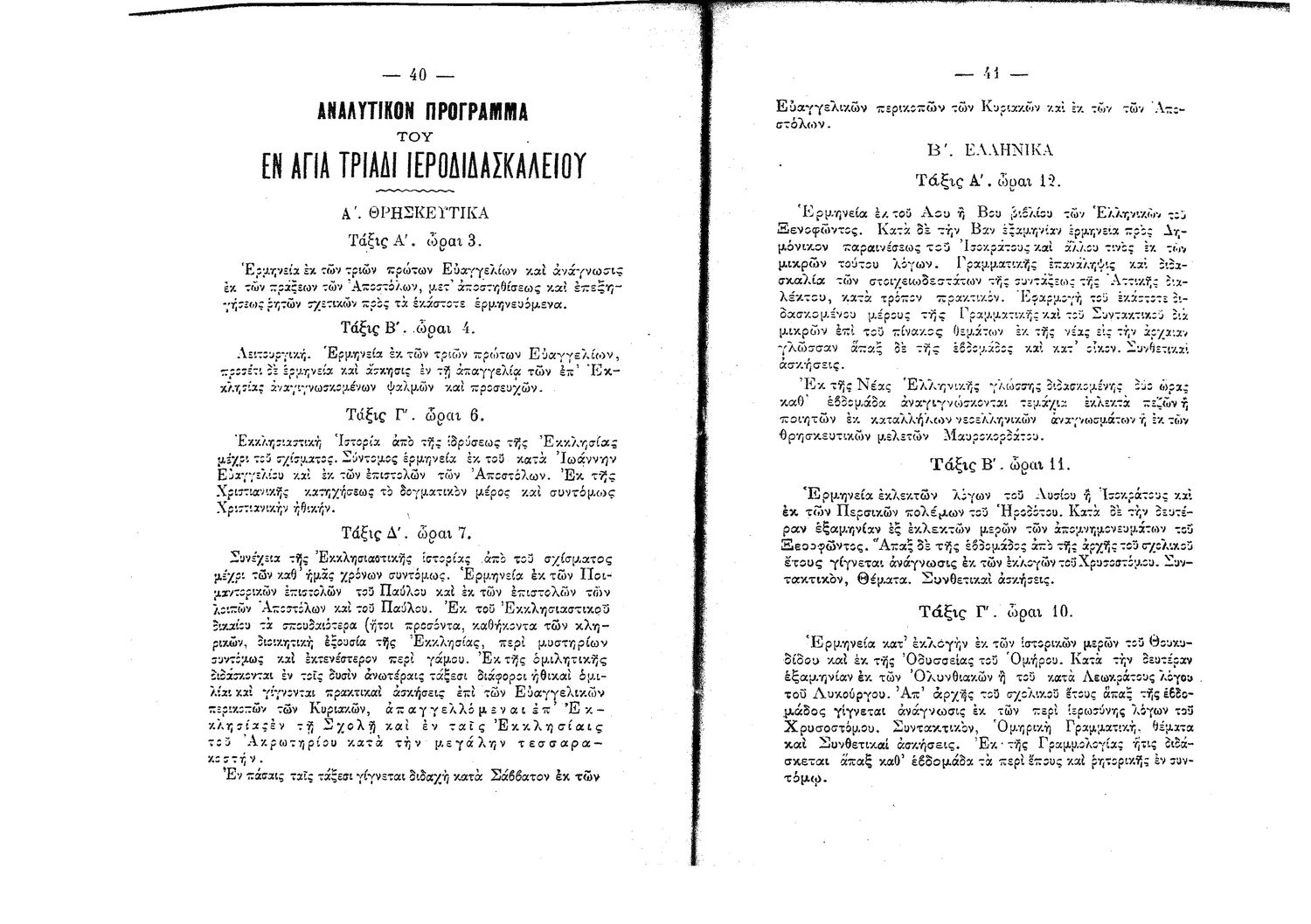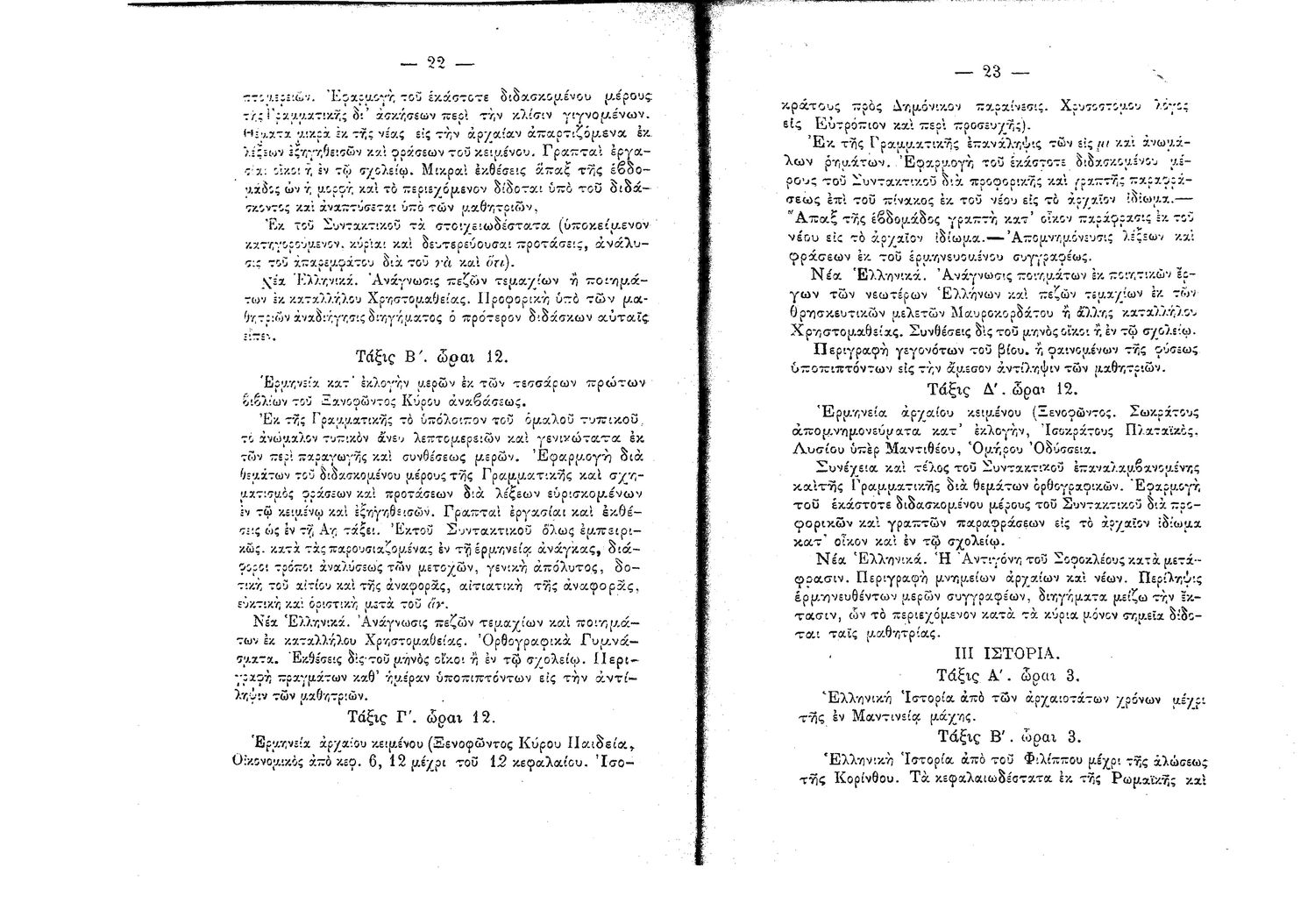 Κωδικός αναγνώρισης: 1903-0022 Τίτλος: Αναλυτικόν πρόγραμμα των ελληνικών σχολείων, γυμνασίων, ανωτέρων παρθεναγωγείων διδασκαλείου και ιεροδιδασκαλείου Μέγεθος και υπόστρωμα: Λοιπά προγραμμάτων σπουδών, 24 σελίδες. |