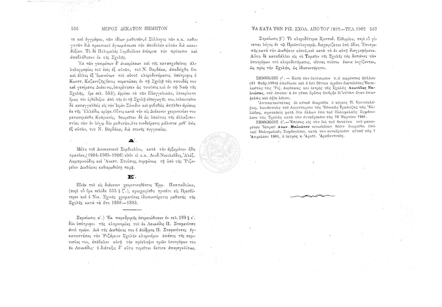 Κωδικός αναγνώρισης: 1903-0023 Τίτλος: Τα κατά την Ριζάρειον Εκκλησιαστικήν Σχολήν από της συστάσεως αυτής Μέγεθος και υπόστρωμα: Λοιπά προγραμμάτων σπουδών, 286 σελίδες. |