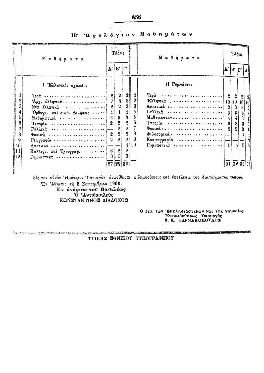 Περί κανονισμού του προγράμματος των εν τοις ελληνικοίς σχολείοις και γυμνασίοις διδακτέων μαθημάτων