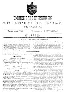 Κωδικός αναγνώρισης: 1903-216A Τίτλος: ΦΕΚ 216/16.09.1903, Τεύχος Α Μέγεθος και υπόστρωμα: Φεκ προγραμμάτων σπουδών, 3 σελίδες. |