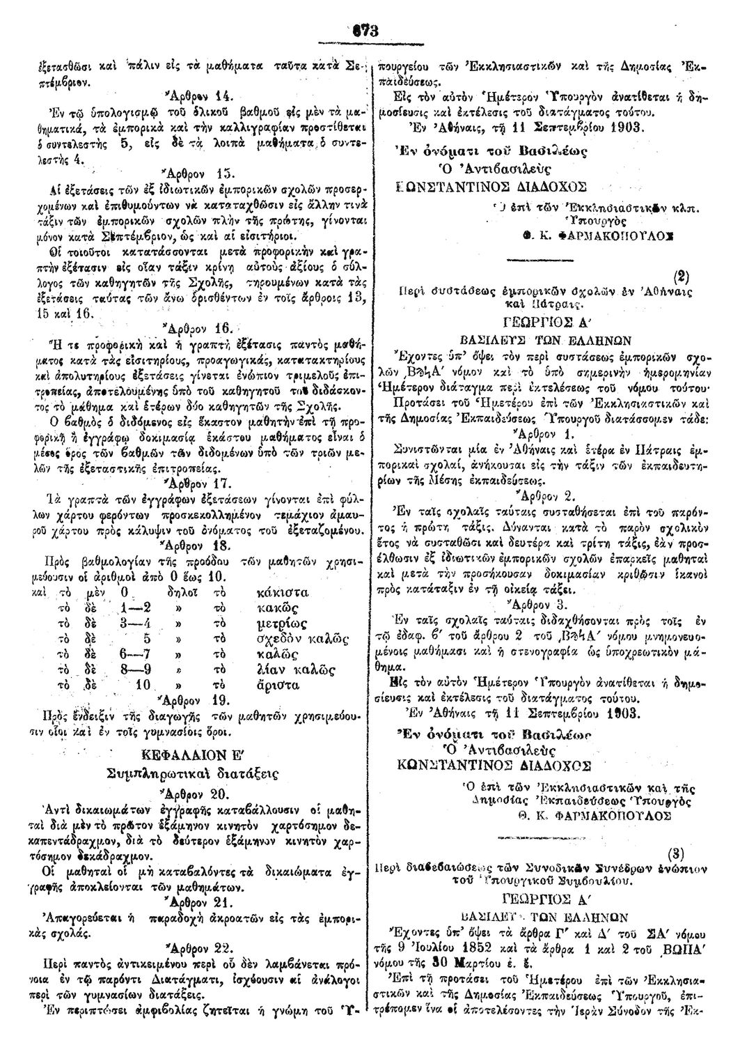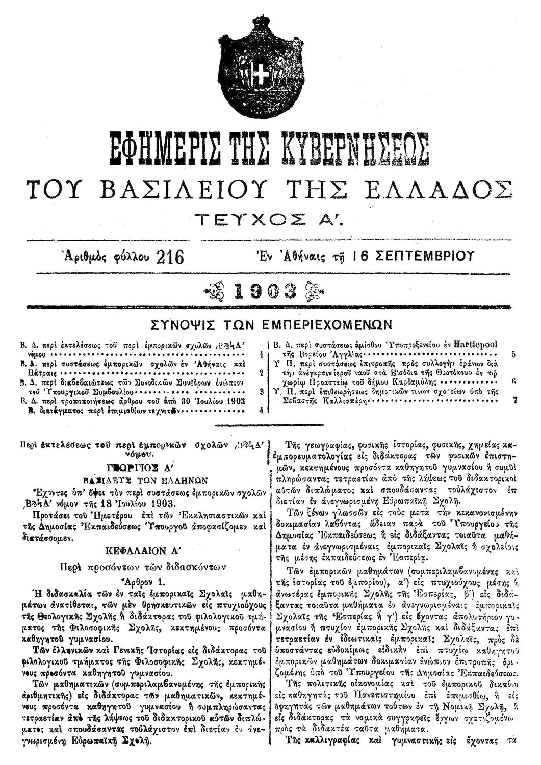 Παρουσίαση περιεχομένου: Β.Δ. Περί εκτελέσεως των περί εμπορικών σχολών ΒϠϞΑ νόμου Σχετικές σελίδες: 1-3 |