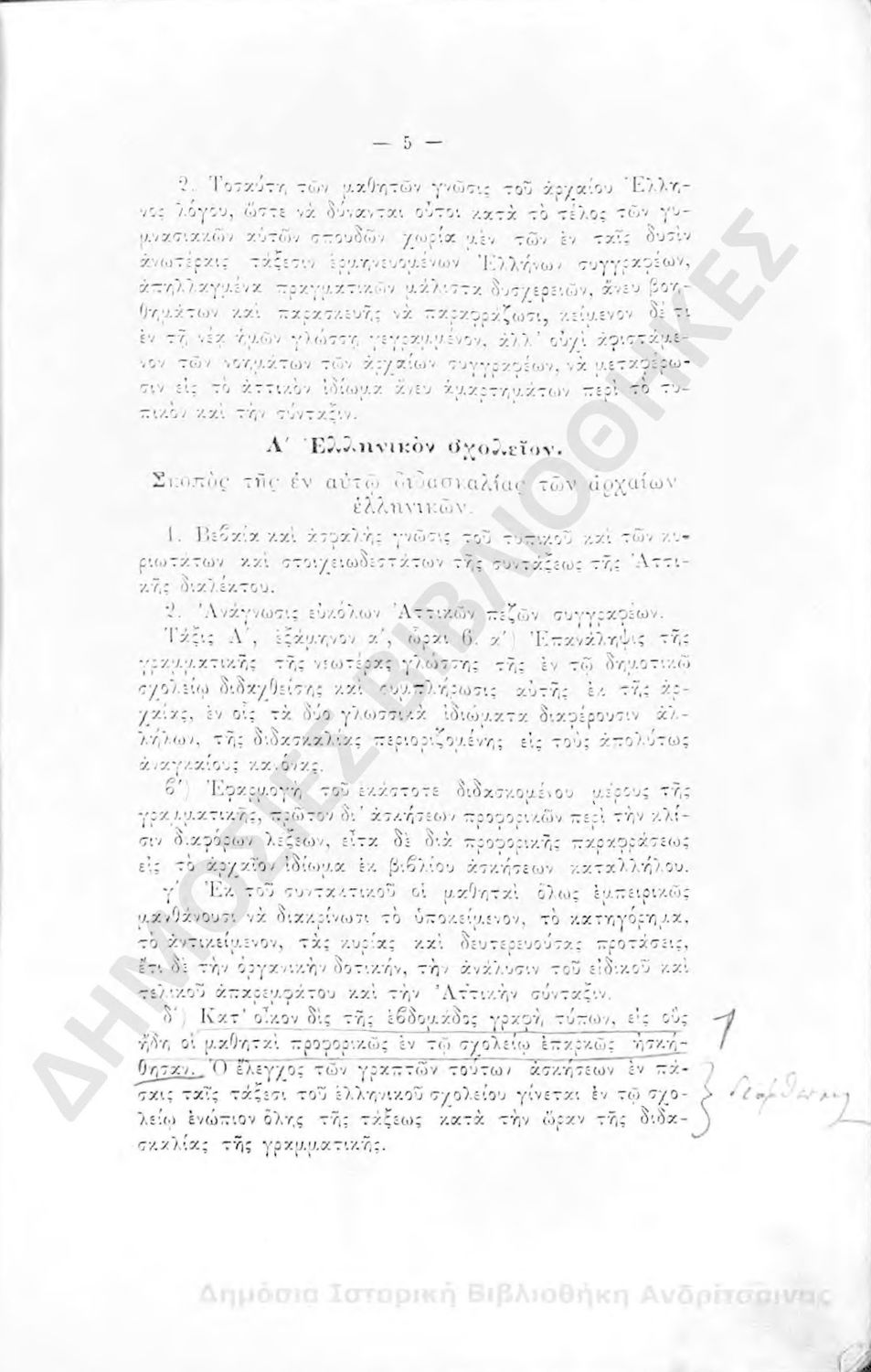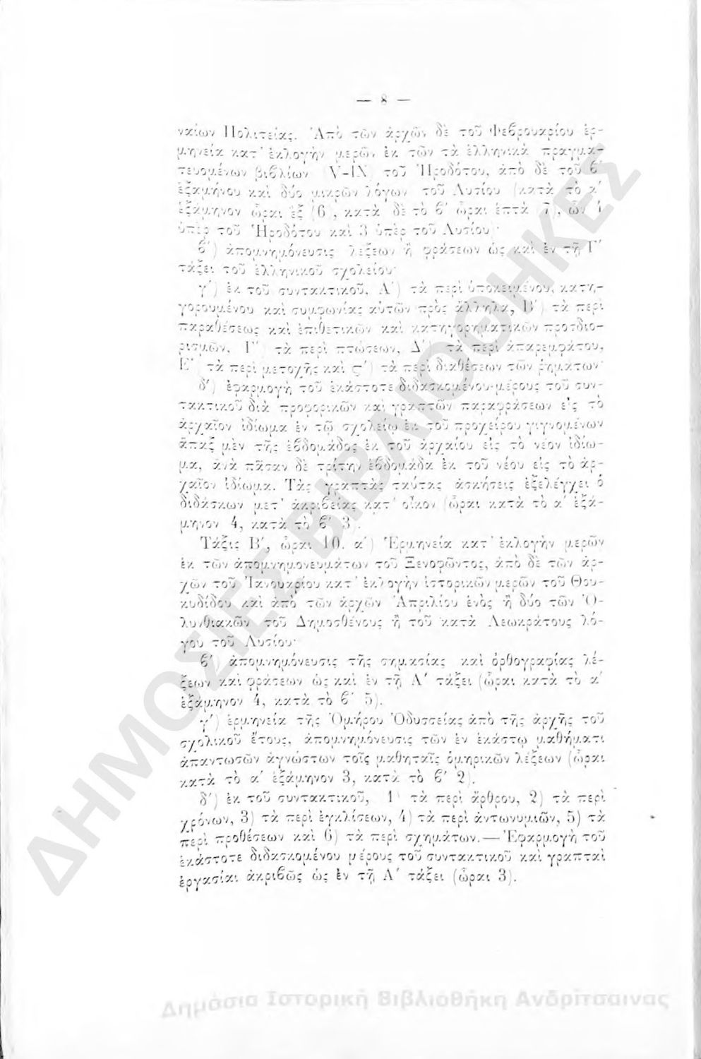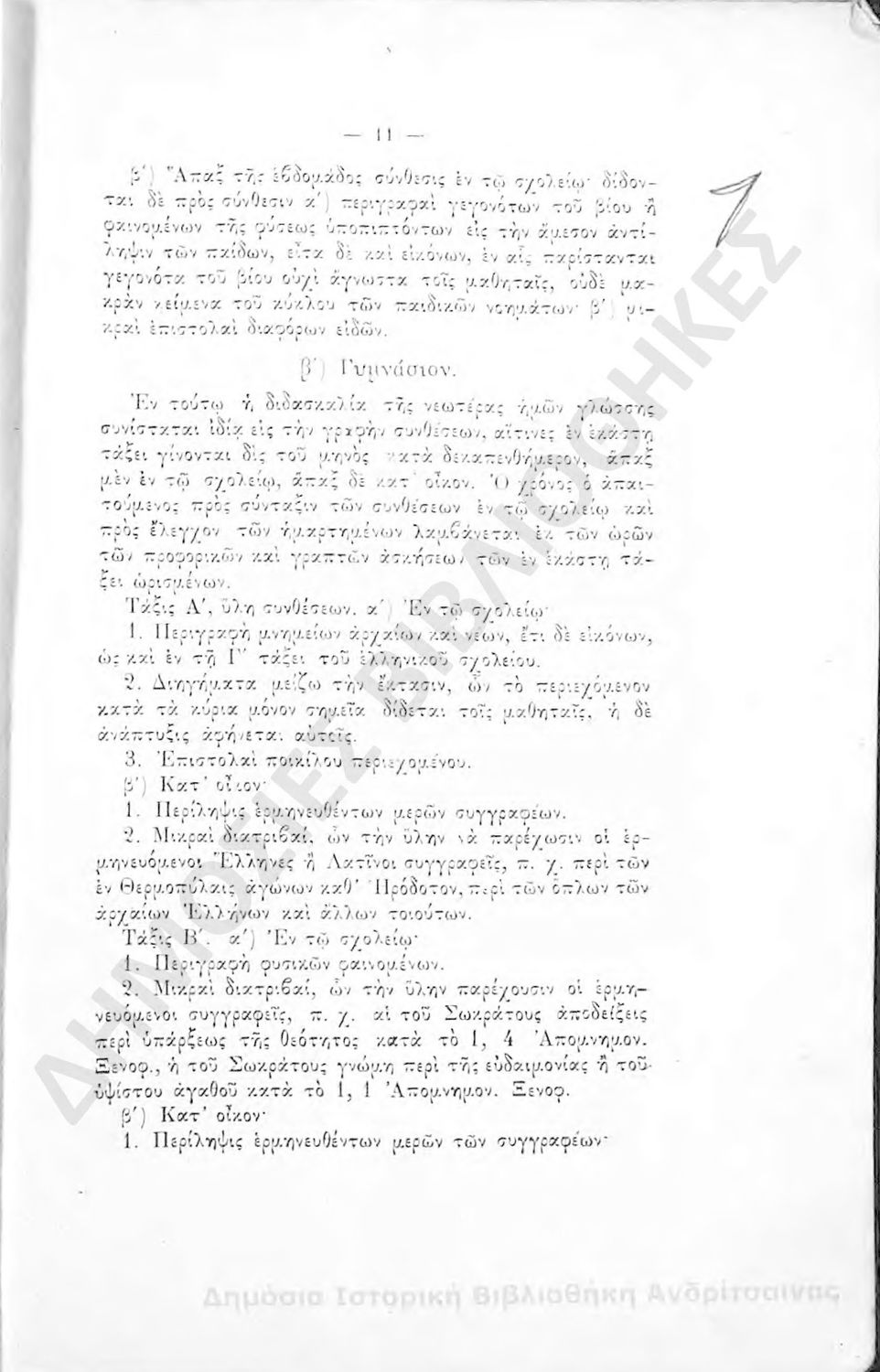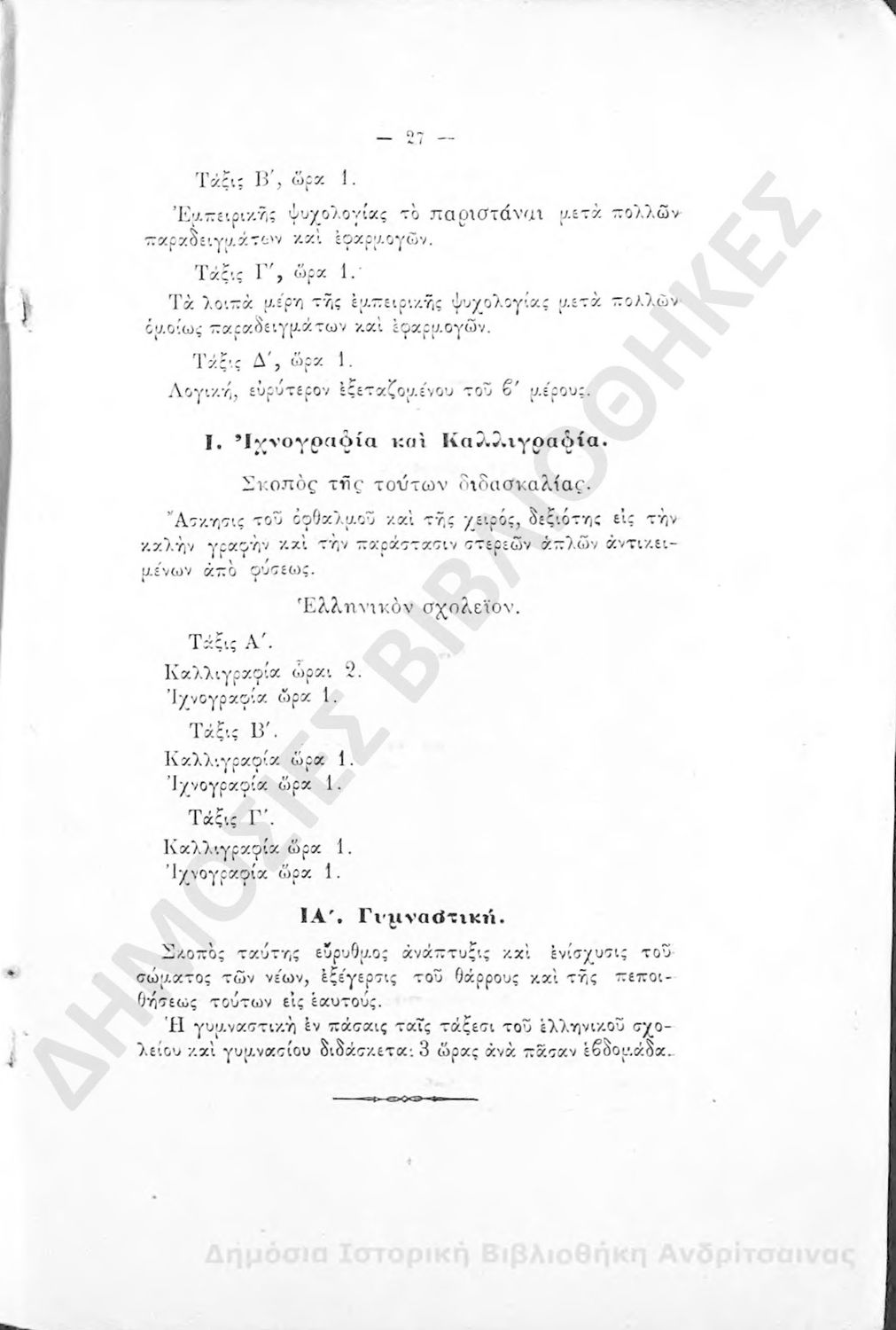 Κωδικός αναγνώρισης: 1906-0028 Τίτλος: Πρόγραμμα μαθημάτων των Γυμνασίων και Ελληνικών σχολείων του κράτους Μέγεθος και υπόστρωμα: Λοιπά προγραμμάτων σπουδών, 31 σελίδες. |
