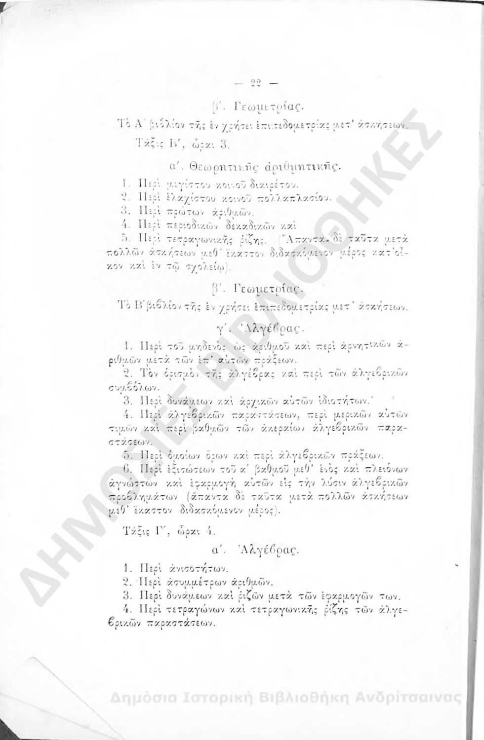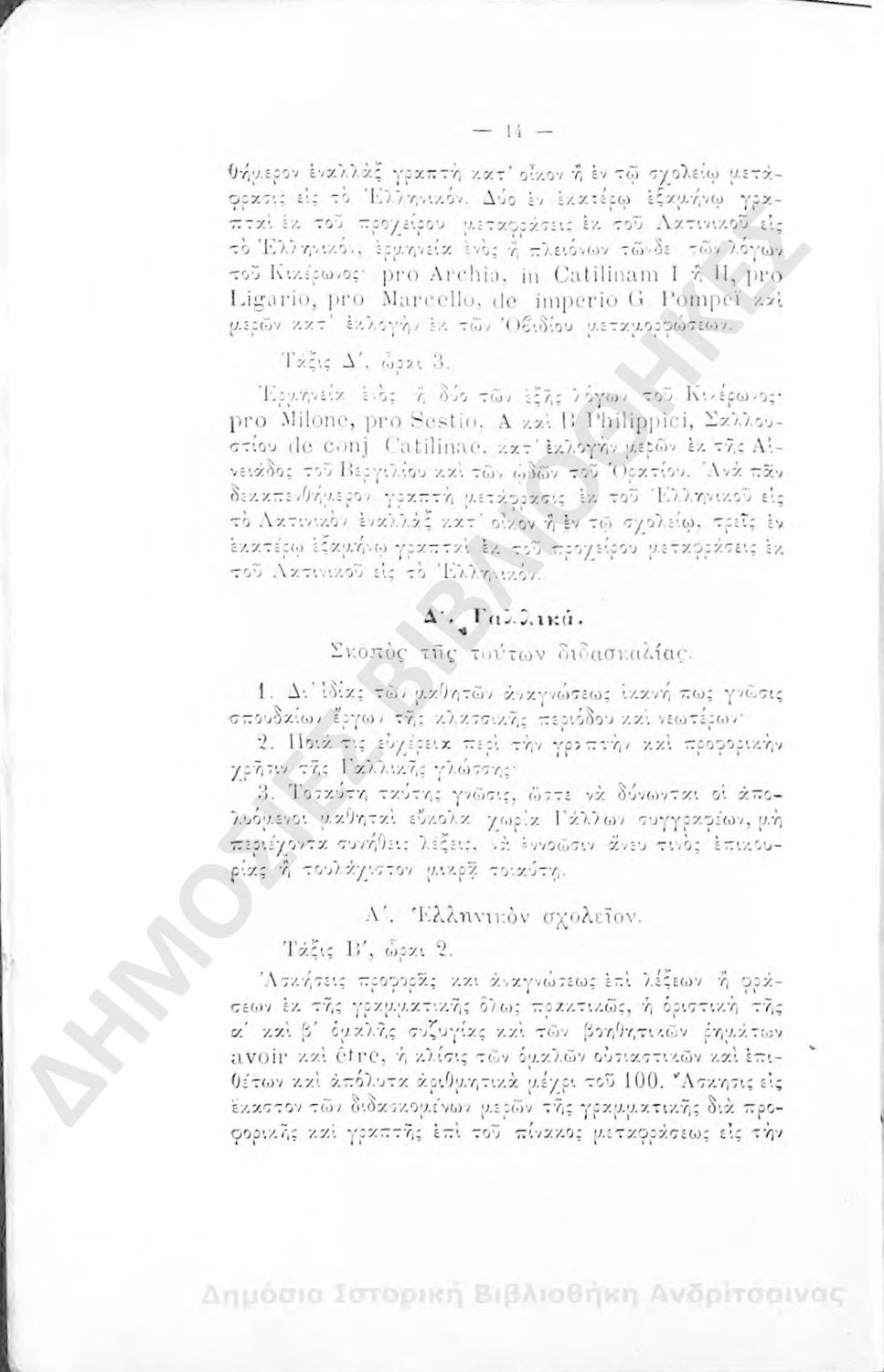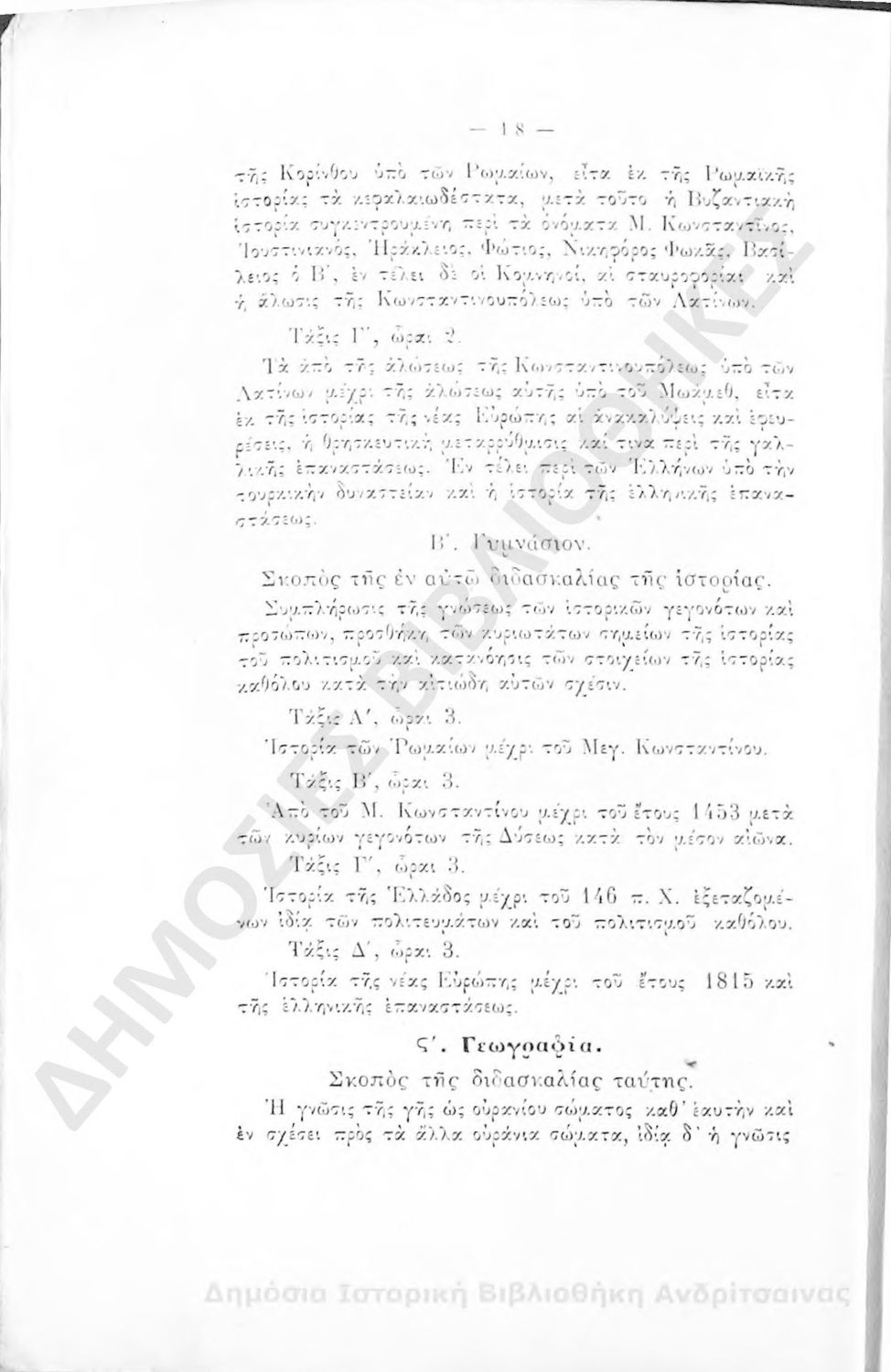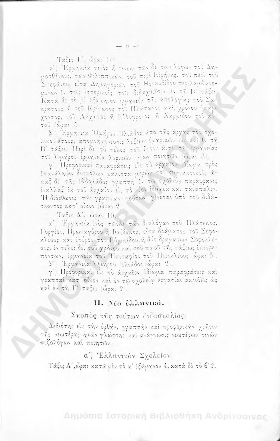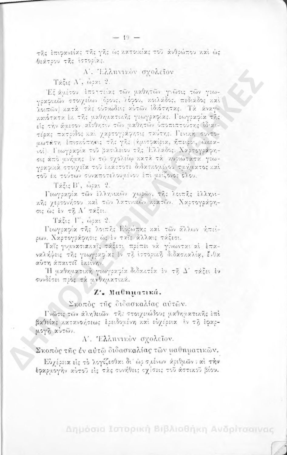Κωδικός αναγνώρισης: 1906-0028 Τίτλος: Πρόγραμμα μαθημάτων των Γυμνασίων και Ελληνικών σχολείων του κράτους Μέγεθος και υπόστρωμα: Λοιπά προγραμμάτων σπουδών, 31 σελίδες. |