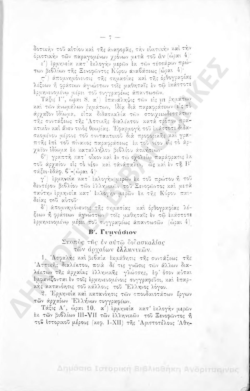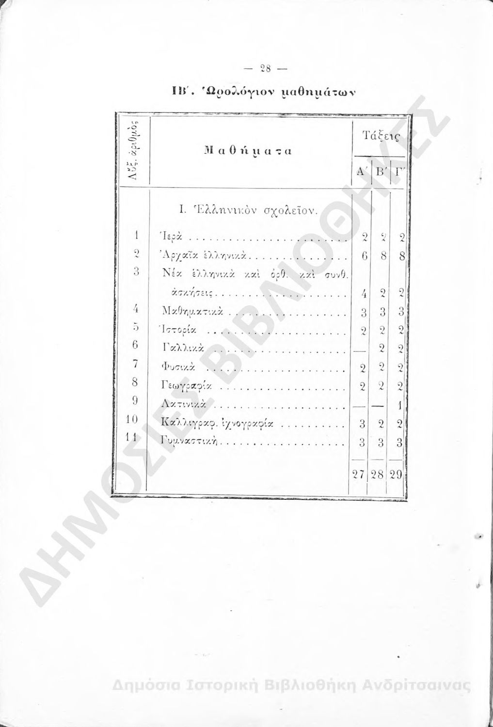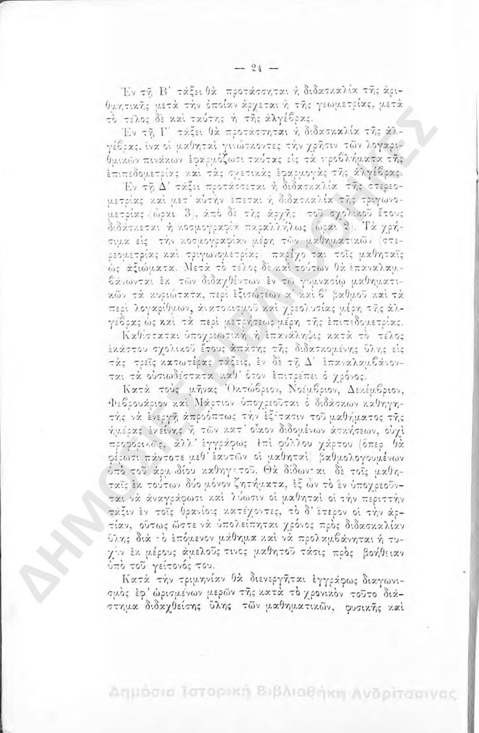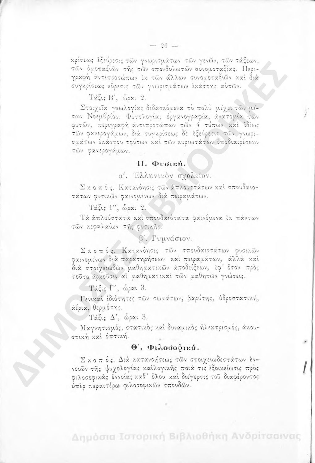 Κωδικός αναγνώρισης: 1906-0028 Τίτλος: Πρόγραμμα μαθημάτων των Γυμνασίων και Ελληνικών σχολείων του κράτους Μέγεθος και υπόστρωμα: Λοιπά προγραμμάτων σπουδών, 31 σελίδες. |