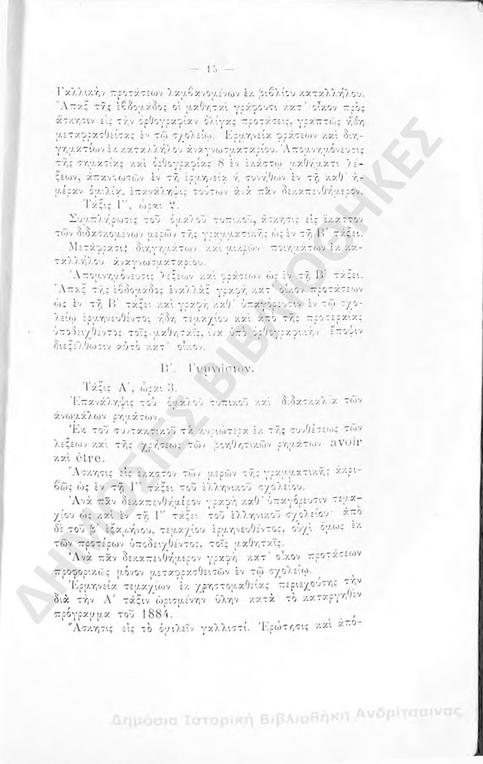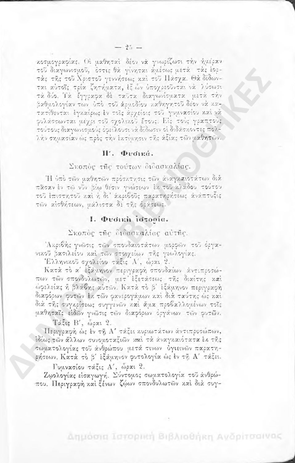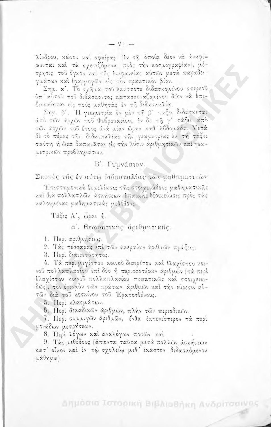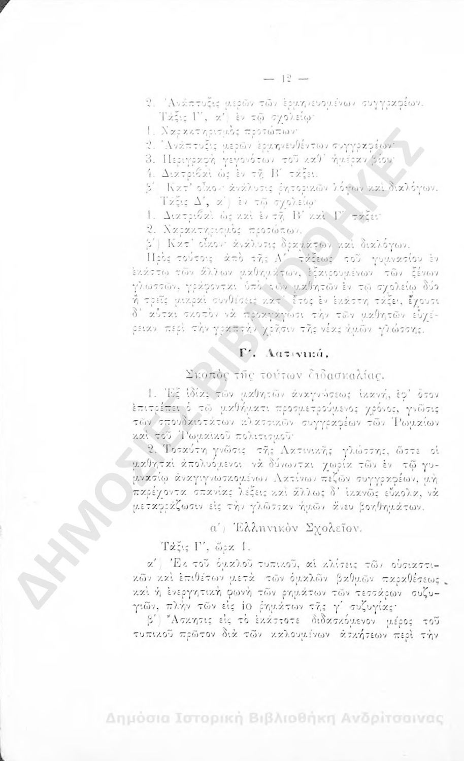 Κωδικός αναγνώρισης: 1906-0028 Τίτλος: Πρόγραμμα μαθημάτων των Γυμνασίων και Ελληνικών σχολείων του κράτους Μέγεθος και υπόστρωμα: Λοιπά προγραμμάτων σπουδών, 31 σελίδες. |