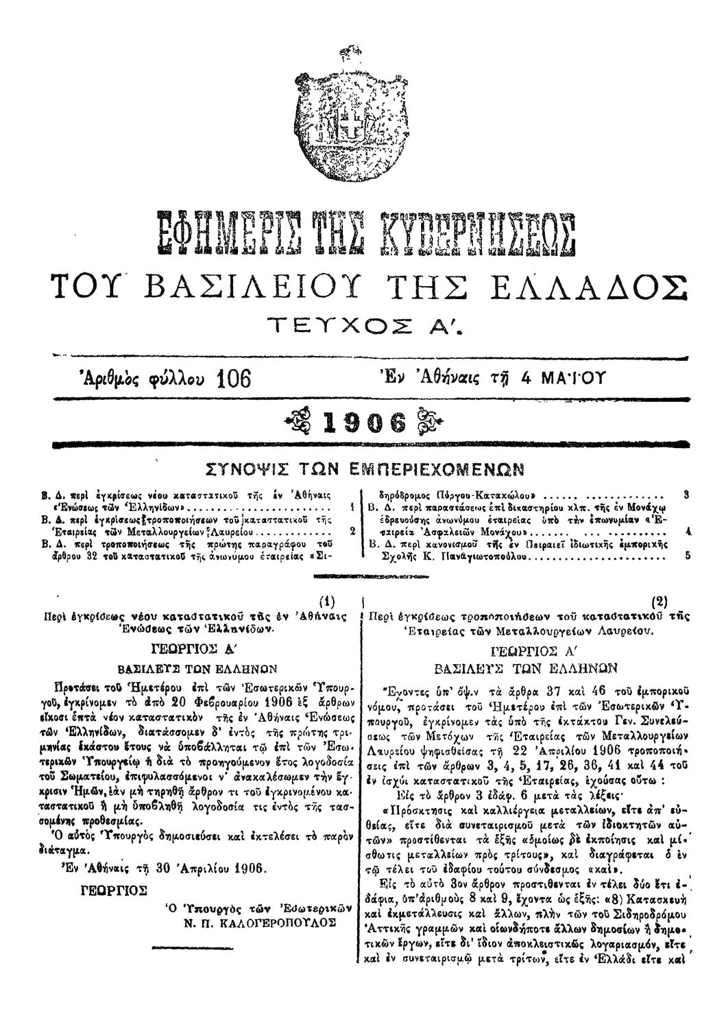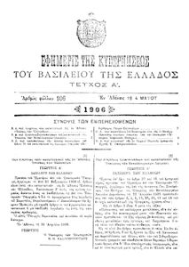 Κωδικός αναγνώρισης: 1906-106A Τίτλος: ΦΕΚ 106/04.05.1906, Τεύχος A Μέγεθος και υπόστρωμα: Φεκ προγραμμάτων σπουδών, 4 σελίδες. |