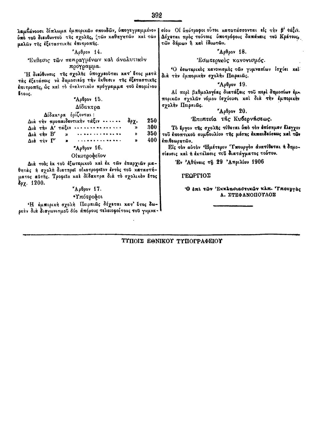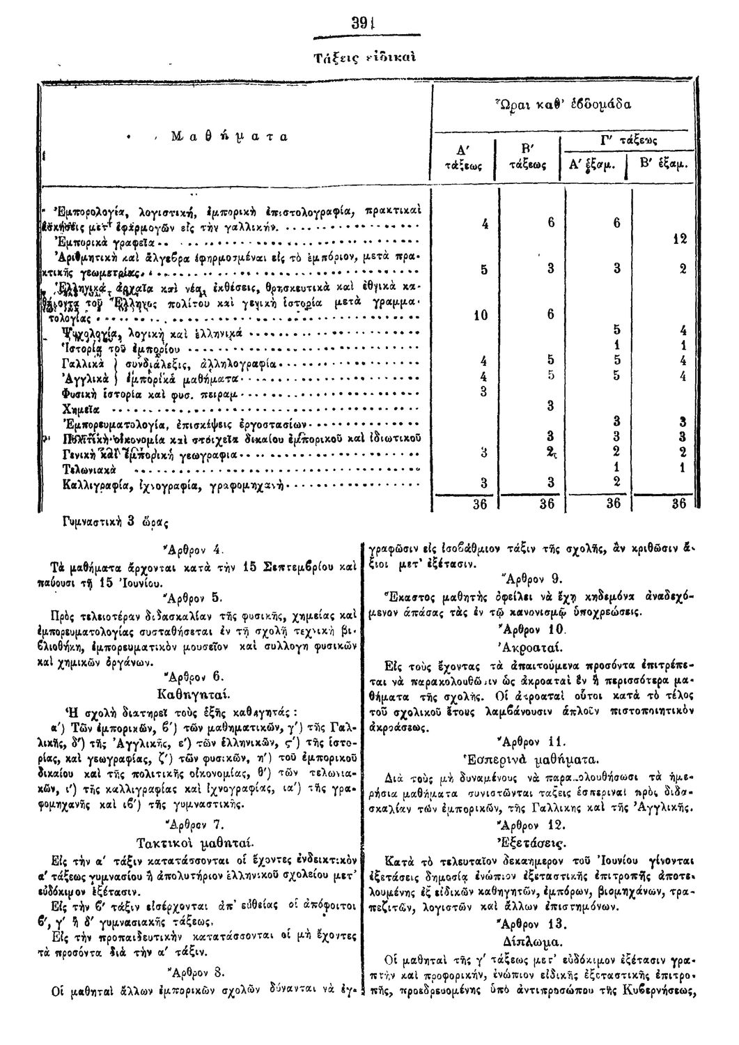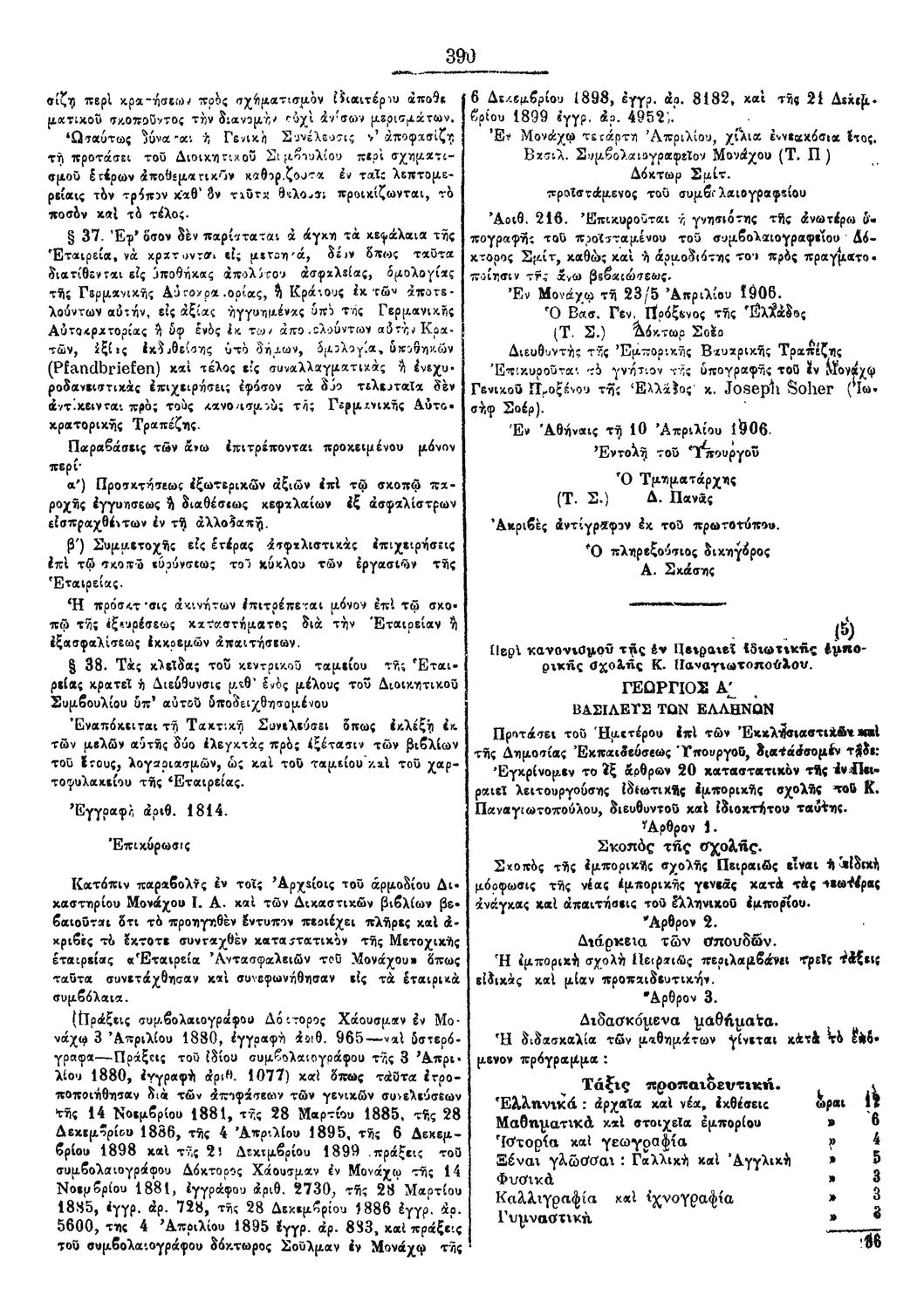 Β.Δ. Περί κανονισμού της εν Πειραιεί ιδιωτικής εμπορικής Σχολής Κ. Παναγιωτοπούλου
