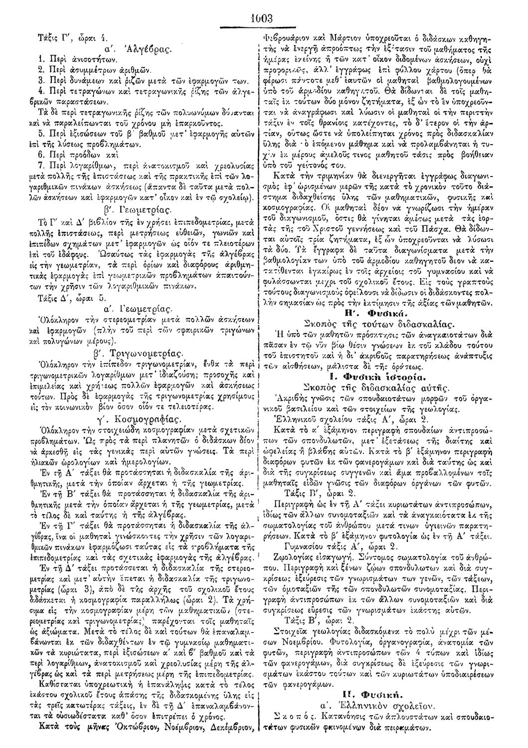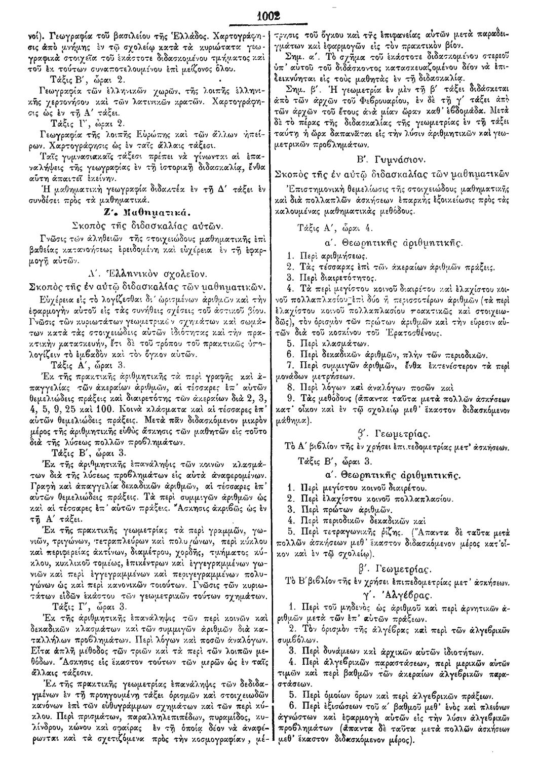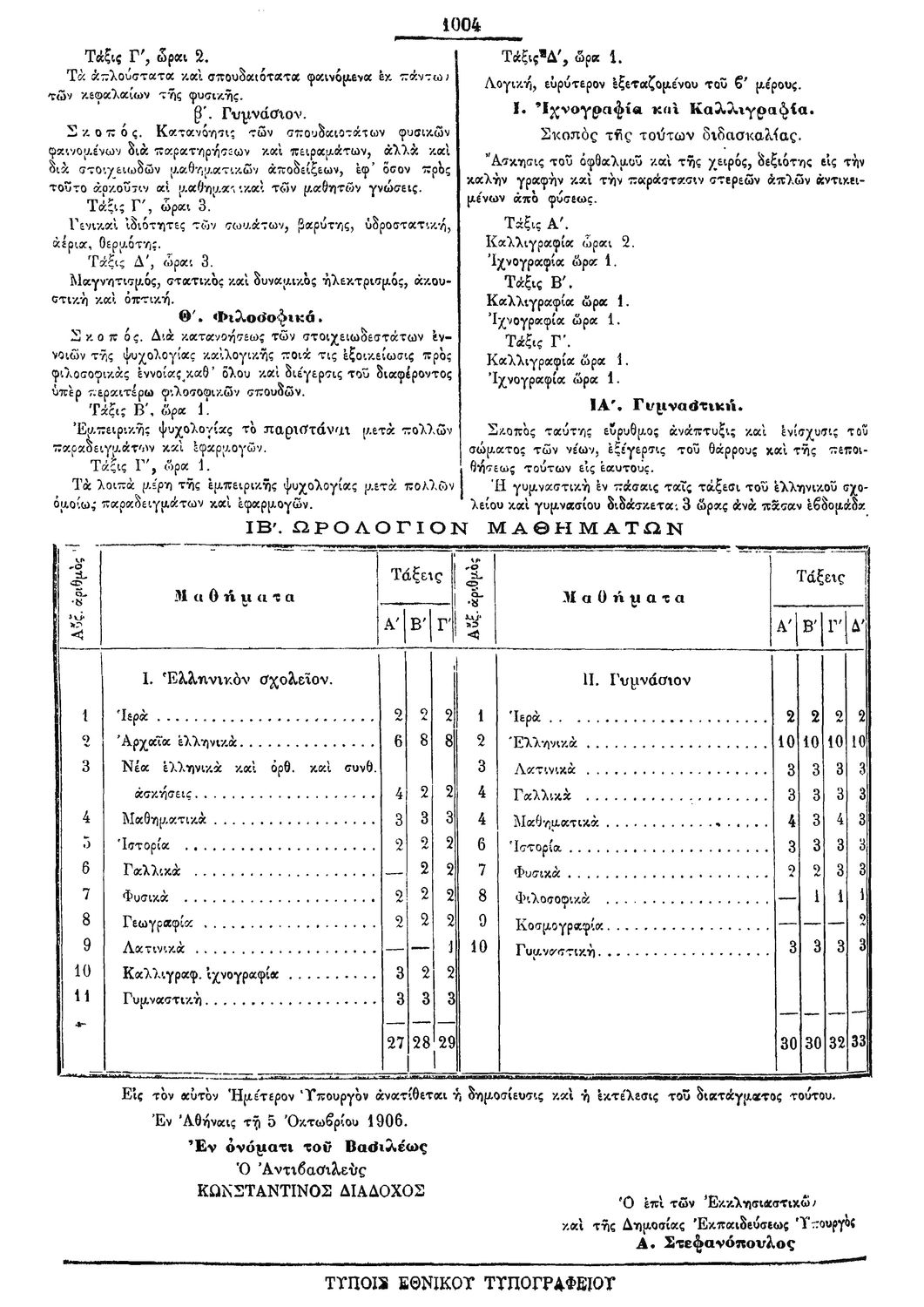 Περί κανονισμού του προγράμματος των εν τοις Ελληνικοίς σχολείοις και Γυμνασίοις διδακτέων μαθημάτων