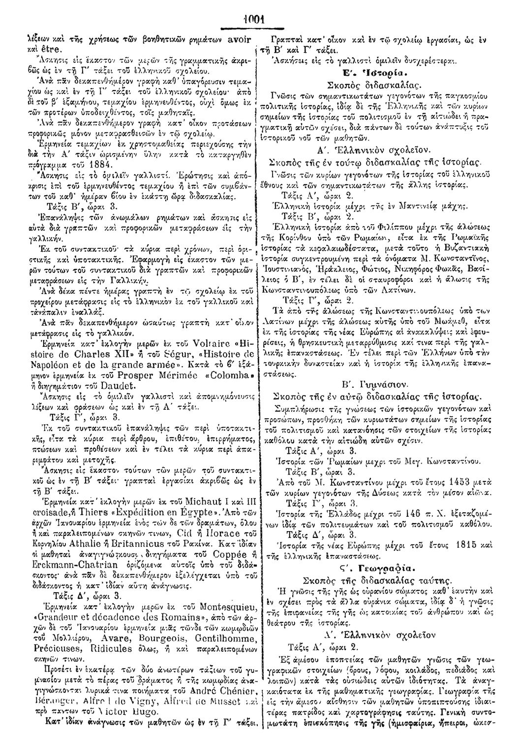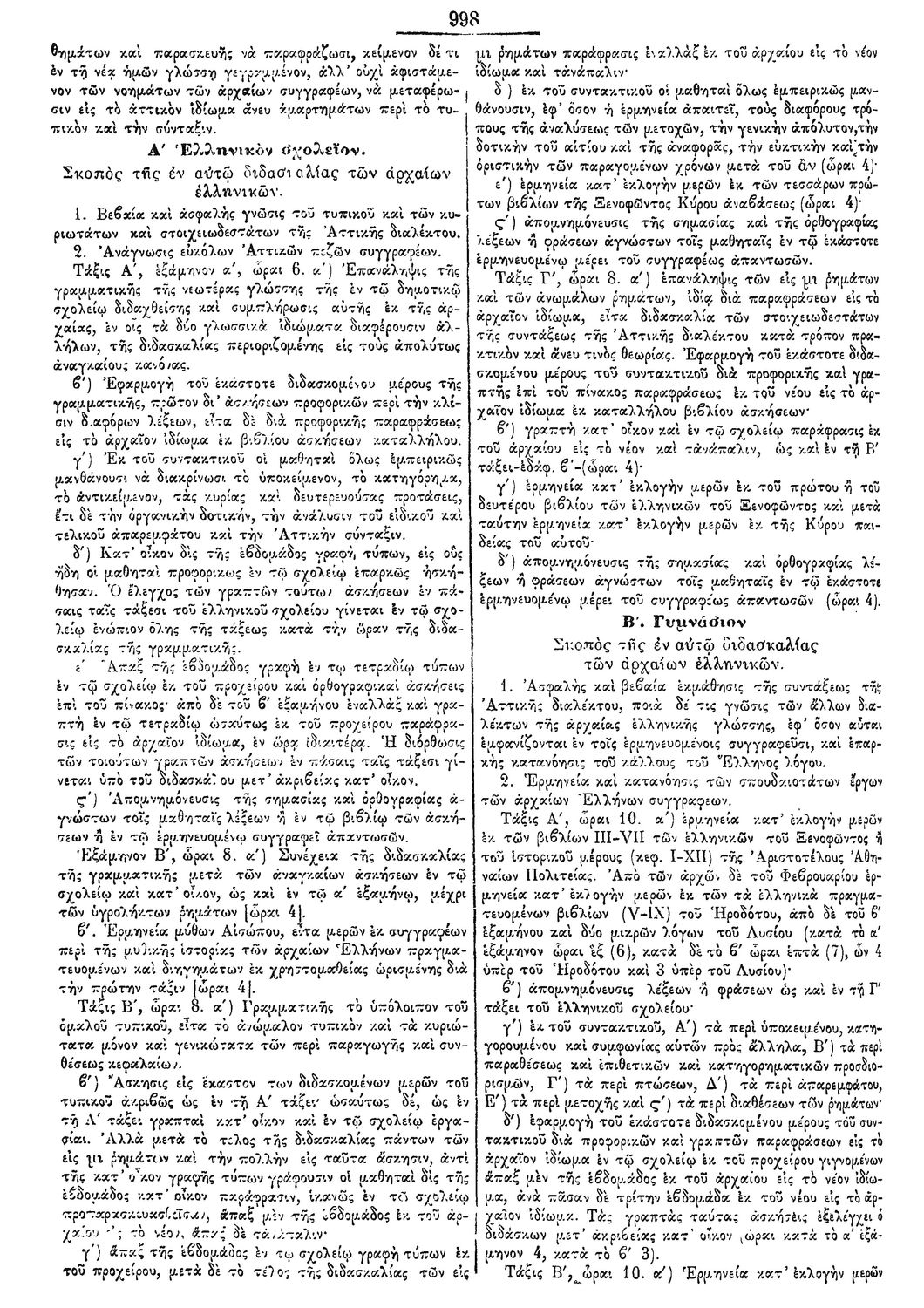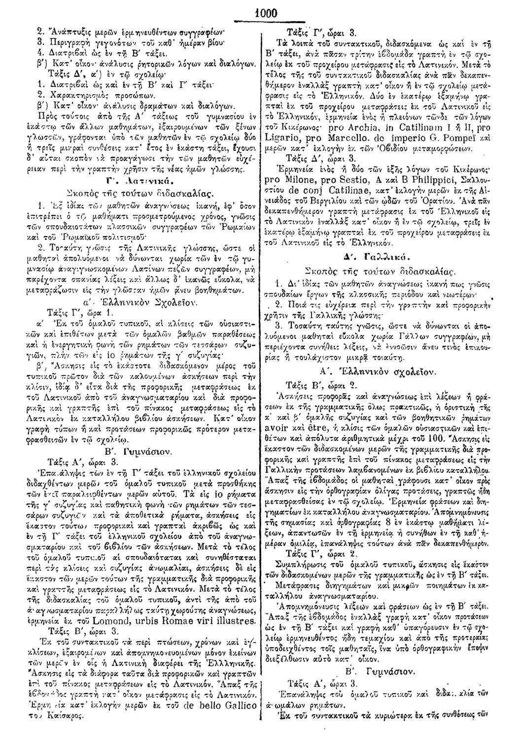 Περί κανονισμού του προγράμματος των εν τοις Ελληνικοίς σχολείοις και Γυμνασίοις διδακτέων μαθημάτων