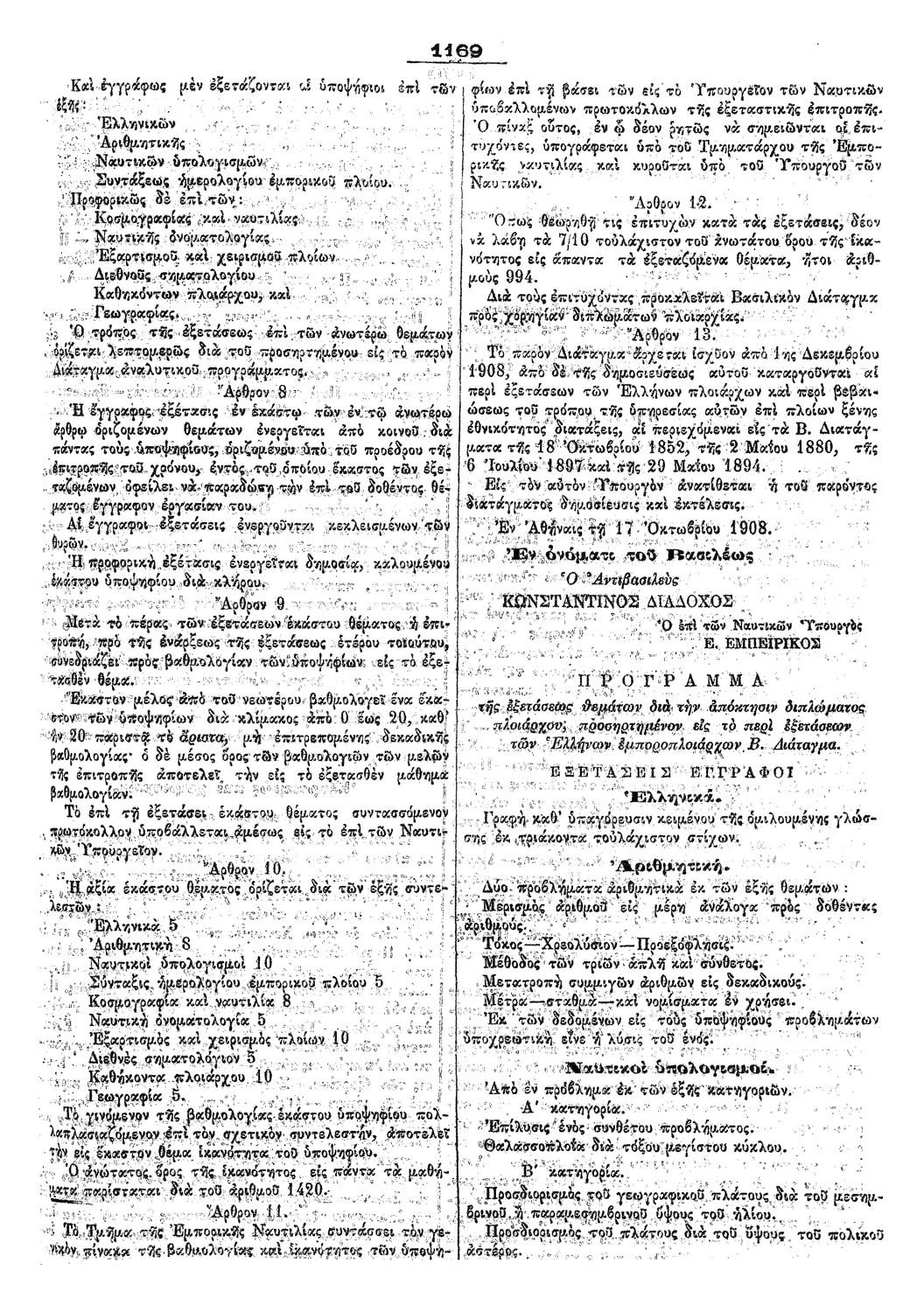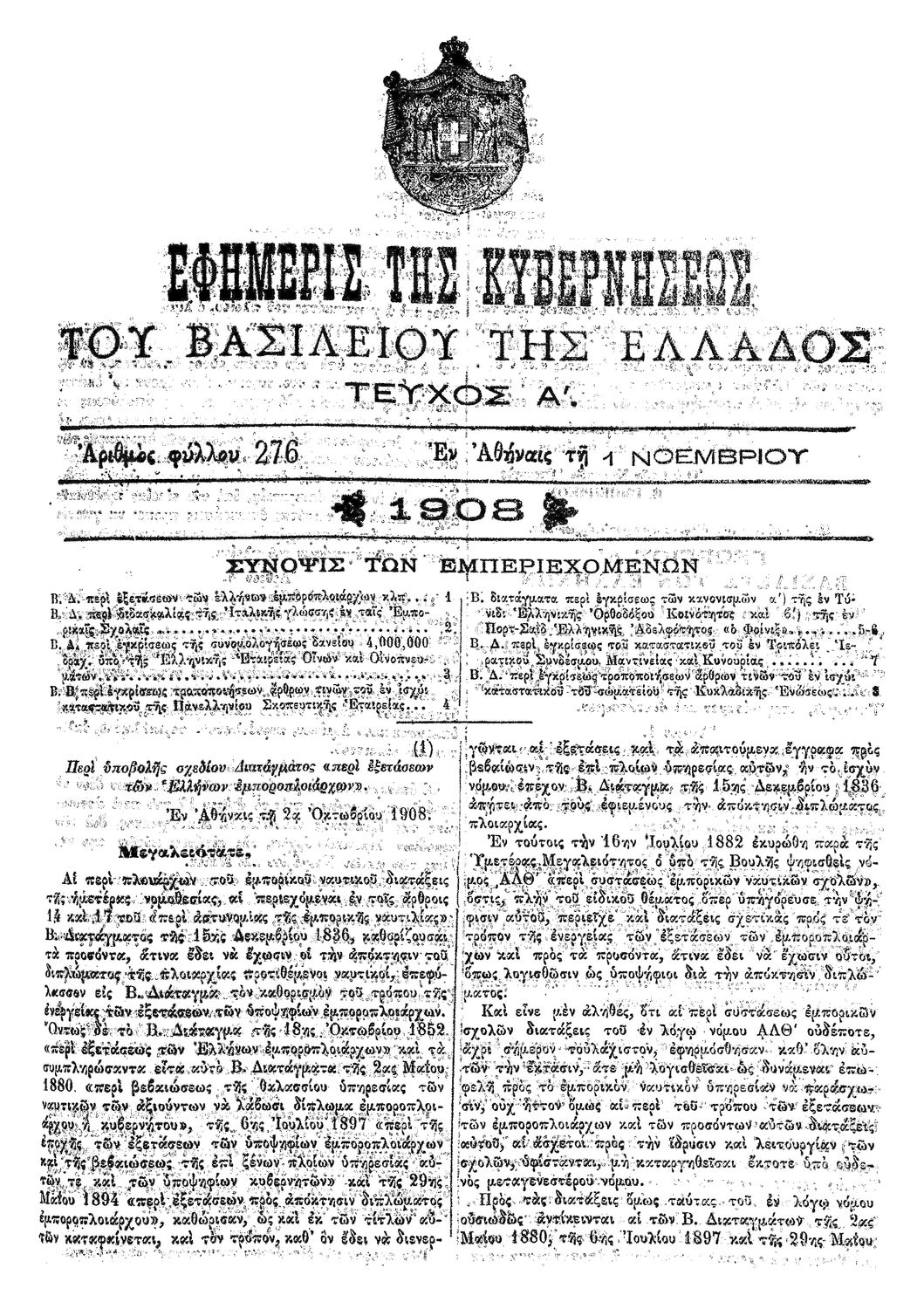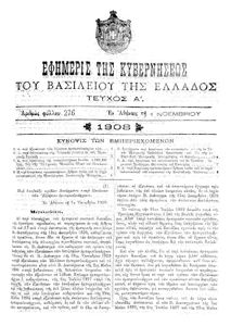 Κωδικός αναγνώρισης: 1908-276A Τίτλος: ΦΕΚ 276/01.11.1908, Τεύχος Α Μέγεθος και υπόστρωμα: Φεκ προγραμμάτων σπουδών, 2 σελίδες. |