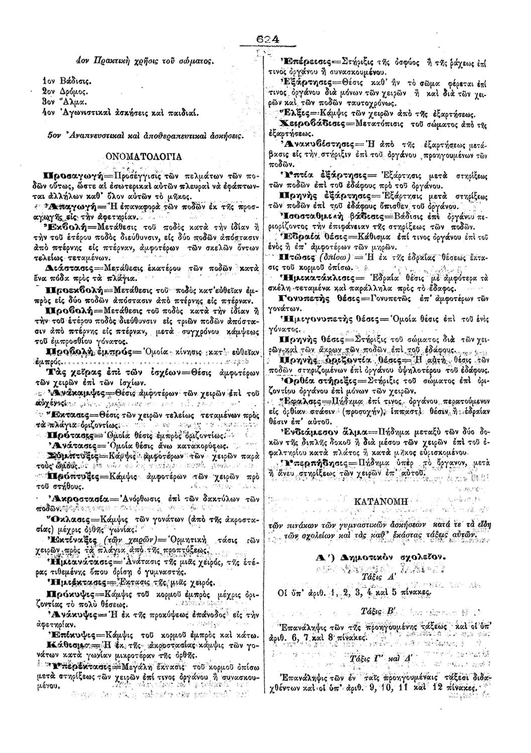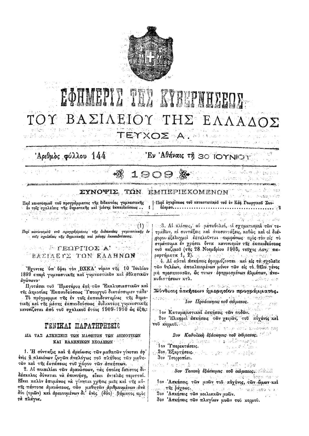 Περί κανονισμού του προγράμματος της διδακτέας γυμναστικής εν τοις σχολείοις της δημοτικής και μέσης εκπαιδεύσεως