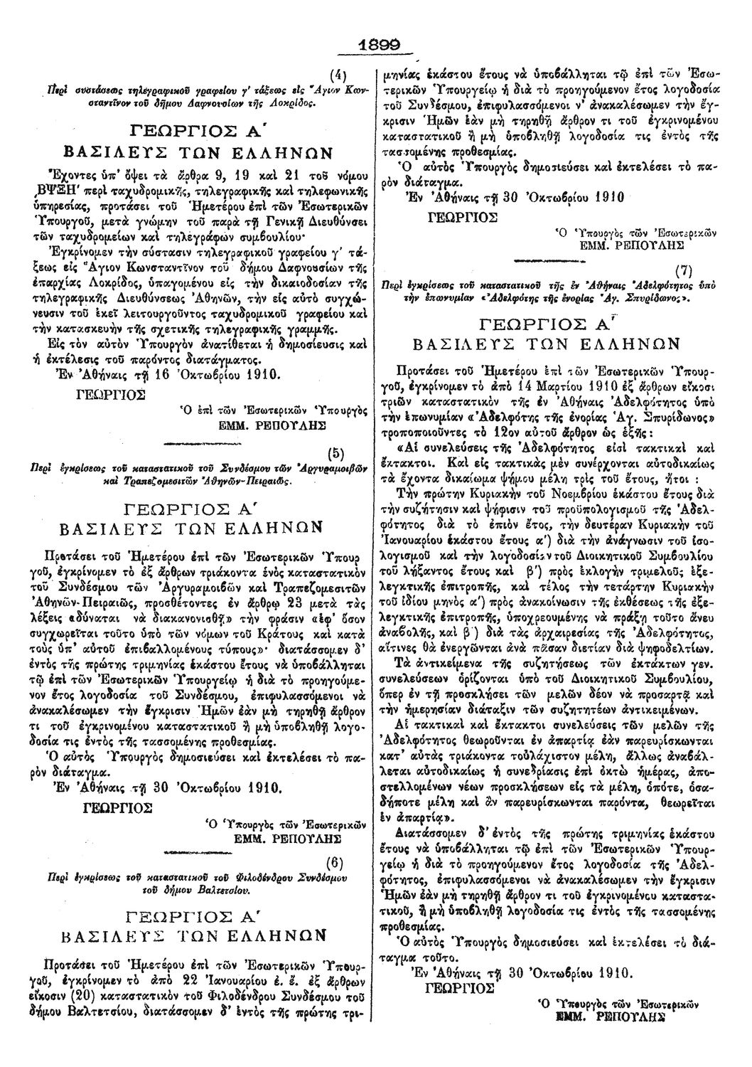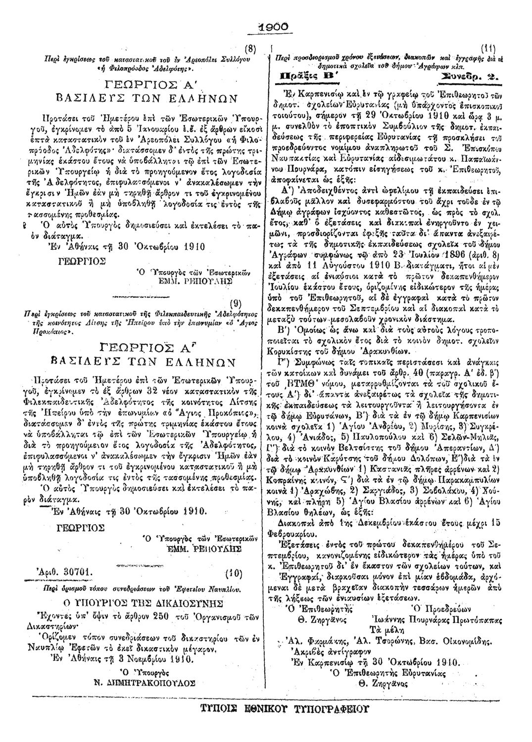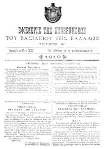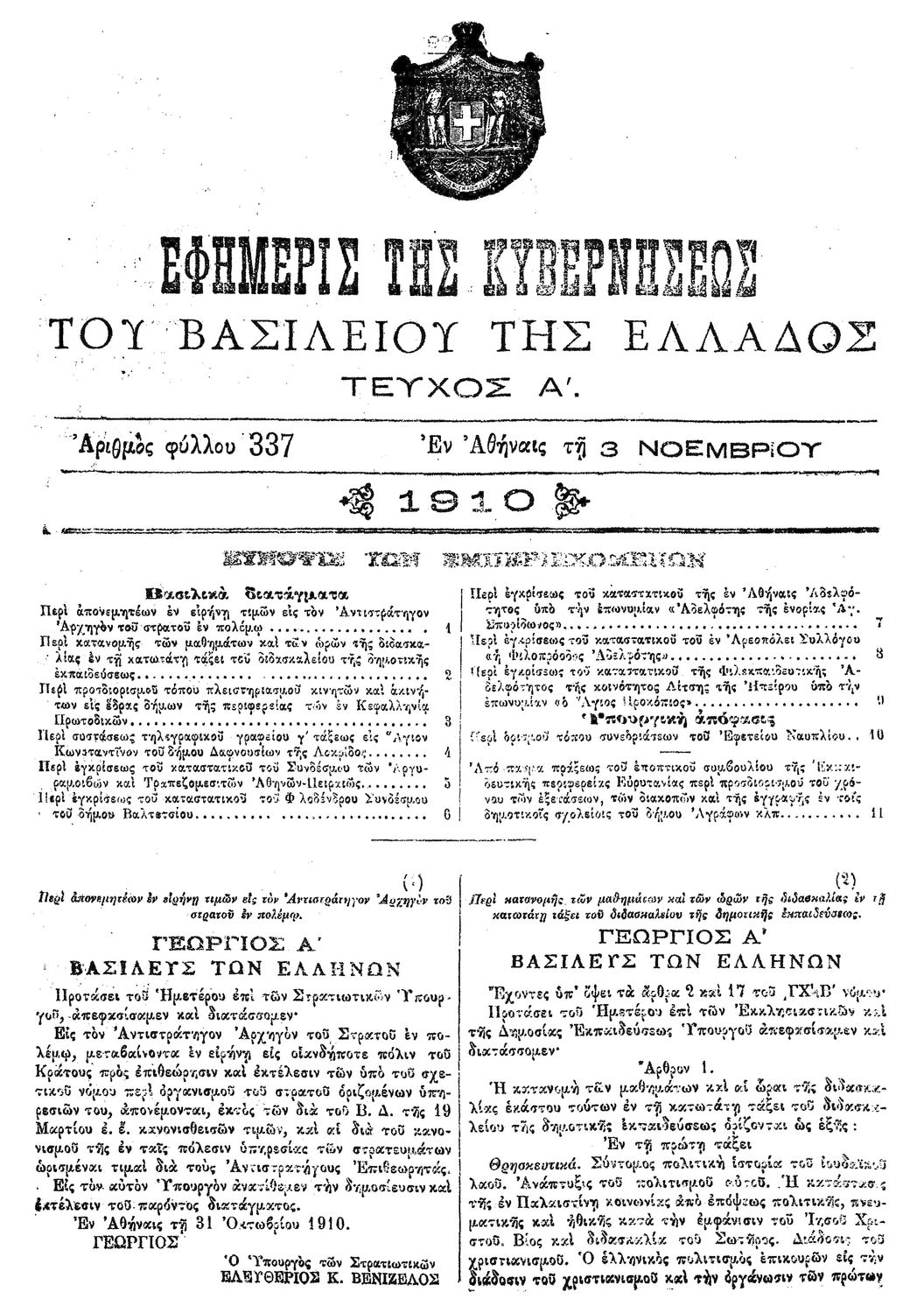Κωδικός αναγνώρισης: 1910-337A Τίτλος: ΦΕΚ 337/03.11.1910, Τεύχος Α Μέγεθος και υπόστρωμα: Φεκ προγραμμάτων σπουδών, 2 σελίδες. |