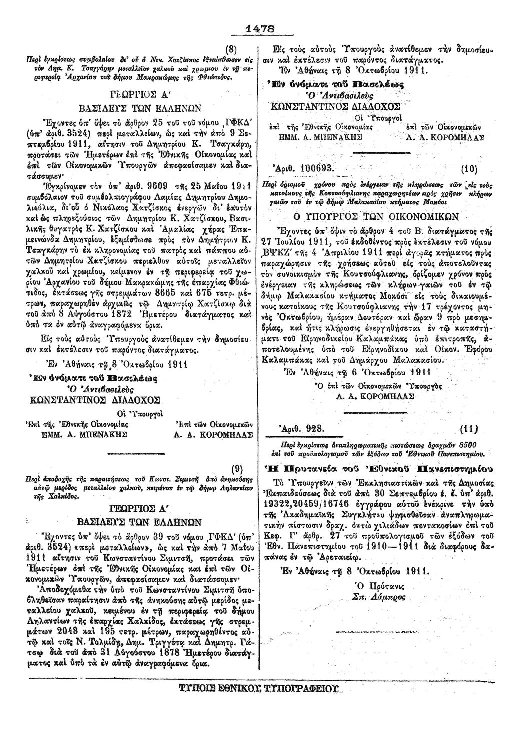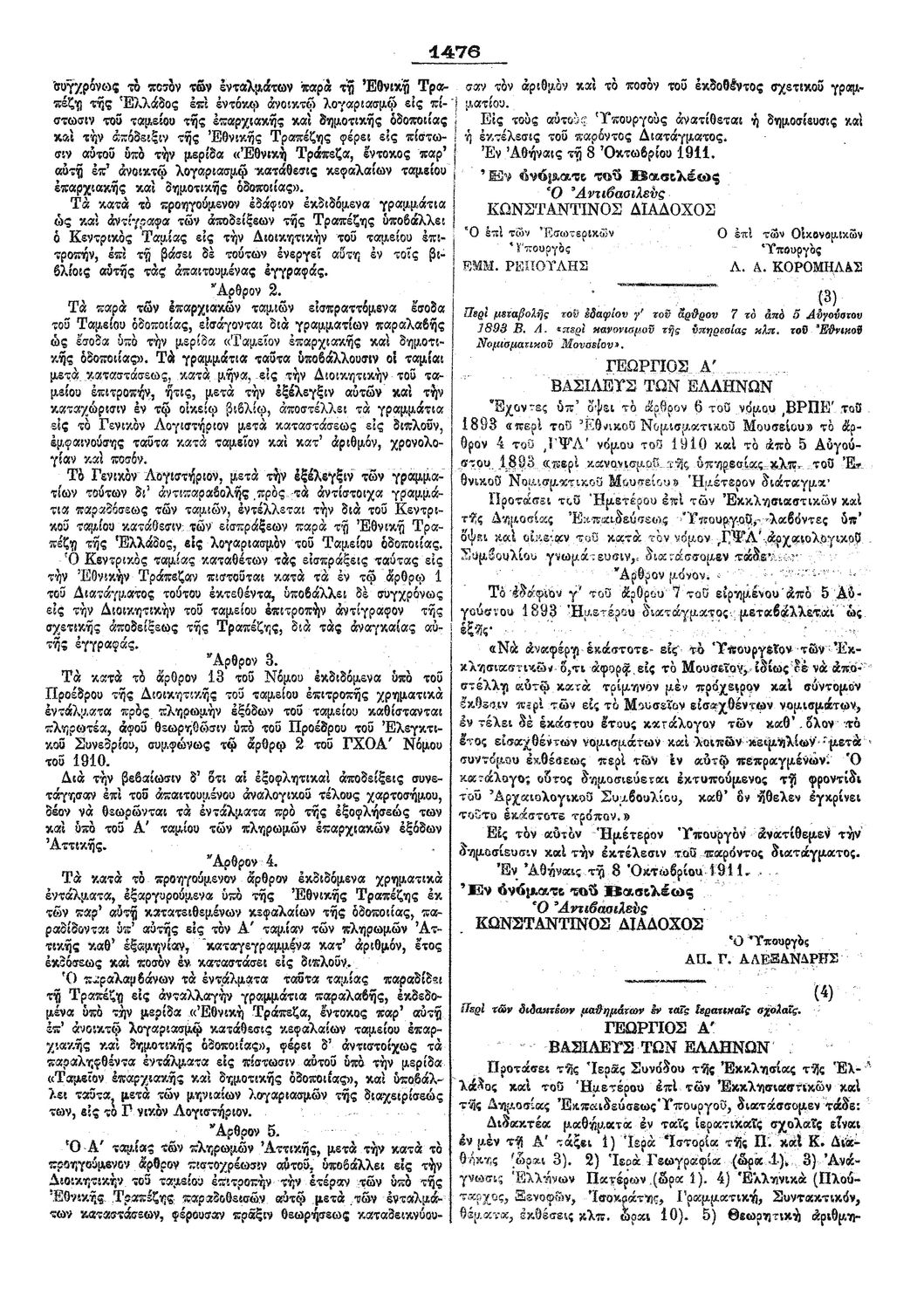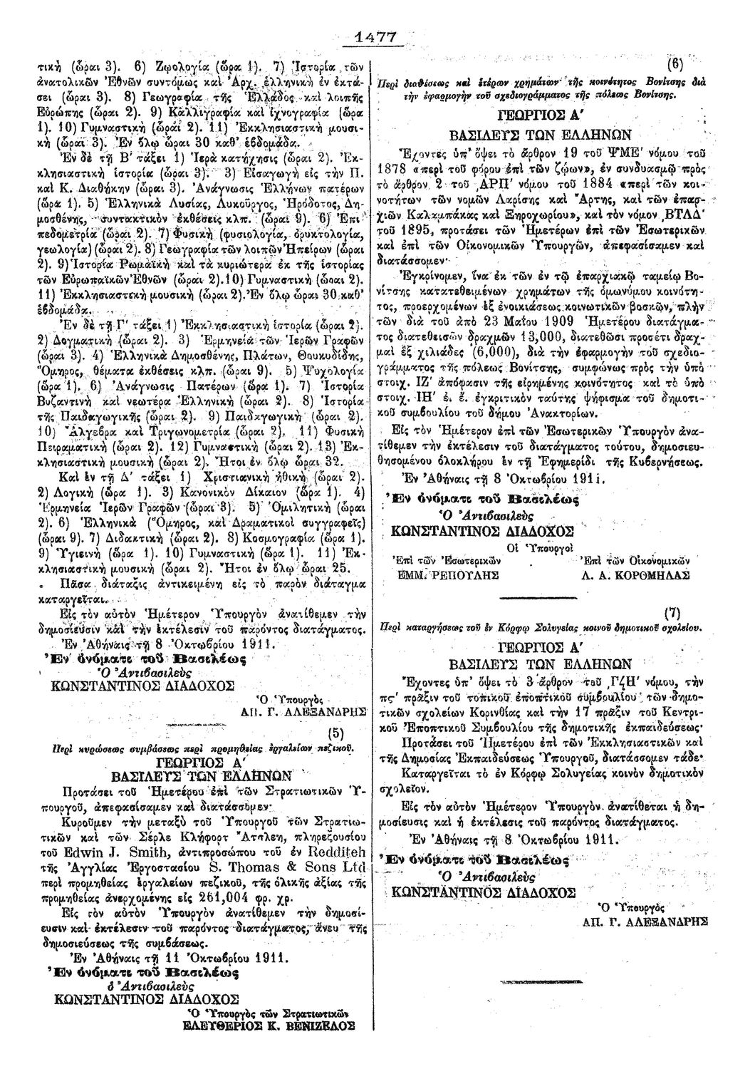 Κωδικός αναγνώρισης: 1911-287A Τίτλος: ΦΕΚ 287/13.10.1911, Τεύχος Α Μέγεθος και υπόστρωμα: Φεκ προγραμμάτων σπουδών, 3 σελίδες. |