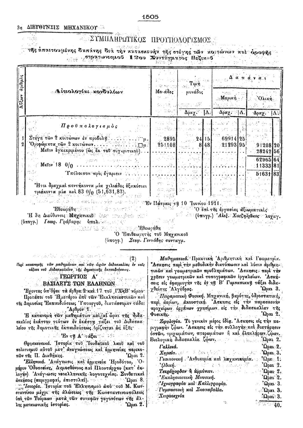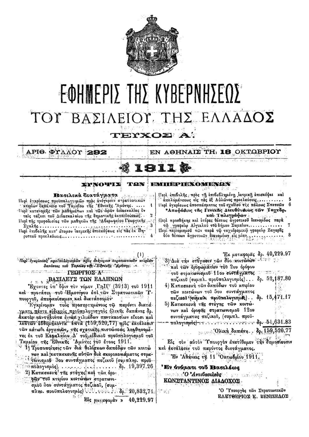 Κωδικός αναγνώρισης: 1911-292A Τίτλος: ΦΕΚ 292/18.10.1911, Τεύχος Α Μέγεθος και υπόστρωμα: Φεκ προγραμμάτων σπουδών, 3 σελίδες. |