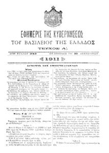Κωδικός αναγνώρισης: 1911-343A Τίτλος: ΦΕΚ 343/15.12.1911, Τεύχος Α Μέγεθος και υπόστρωμα: Φεκ προγραμμάτων σπουδών, 2 σελίδες. |