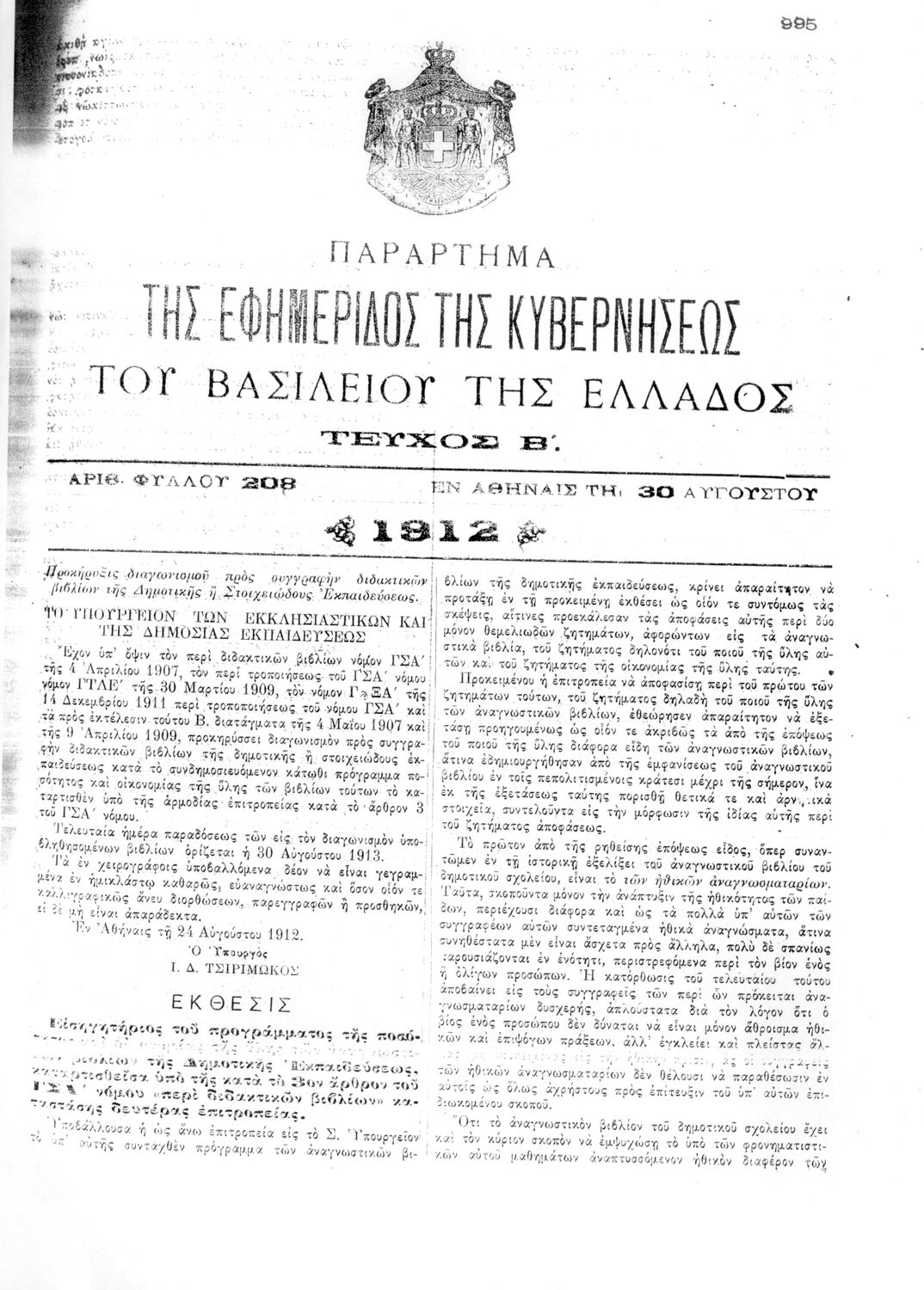 Προκήρυξις διαγωνισμού προς συγγραφήν διδακτικών βιβλίων της Δημοτικής ή Στοιχειώδους Εκπαιδεύσεως