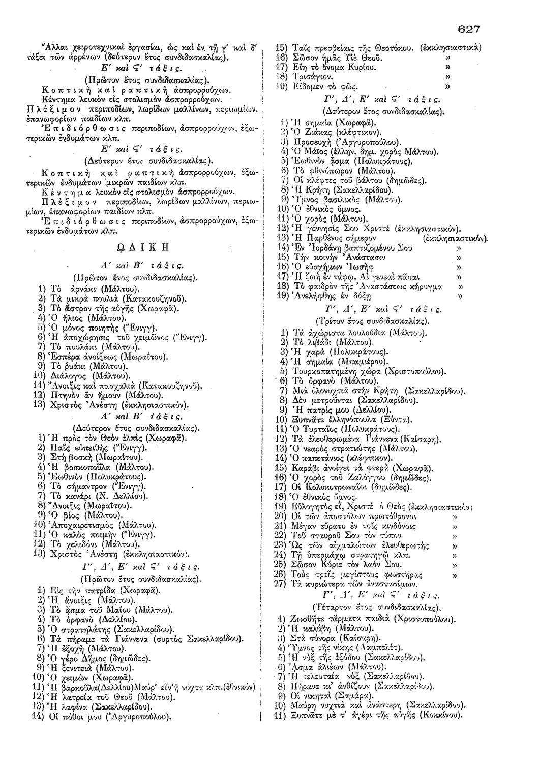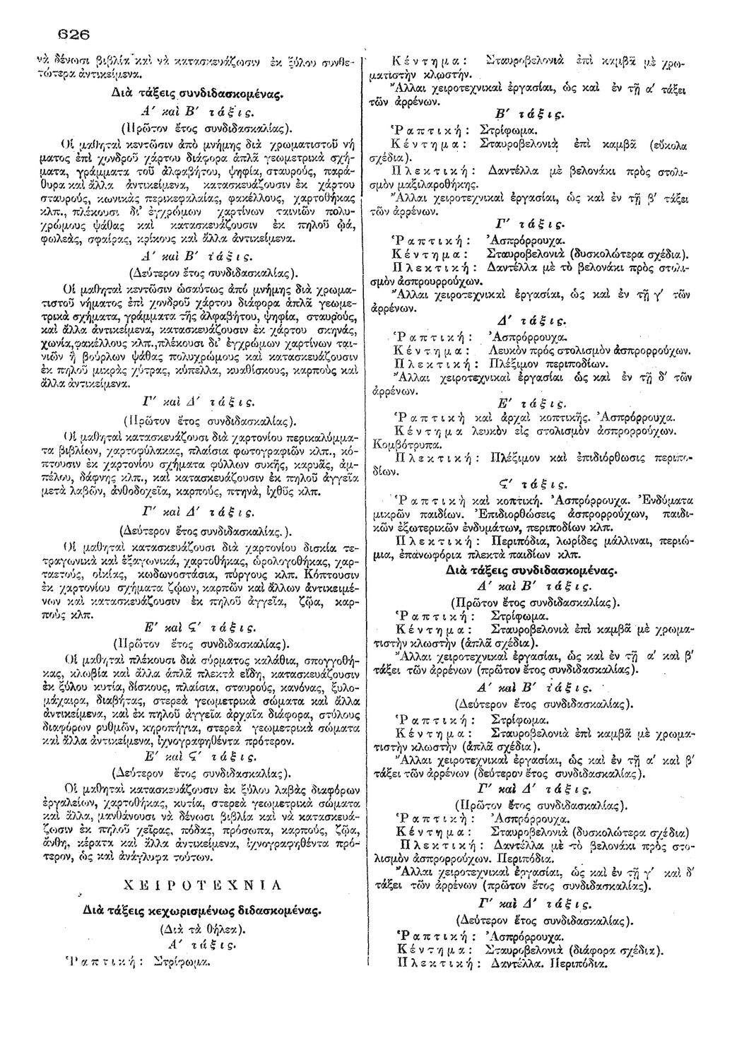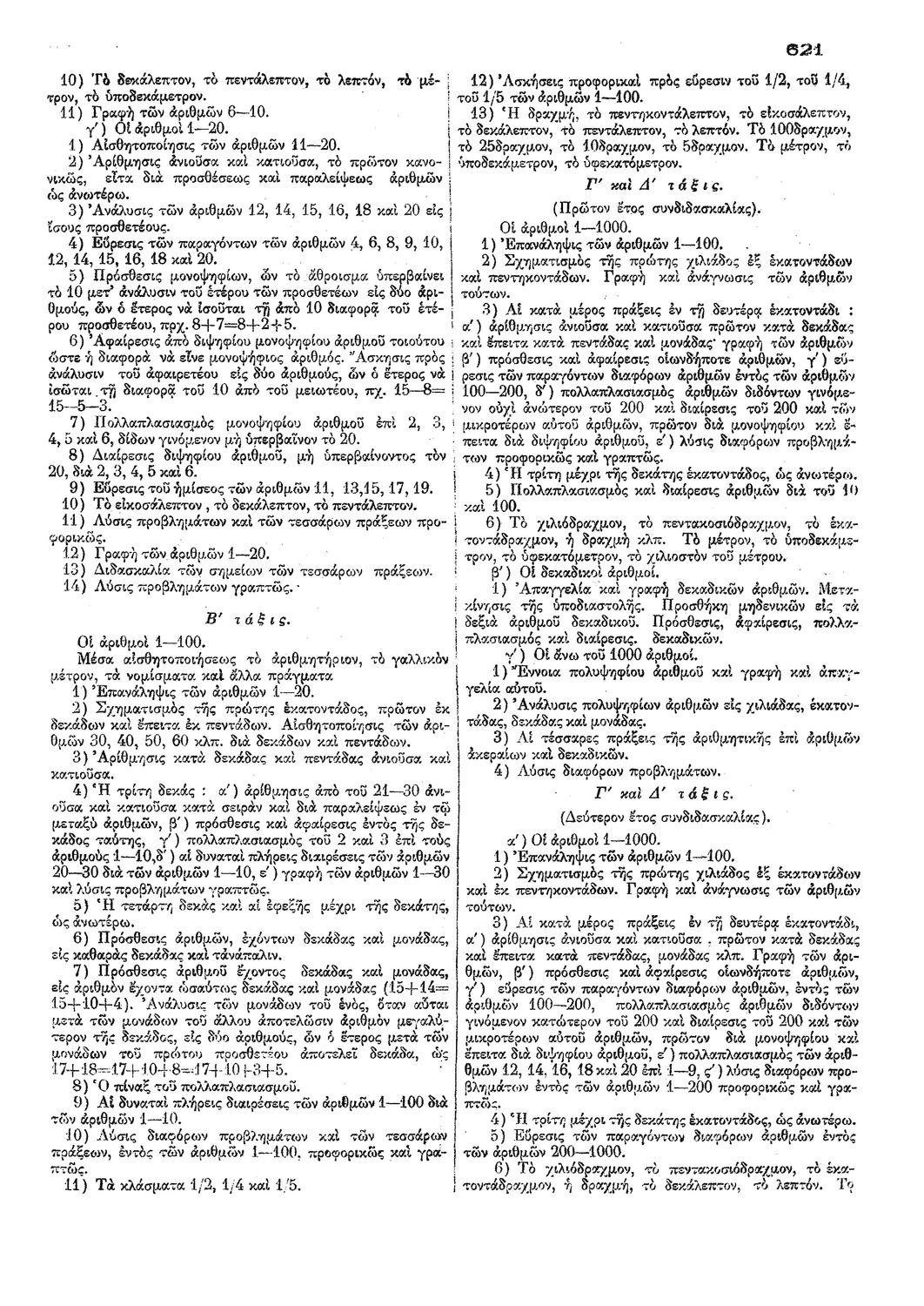 Παρουσίαση περιεχομένου: Περί ορισμού των μαθημάτων του δι’ εκαστον τούτων προς διδασκαλίας αναγκαίου χρόνου, και περί της κατά τάξεις κατανομής της διδακτέας ύλης εις τα πλήρη δημοτικά σχολεία αρρένων και θηλέων