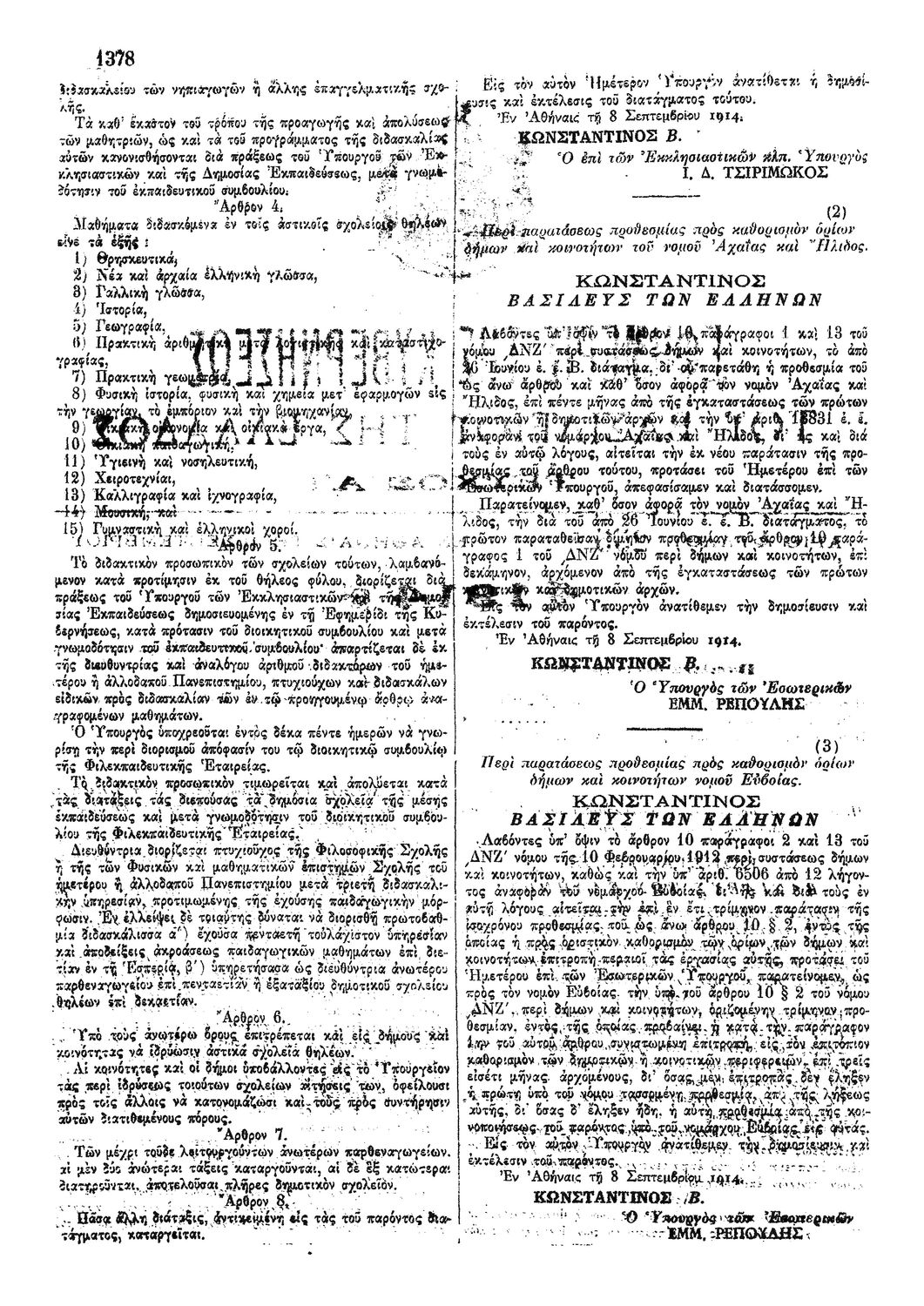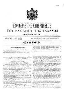 Κωδικός αναγνώρισης: 1914-255A Τίτλος: ΦΕΚ 255/11.09.1914, Τεύχος Α Μέγεθος και υπόστρωμα: Φεκ προγραμμάτων σπουδών, 2 σελίδες. |