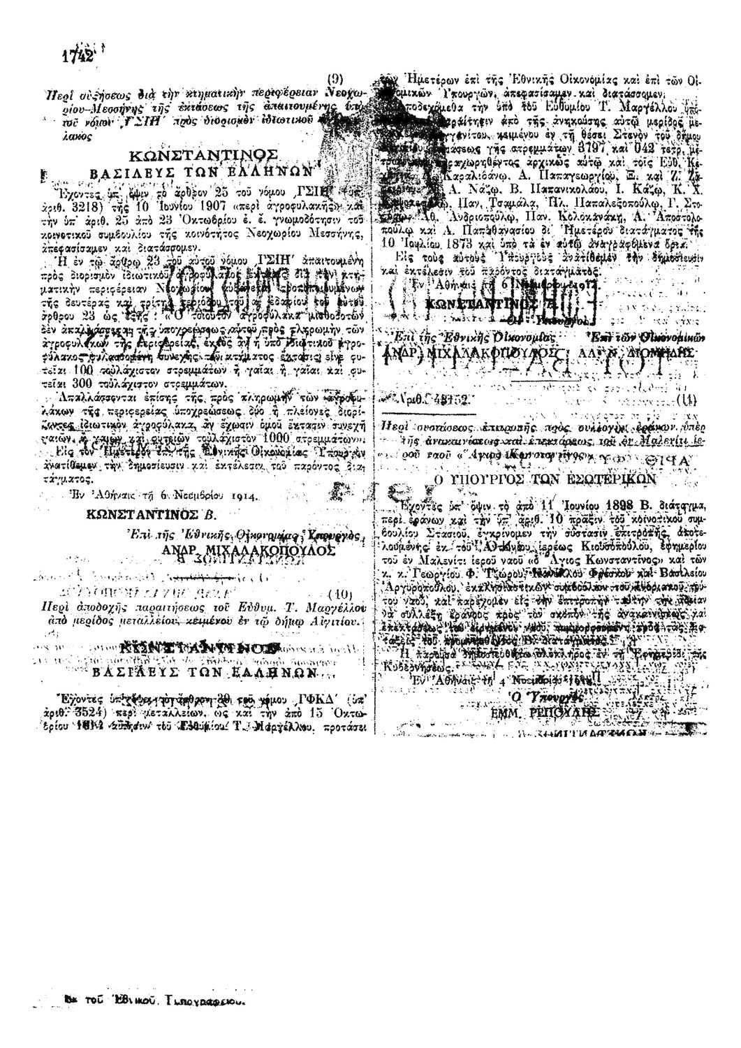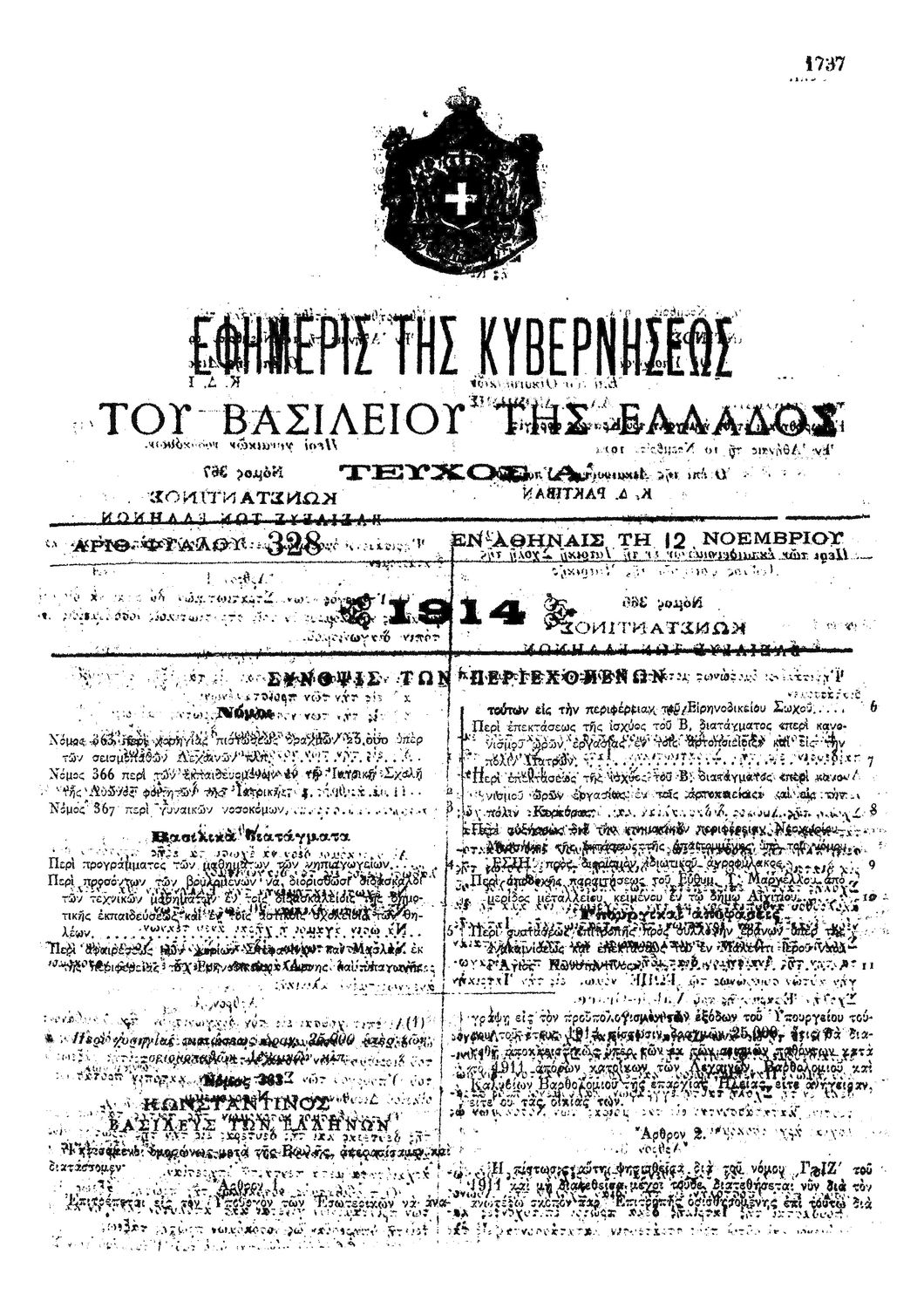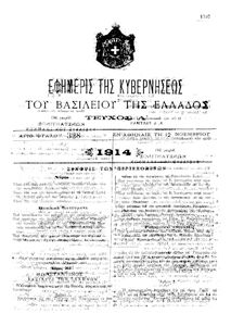 Κωδικός αναγνώρισης: 1914-328A Τίτλος: ΦΕΚ 328/12.11.1914, Τεύχος Α Μέγεθος και υπόστρωμα: Φεκ προγραμμάτων σπουδών, 3 σελίδες. |