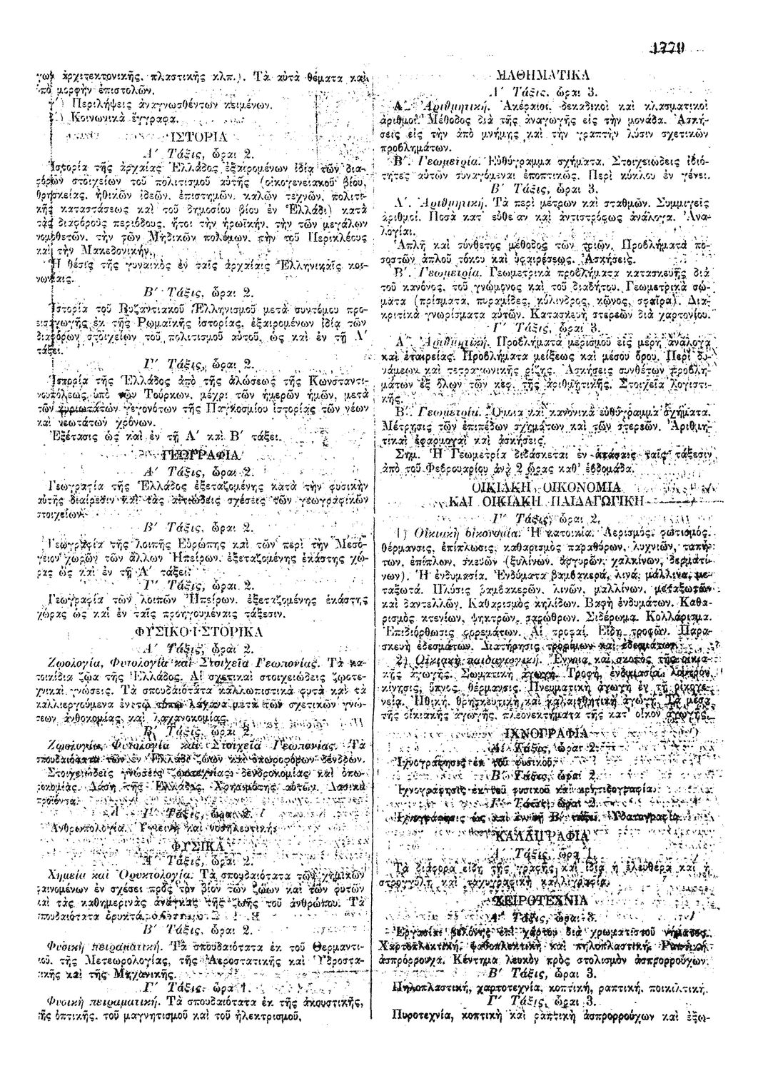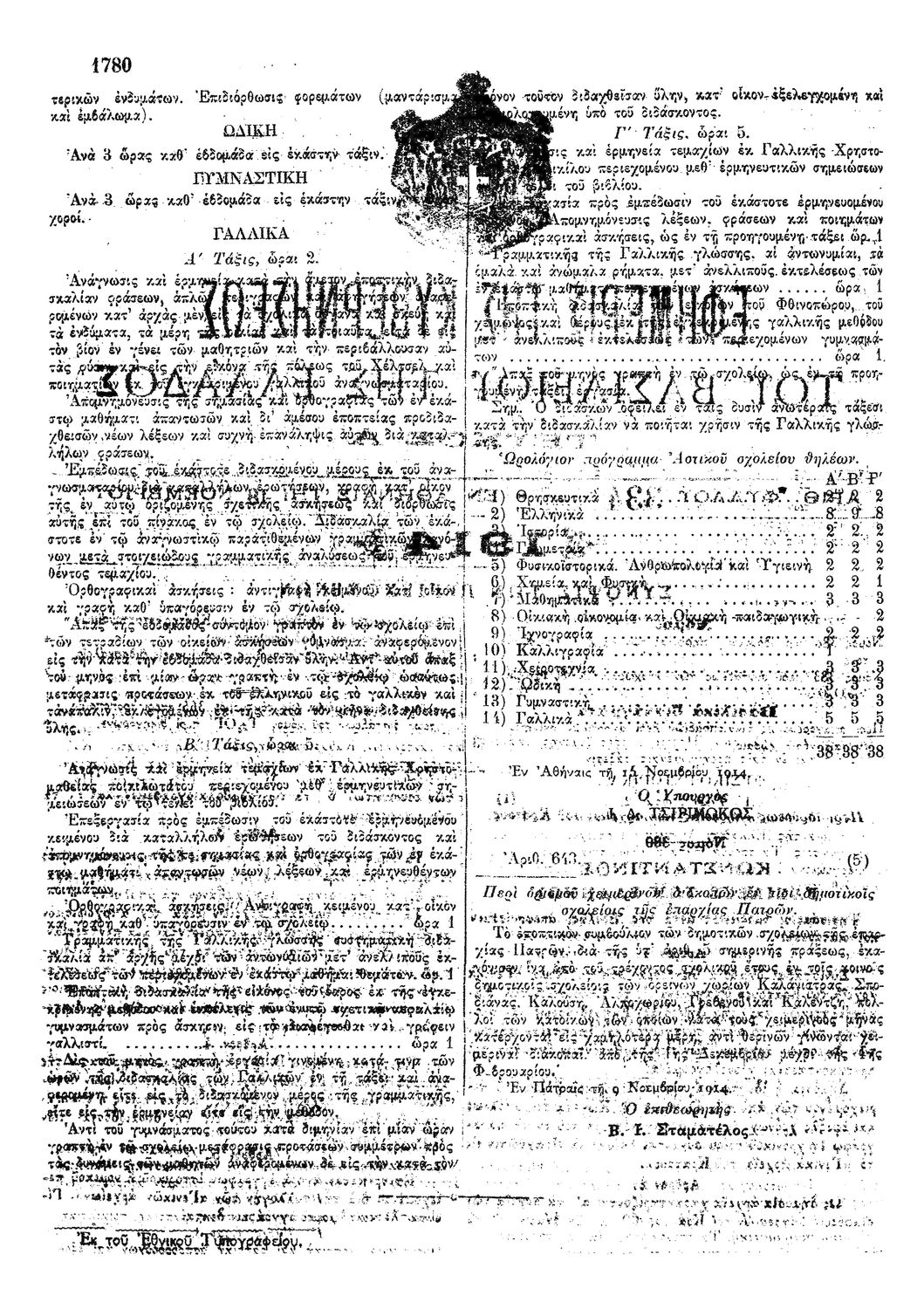 Υ.Α. 34514 Περί προγράμματος των αστικών σχολείων θηλέων