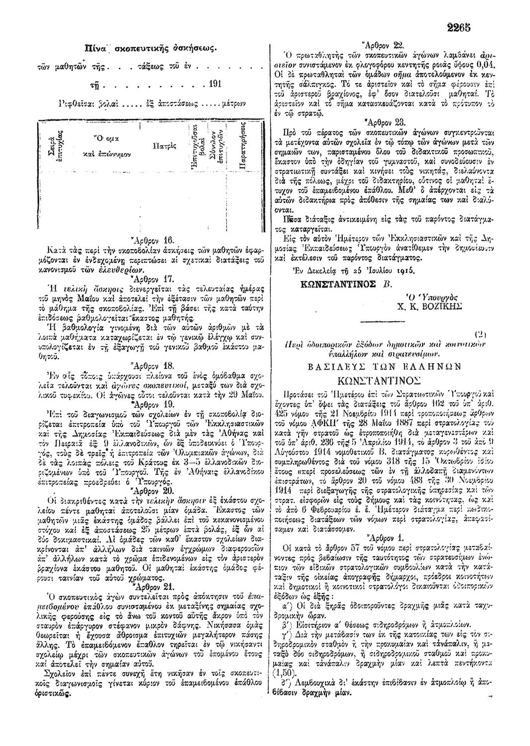 Παρουσίαση περιεχομένου: Β.Δ. Περί ιδρύσεως γυμναστηρίων, σκοπευτηρίων Σχετικές σελίδες: 1-3 |
