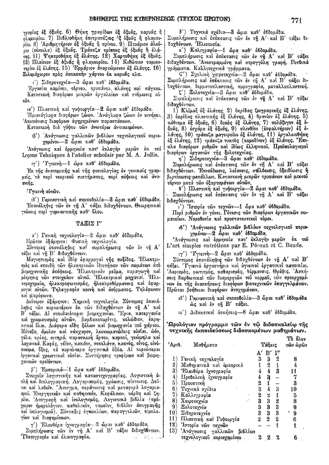 Β.Δ. Περί του προγράμματος των εν τω διδασκαλείω τεχνικής εκπαιδεύσεως διδασκομένων μαθημάτων