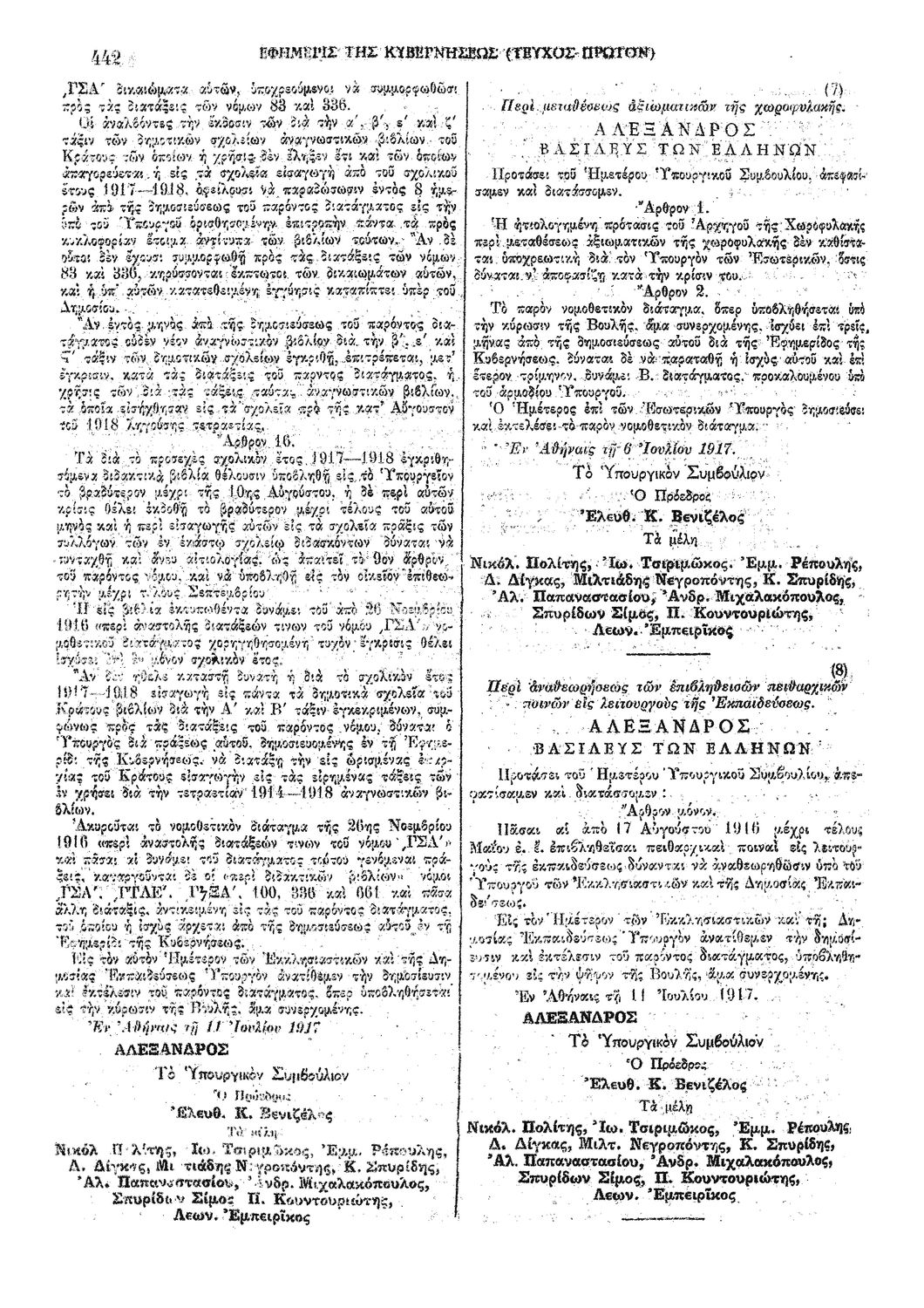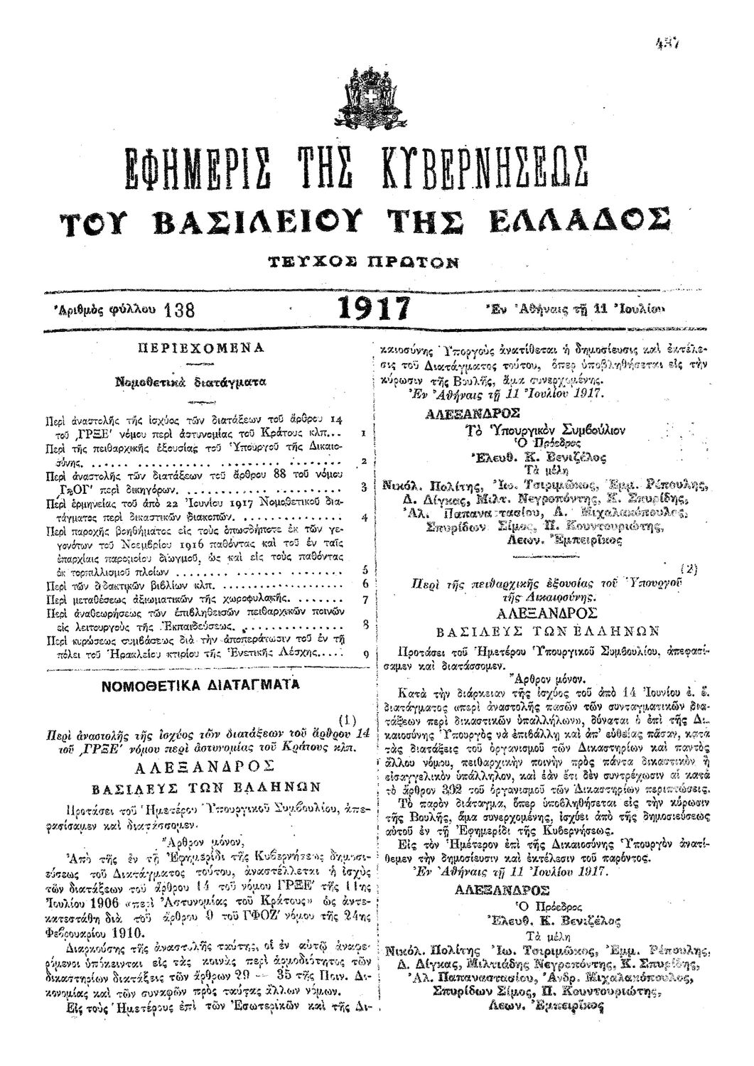 Κωδικός αναγνώρισης: 1917-138A Τίτλος: ΦΕΚ 138/11.07.1917, Τεύχος Α Μέγεθος και υπόστρωμα: Φεκ προγραμμάτων σπουδών, 5 σελίδες. |