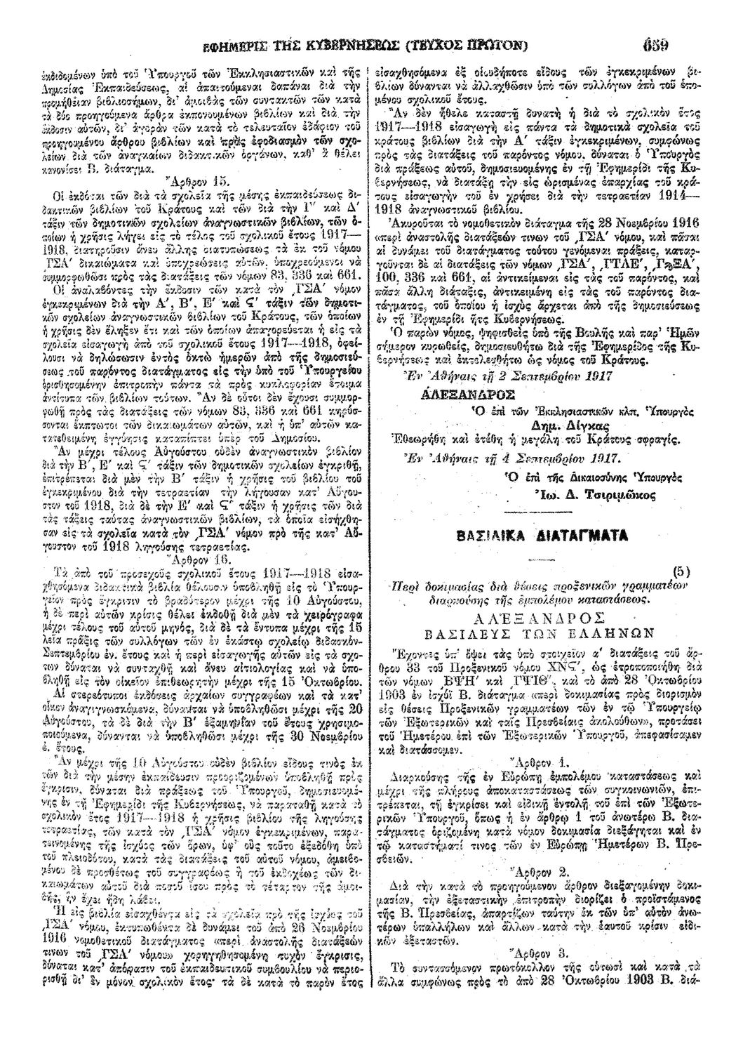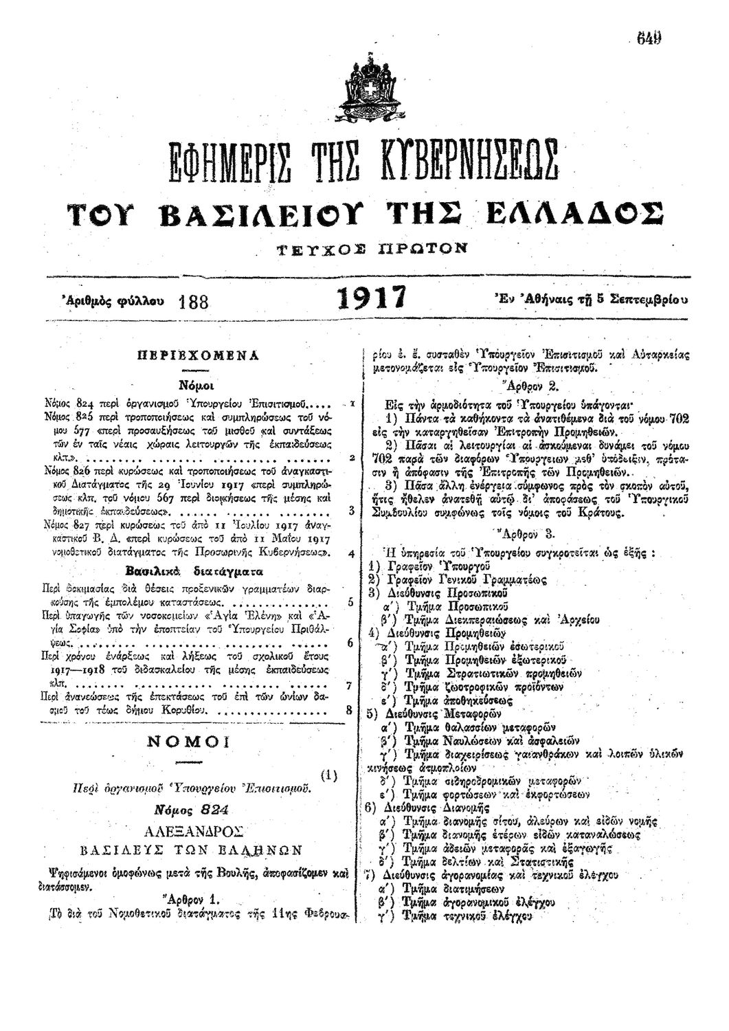 Κωδικός αναγνώρισης: 1917-188A Τίτλος: ΦΕΚ 188/05.09.1917, Τεύχος Α Μέγεθος και υπόστρωμα: Φεκ προγραμμάτων σπουδών, 5 σελίδες. |