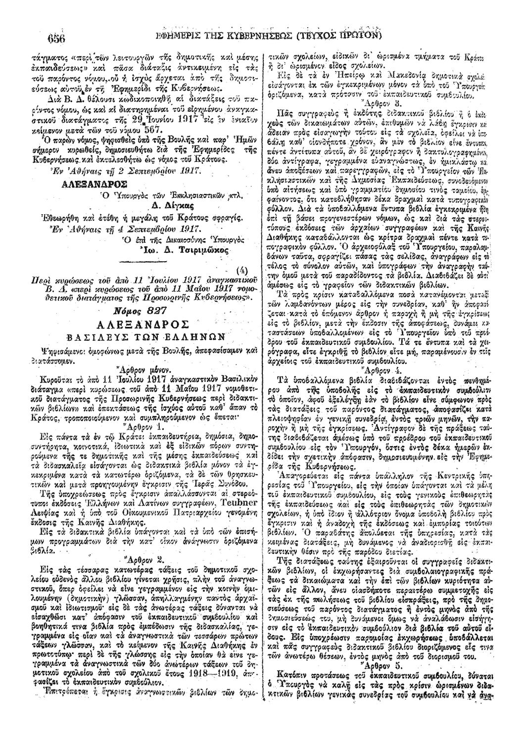 Νόμος 827 Περί κυρώσεως του από 11 Ιουλίου 1917 αναγκαστικού Β. Δ. "περί κυρώσεως του από 11 Μαίου 1917 νομοθετικού διατάγματος της Προσωρινής Κυβερνήσεως"