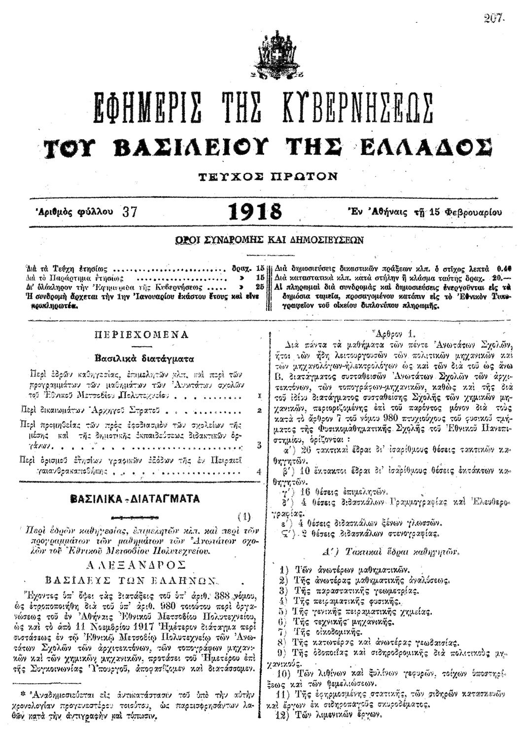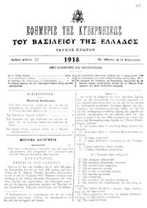 Κωδικός αναγνώρισης: 1918-037A Τίτλος: ΦΕΚ 37/15.02.1918, Τεύχος Α Μέγεθος και υπόστρωμα: Φεκ προγραμμάτων σπουδών, 3 σελίδες. |