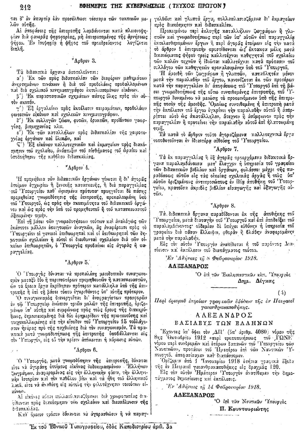 Παρουσίαση περιεχομένου: Περί προμηθείας των προς εφοδιασμόν των σχολείων της μέσης και της δημοτικής εκπαιδεύσεως διδακτικών οργάνων Σχετικές σελίδες: 1, 5-6 |