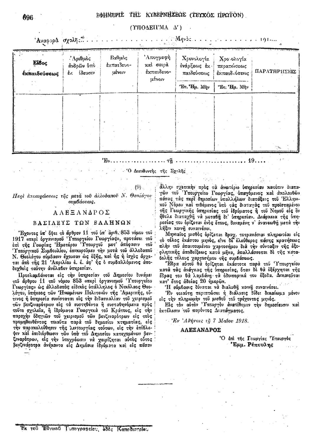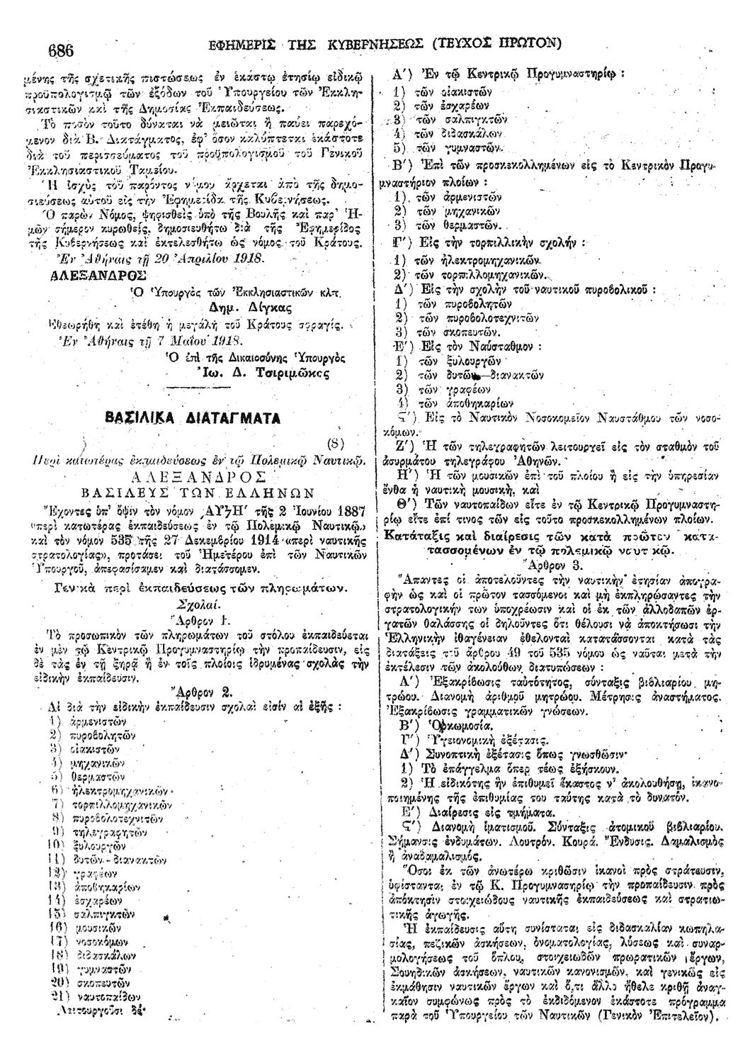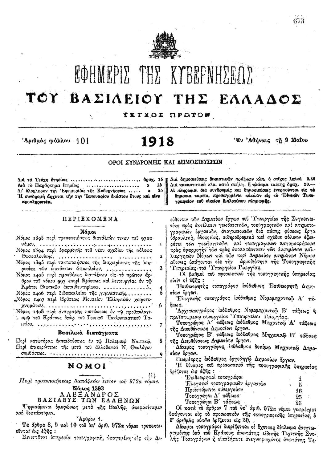 Κωδικός αναγνώρισης: 1918-101A Τίτλος: ΦΕΚ 101/09.05.1918, Τεύχος Α Μέγεθος και υπόστρωμα: Φεκ προγραμμάτων σπουδών, 4 σελίδες. |
