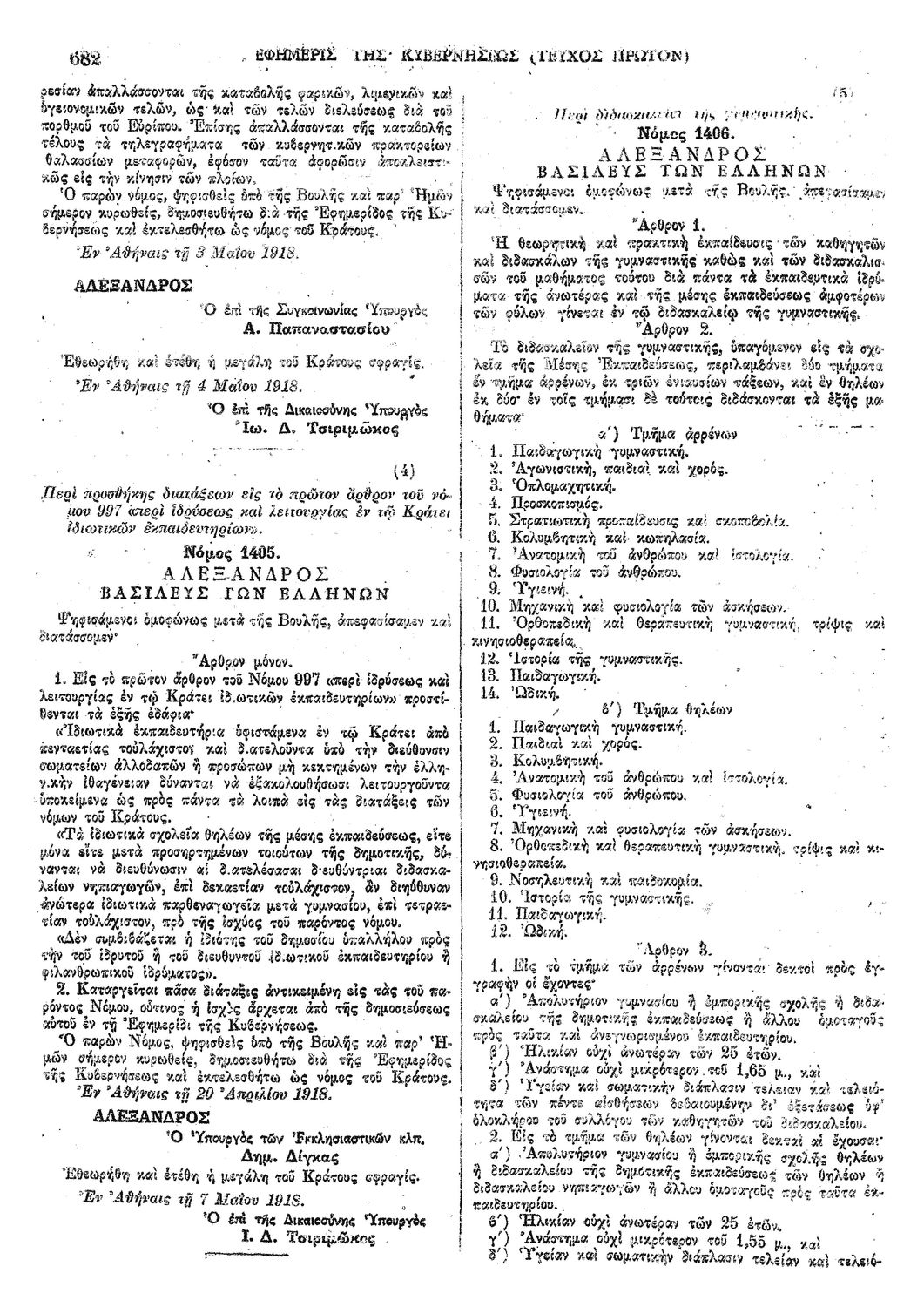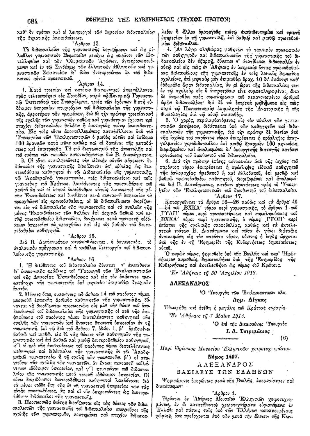 Νόμος 1406 Περί διδασκαλείου της γυμναστικής
