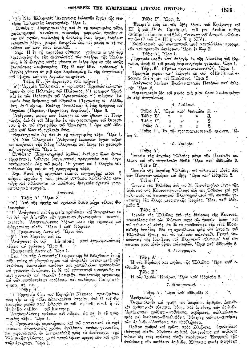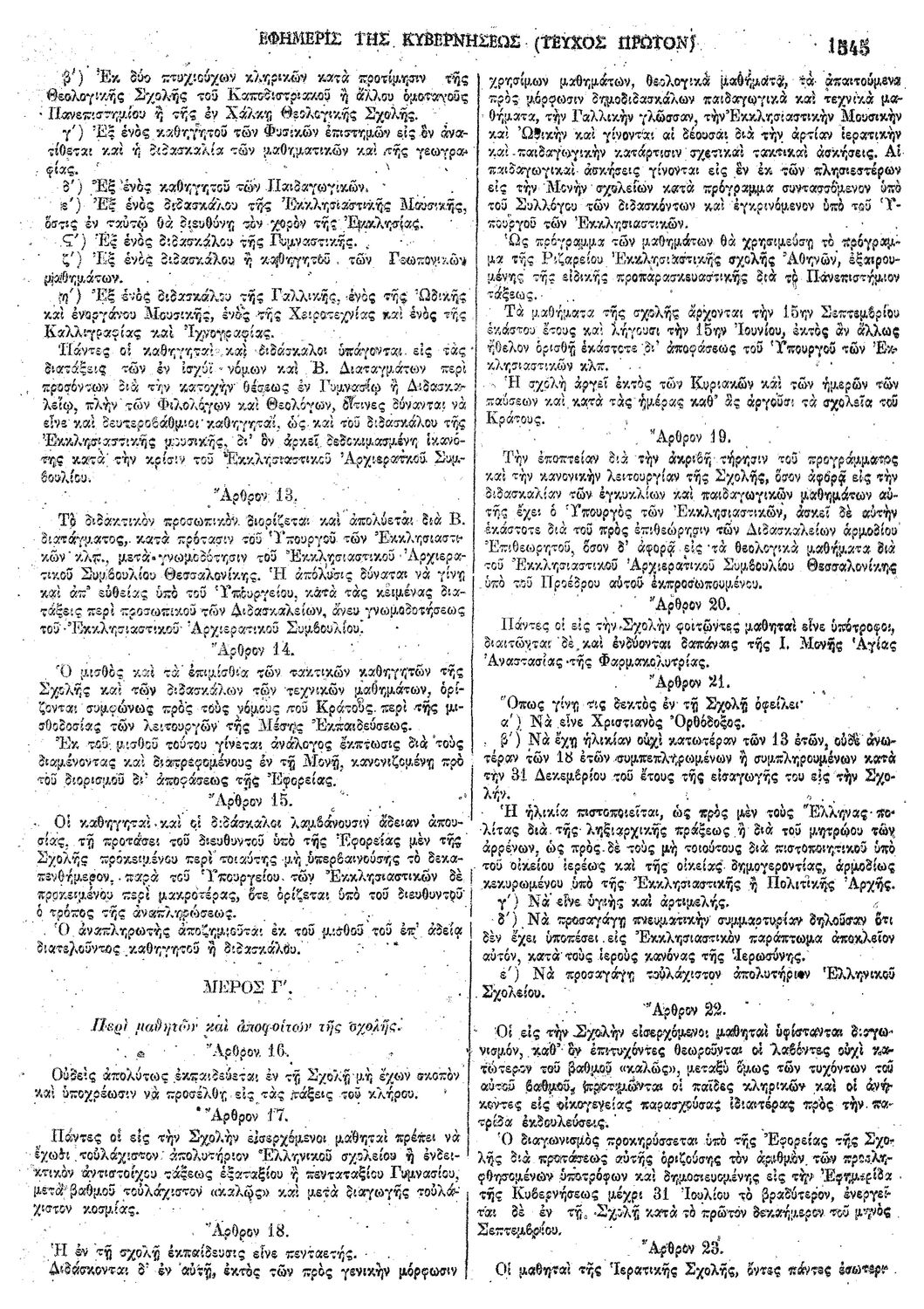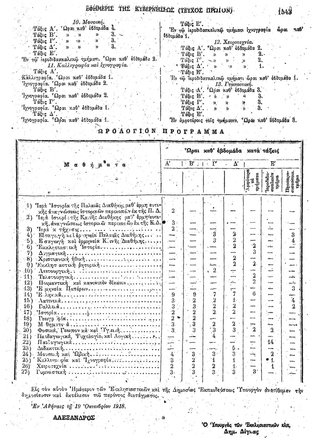 Β.Δ. Περί προγράμματος των μαθημάτων της Ριζαρείου Εκκλησιαστικής Σχολής