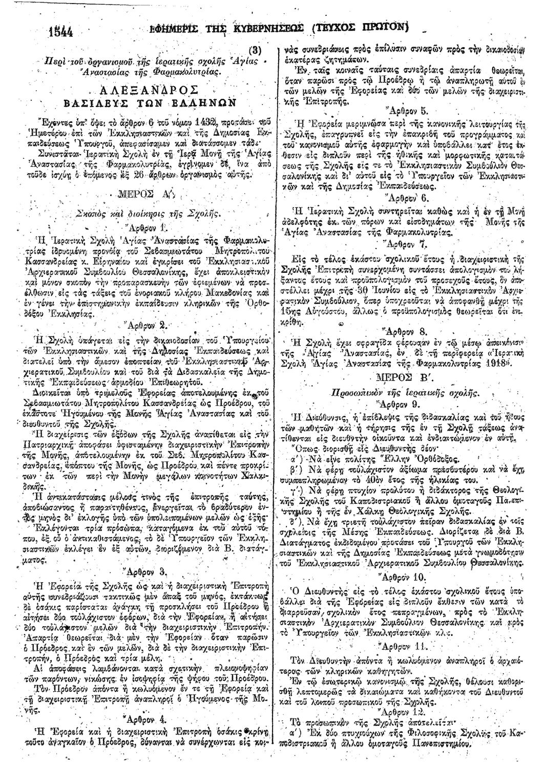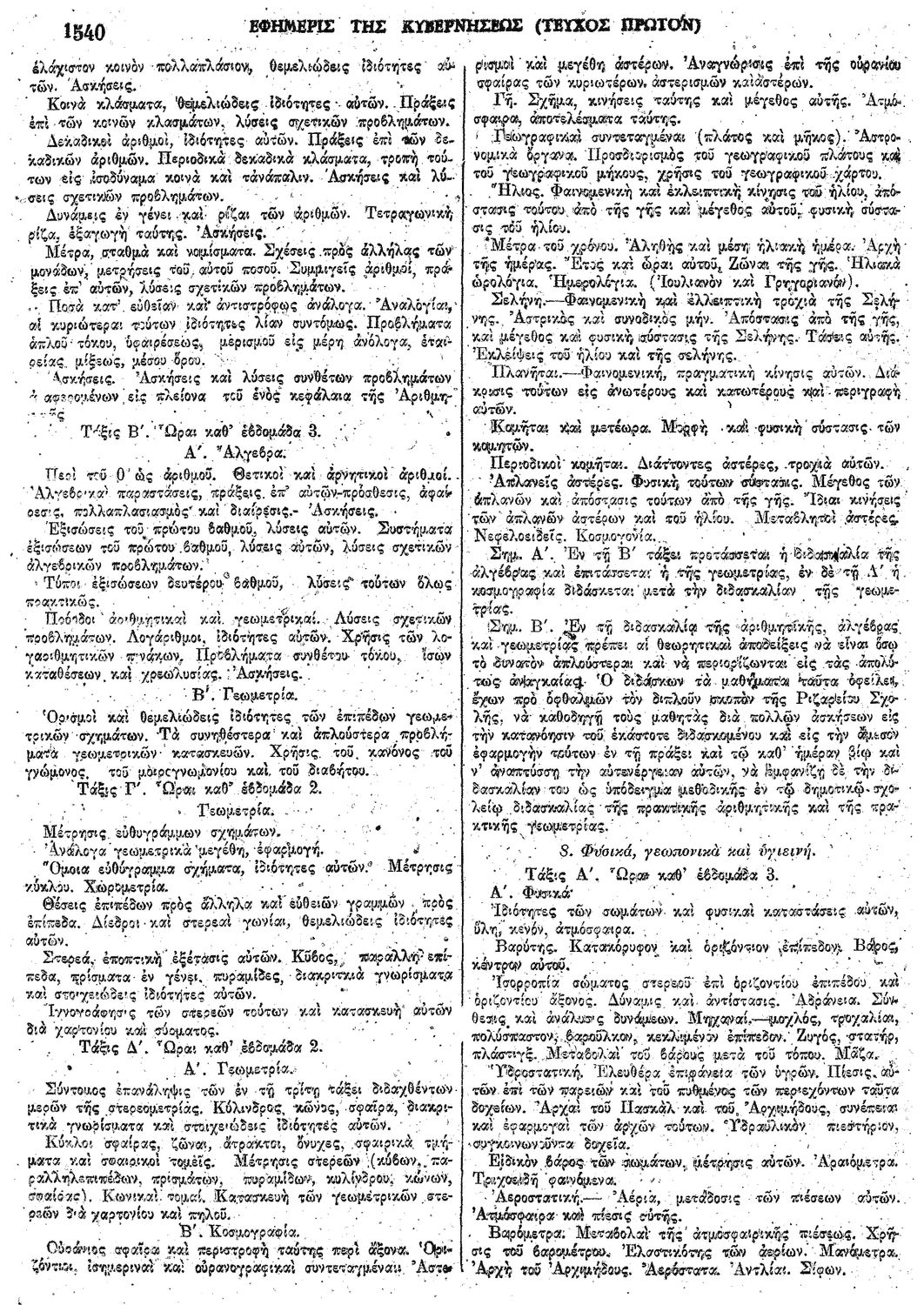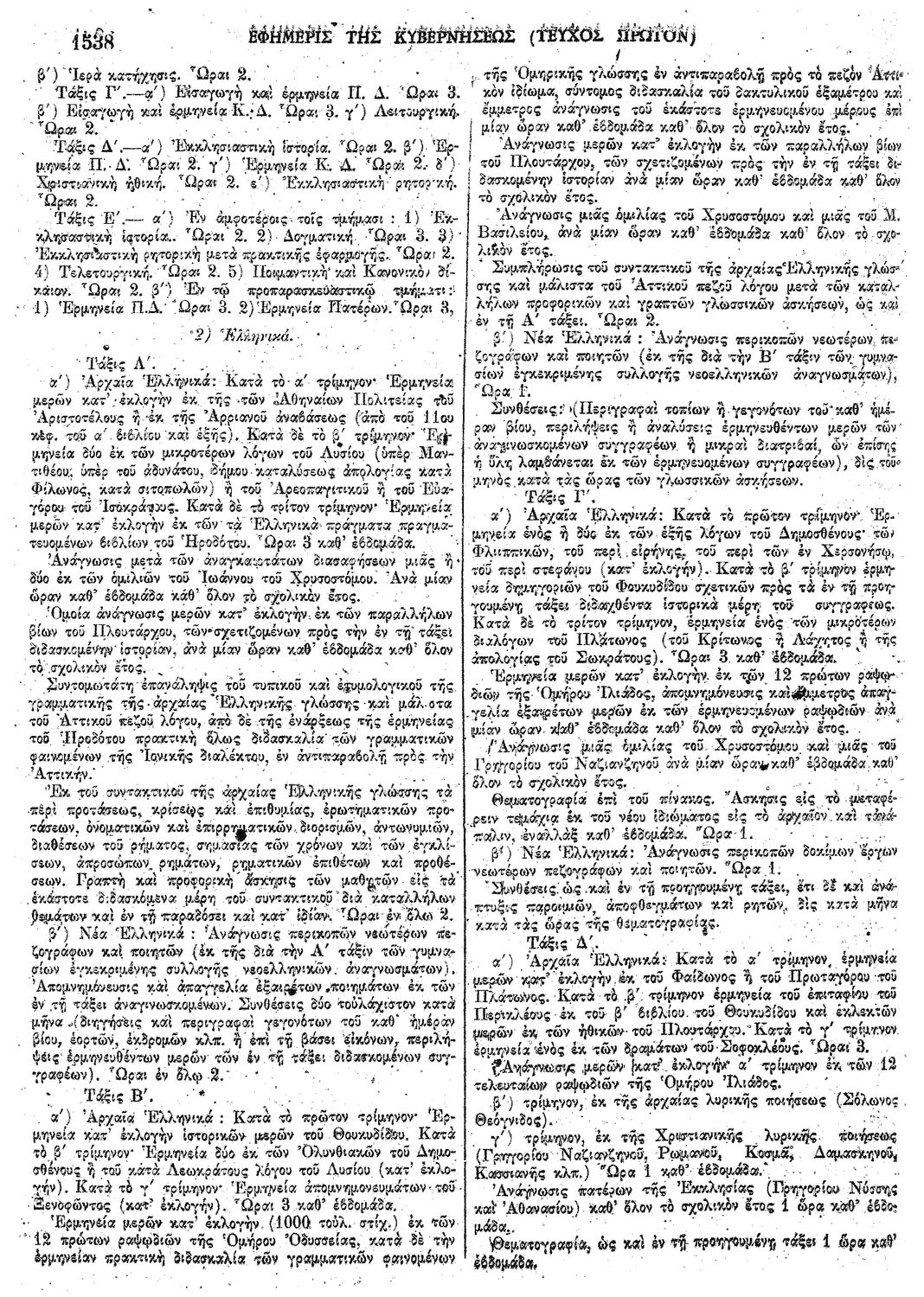 Β.Δ. Περί προγράμματος των μαθημάτων της Ριζαρείου Εκκλησιαστικής Σχολής