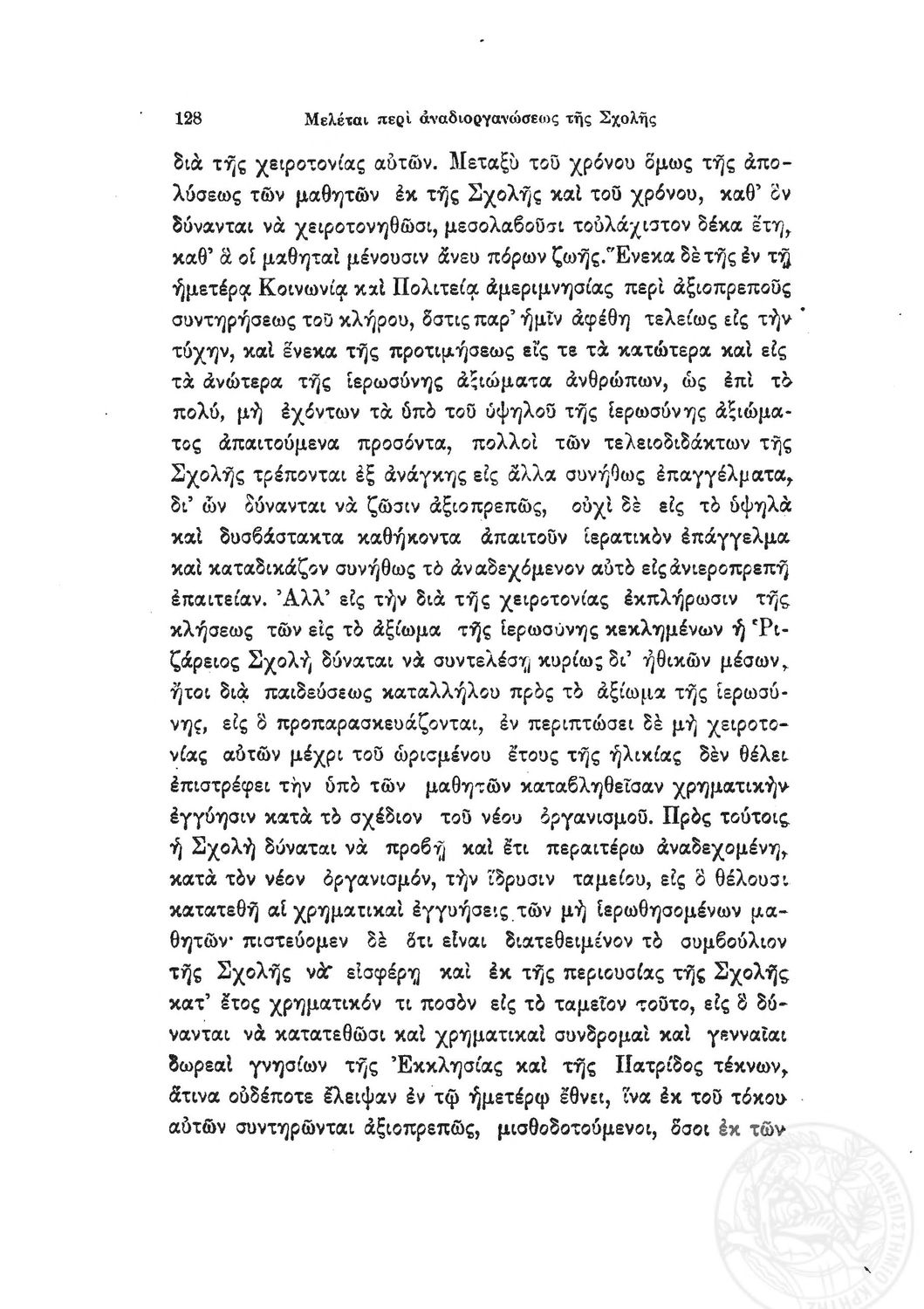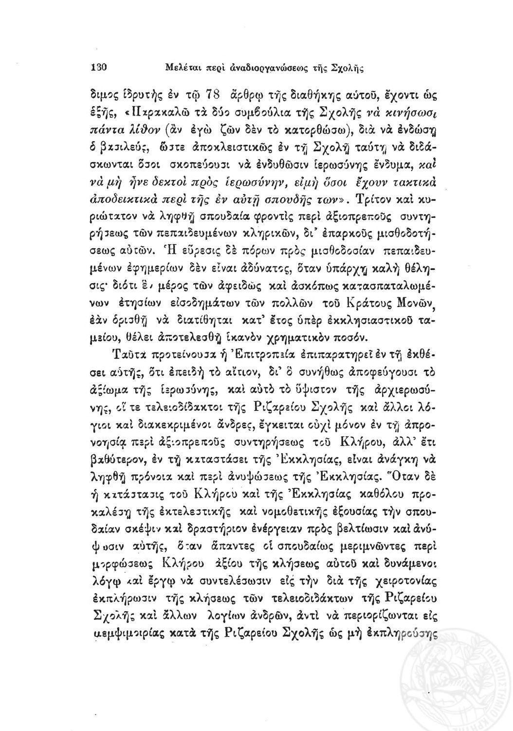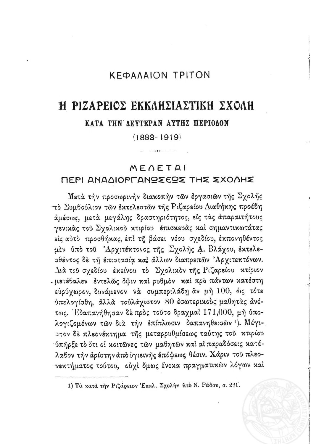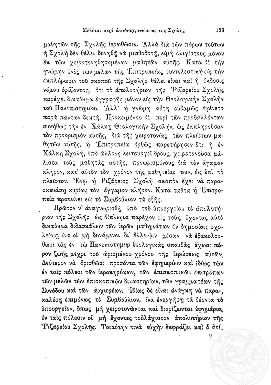 Δ. Περί του οργανισμού της εν Αθήναις Ριζαρείου Εκκλησιαστικής σχολής