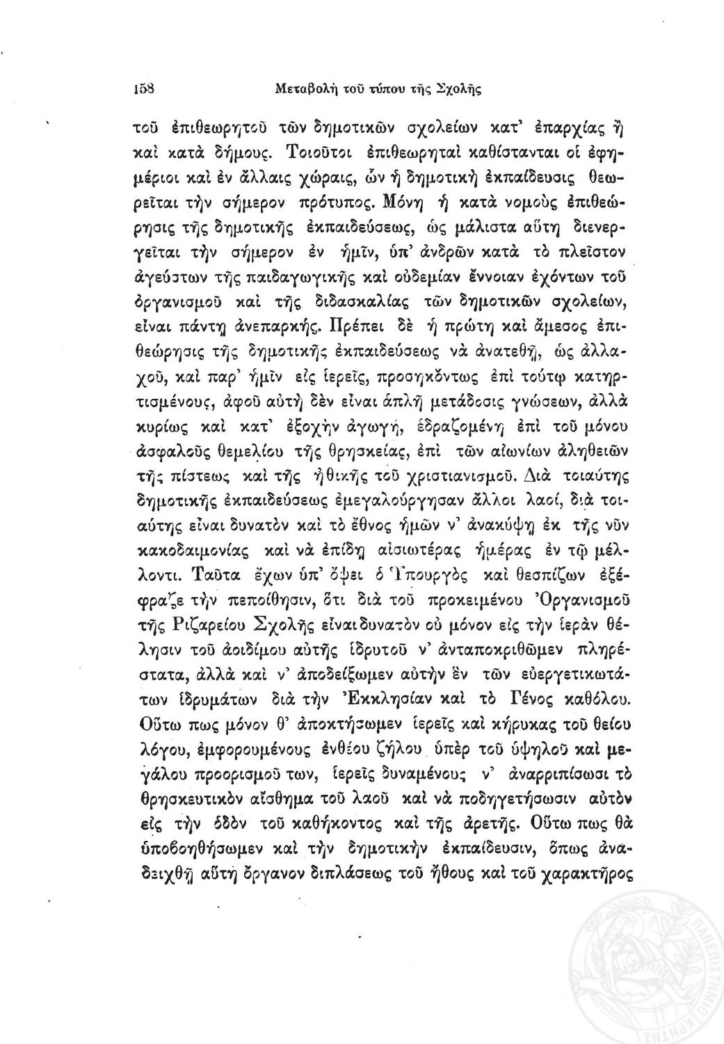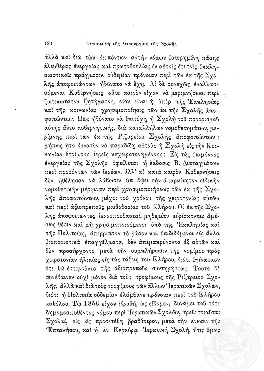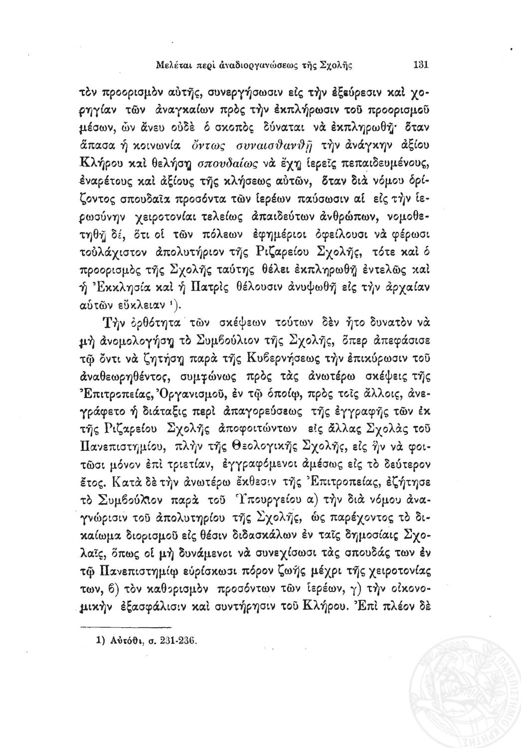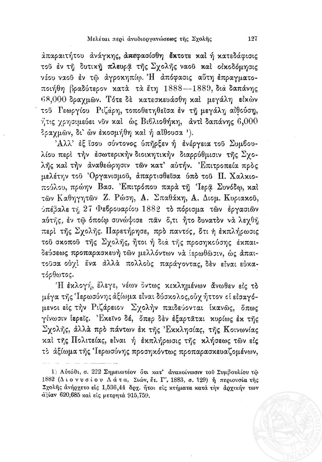 Δ. Περί του οργανισμού της εν Αθήναις Ριζαρείου Εκκλησιαστικής σχολής