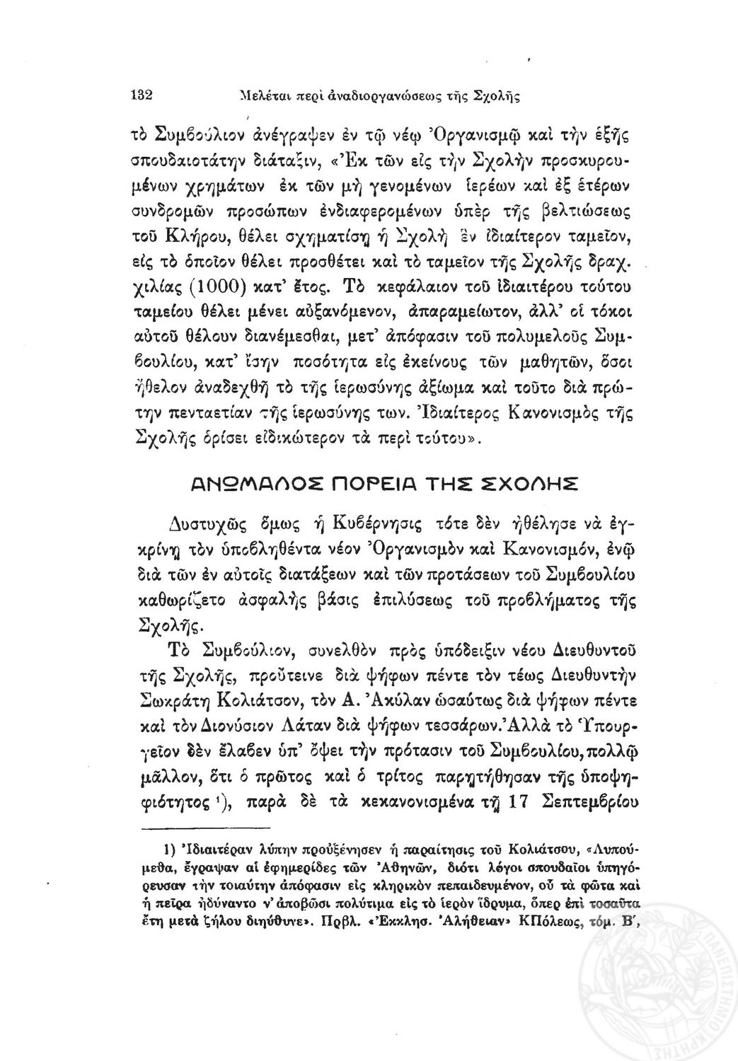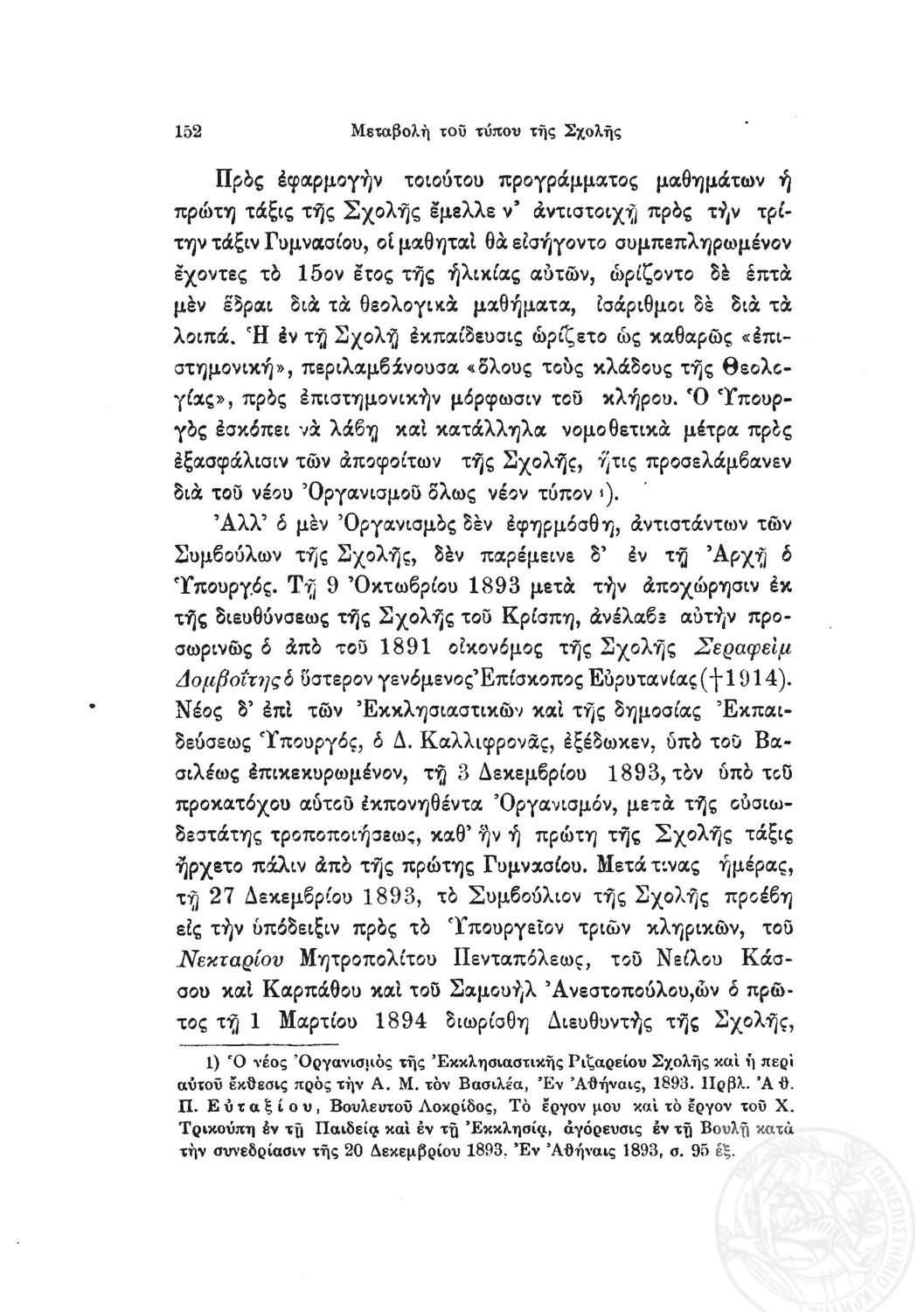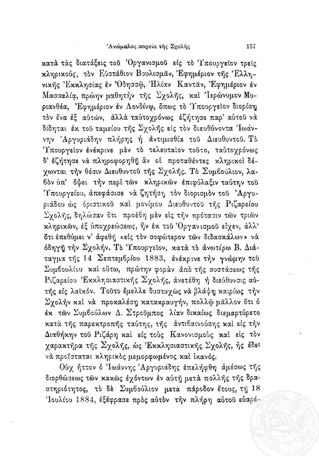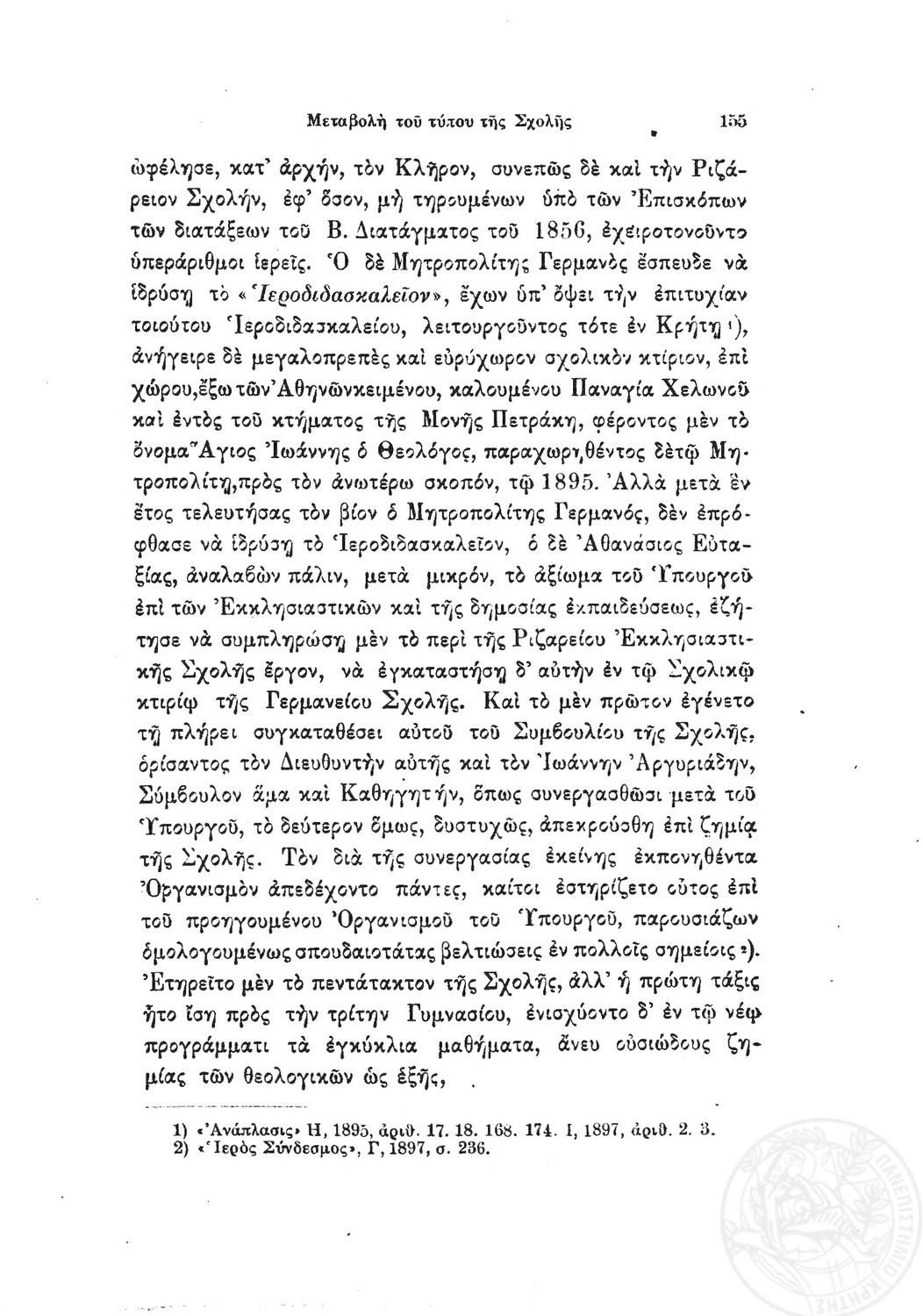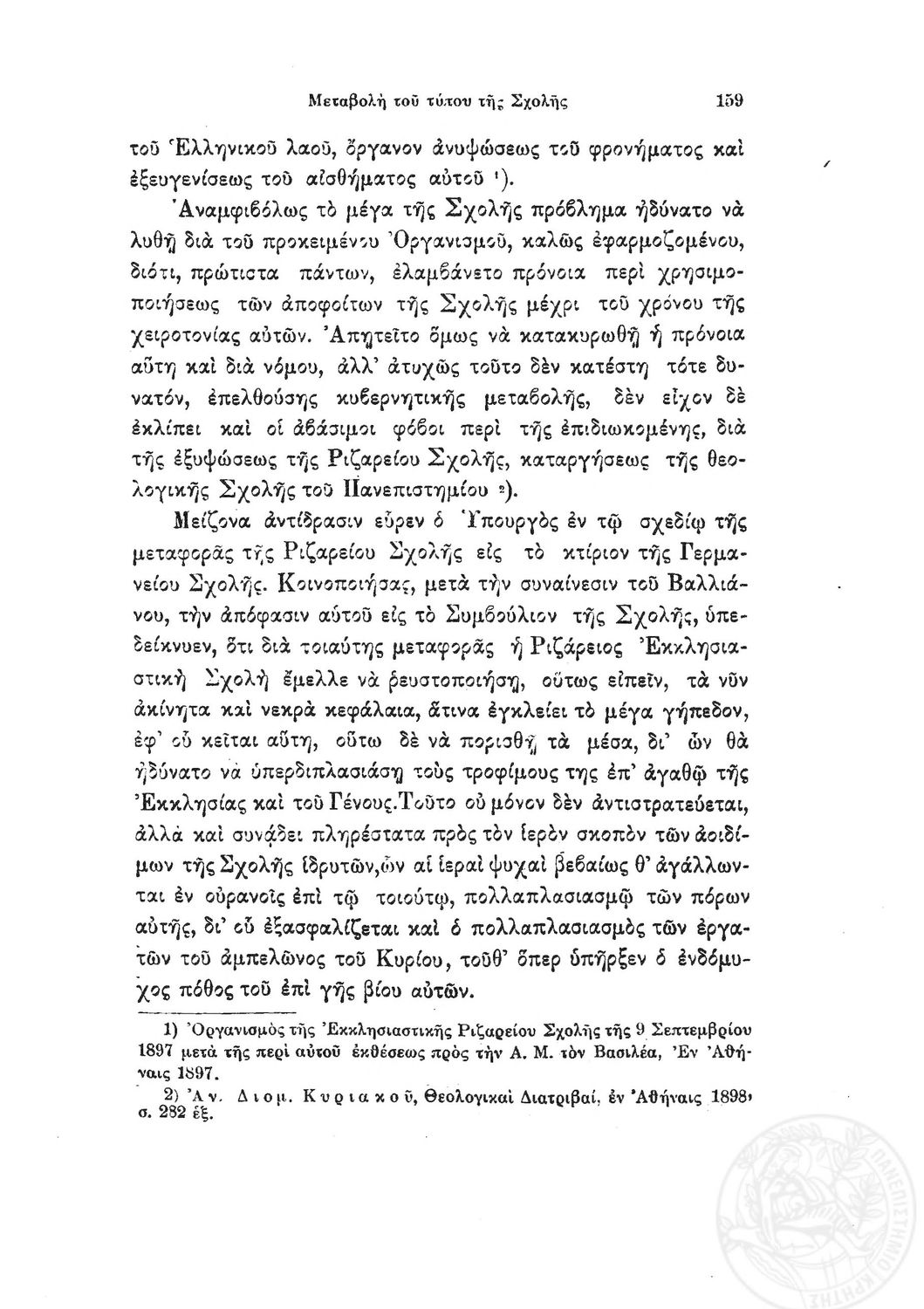 Δ. Περί του οργανισμού της εν Αθήναις Ριζαρείου Εκκλησιαστικής σχολής