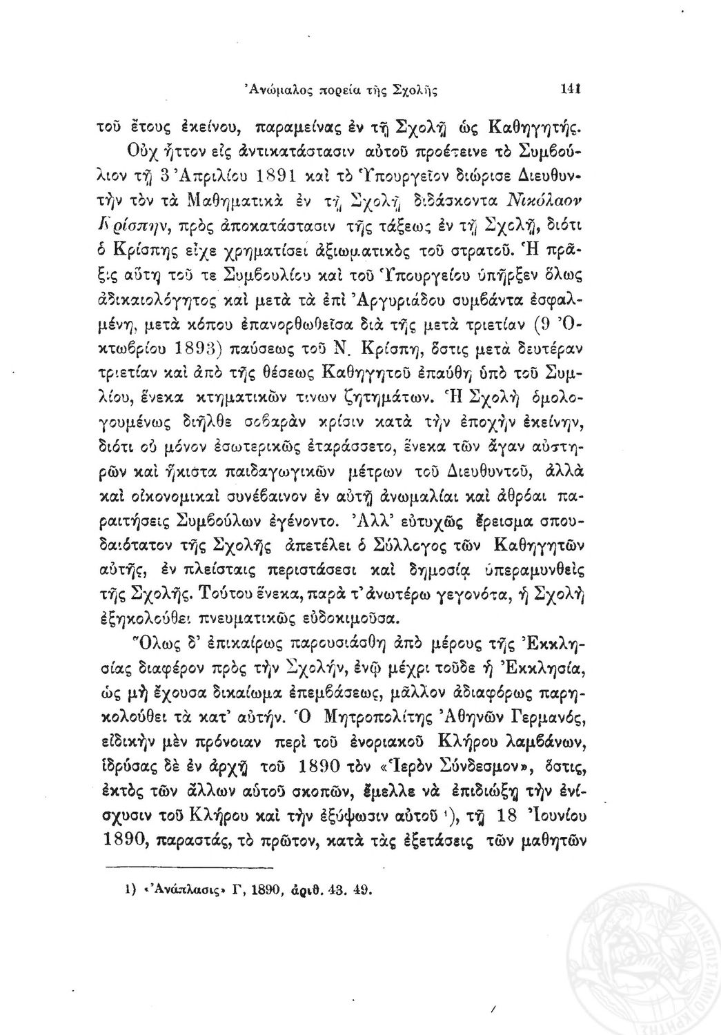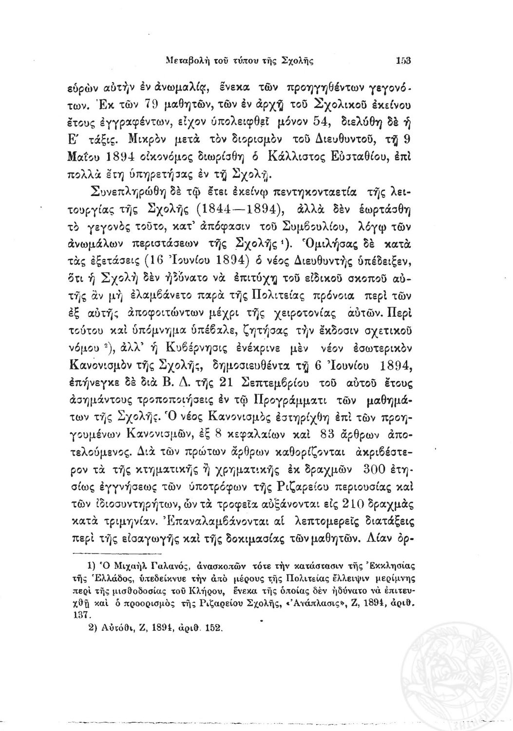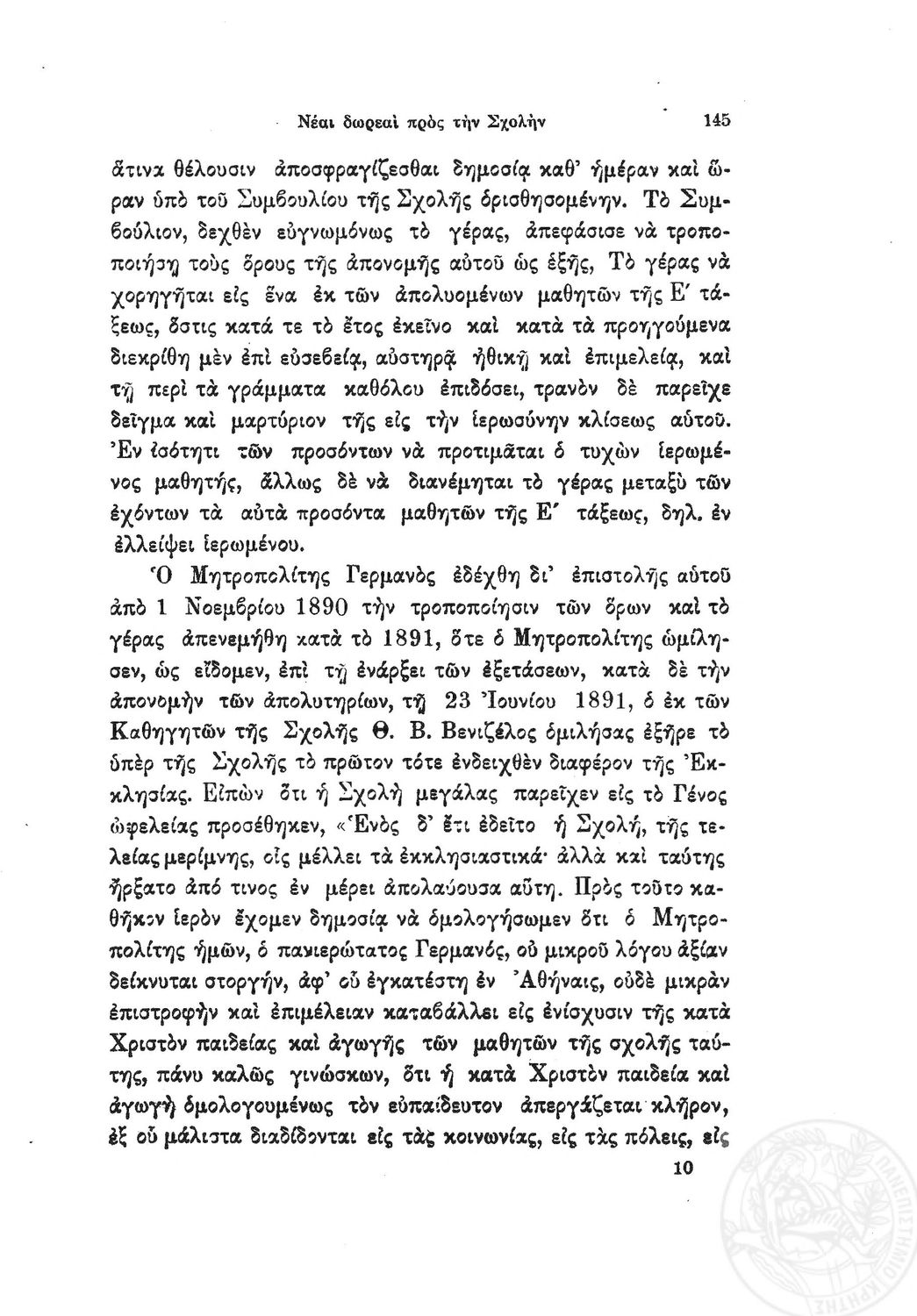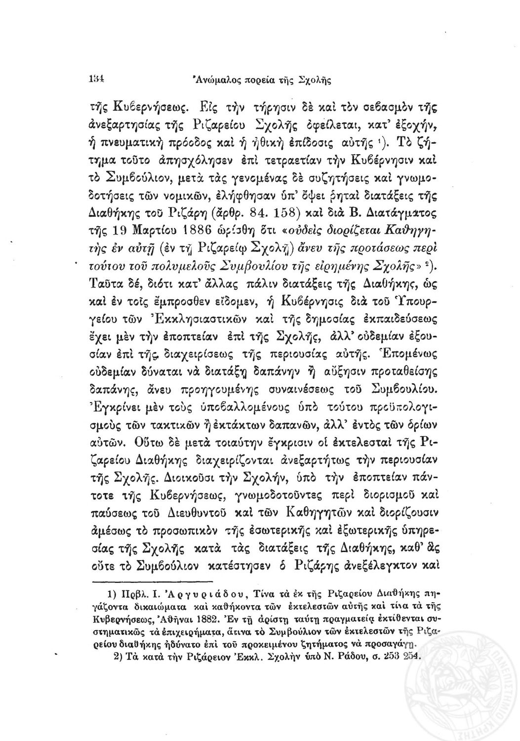Δ. Περί του οργανισμού της εν Αθήναις Ριζαρείου Εκκλησιαστικής σχολής
