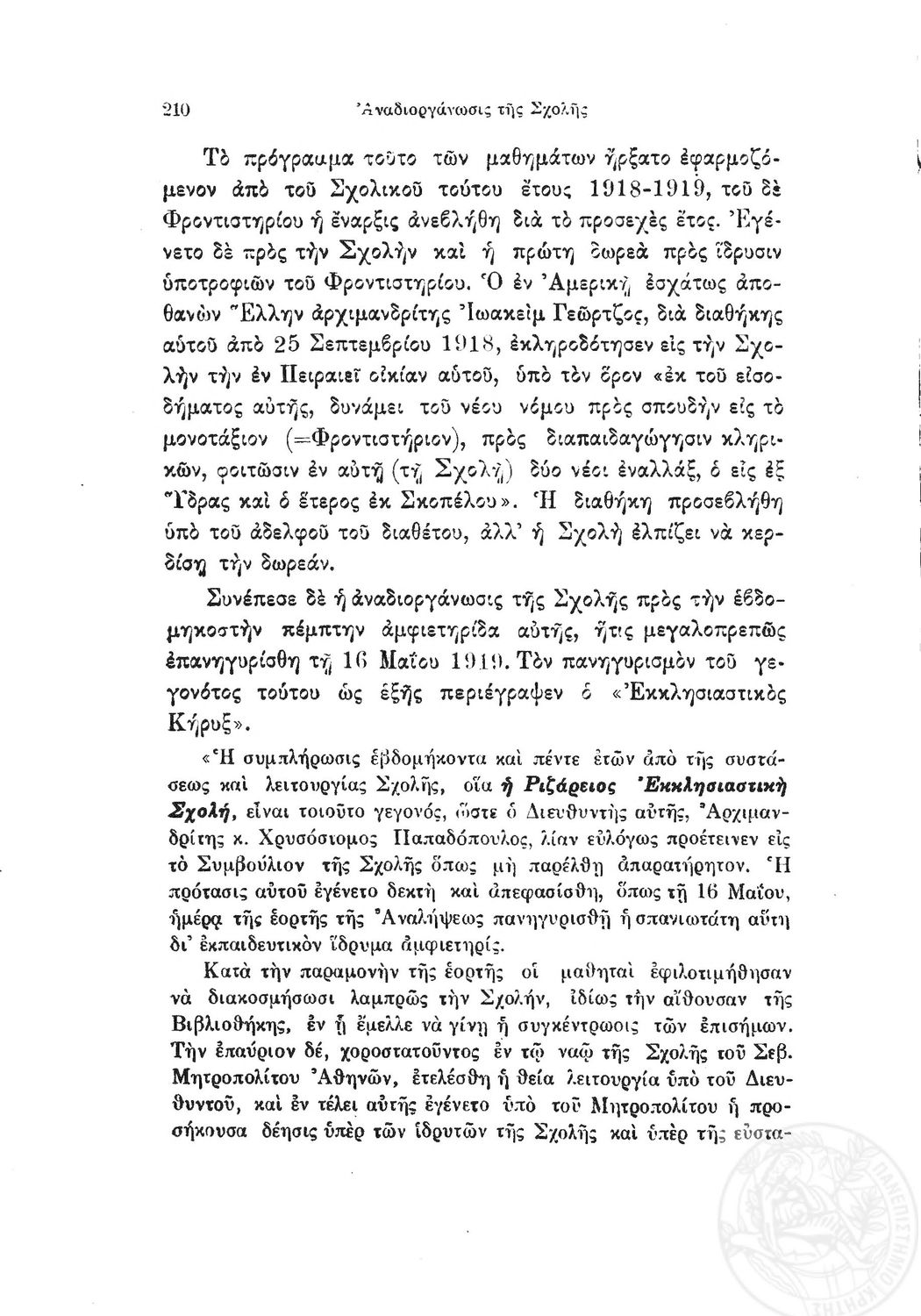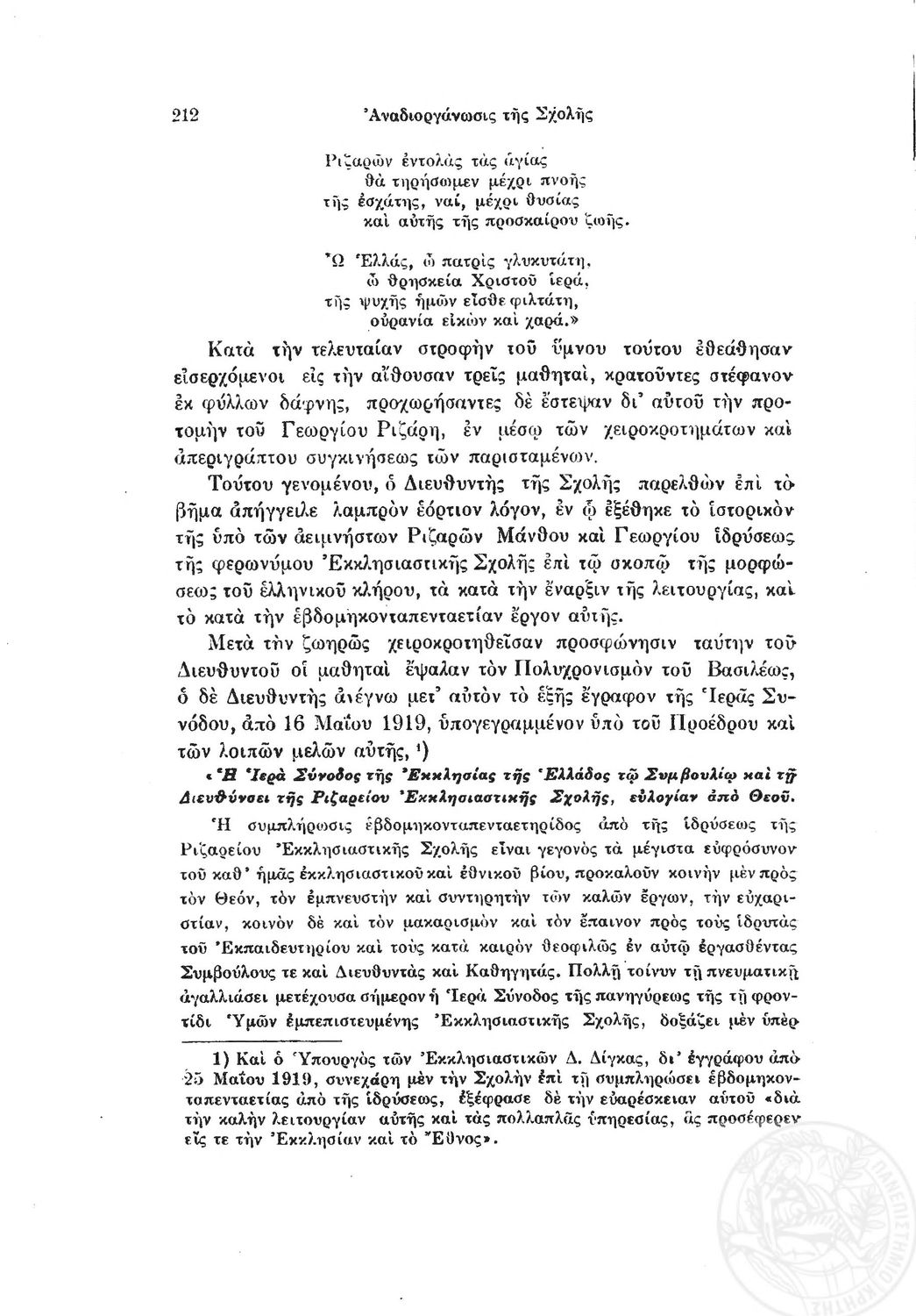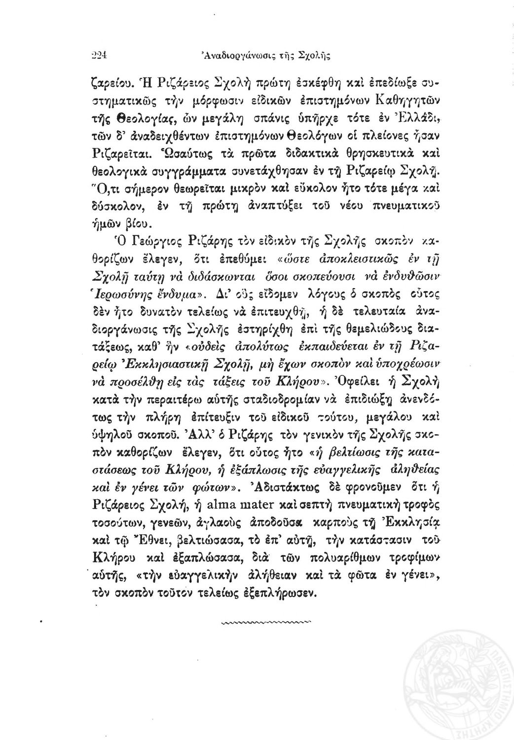 Κωδικός αναγνώρισης: 1919-0032 Τίτλος: Ιστορία της Ριζαρείου Eκκλησιαστικής Σχολής Μέγεθος και υπόστρωμα: Λοιπά προγραμμάτων σπουδών, 251 σελίδες. |
