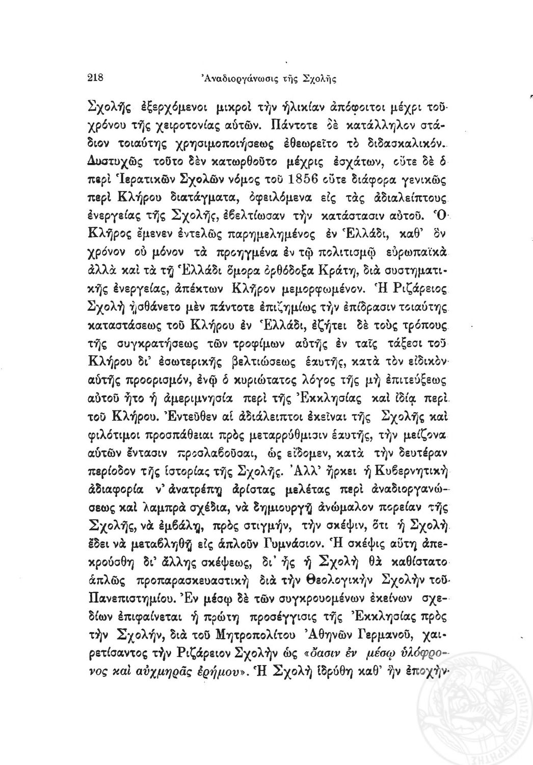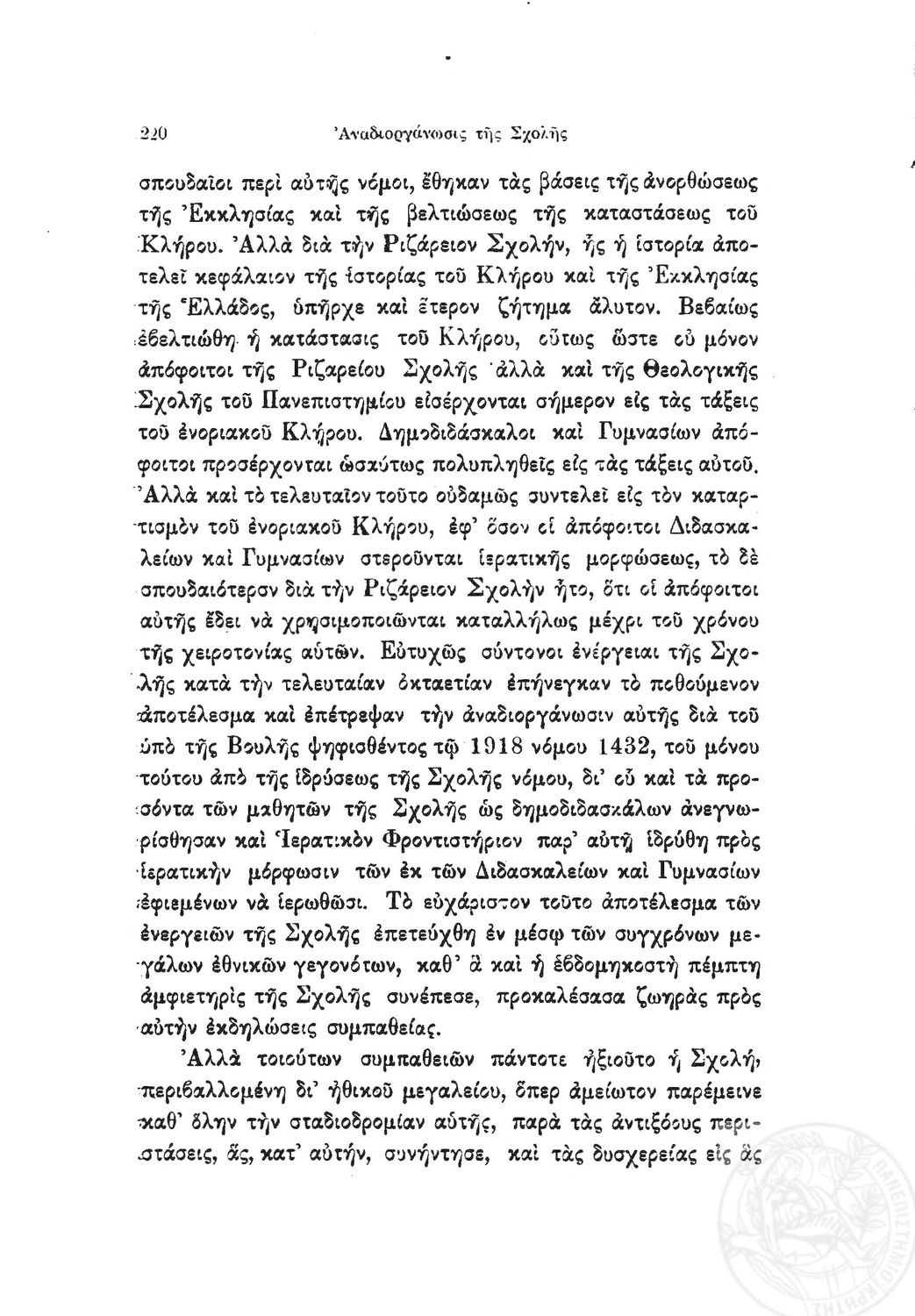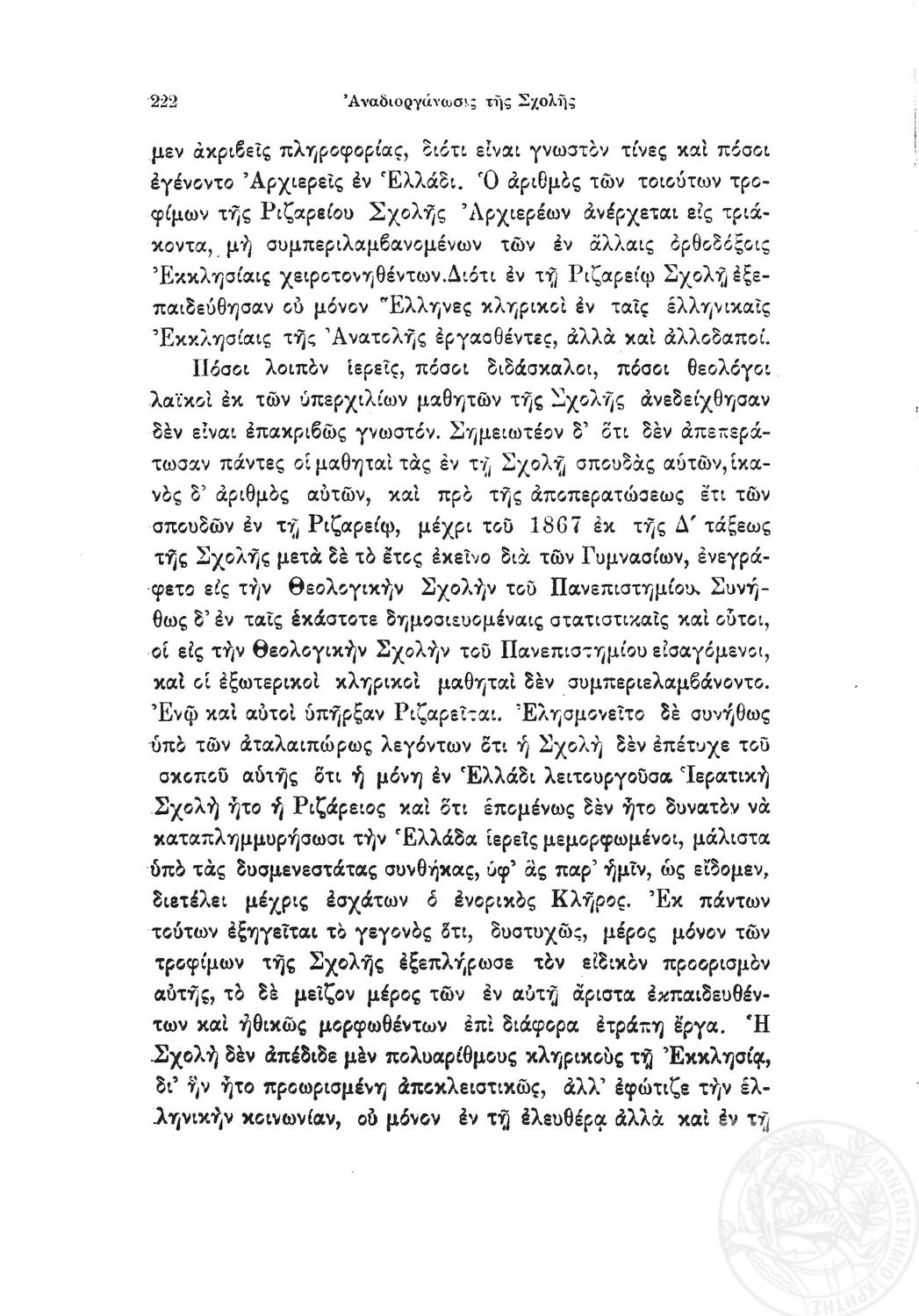 Κωδικός αναγνώρισης: 1919-0032 Τίτλος: Ιστορία της Ριζαρείου Eκκλησιαστικής Σχολής Μέγεθος και υπόστρωμα: Λοιπά προγραμμάτων σπουδών, 251 σελίδες. |