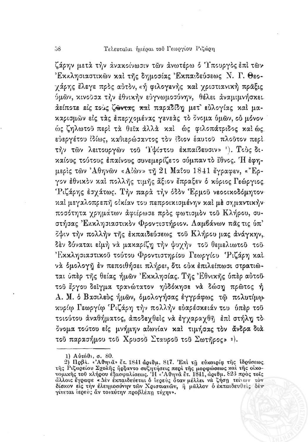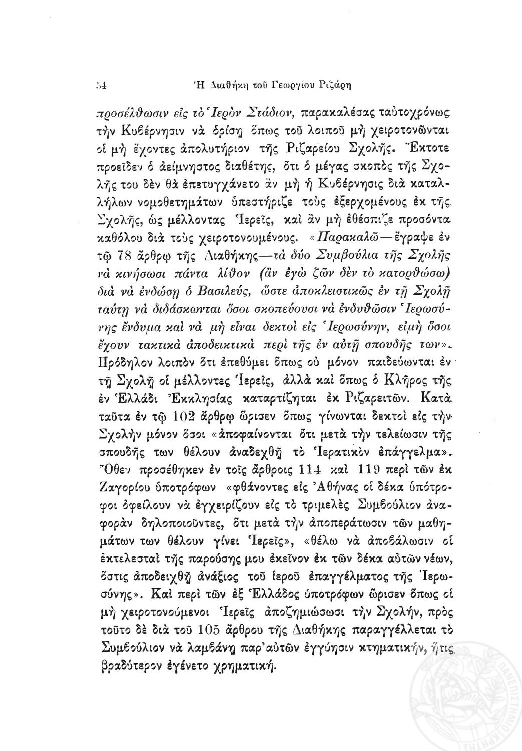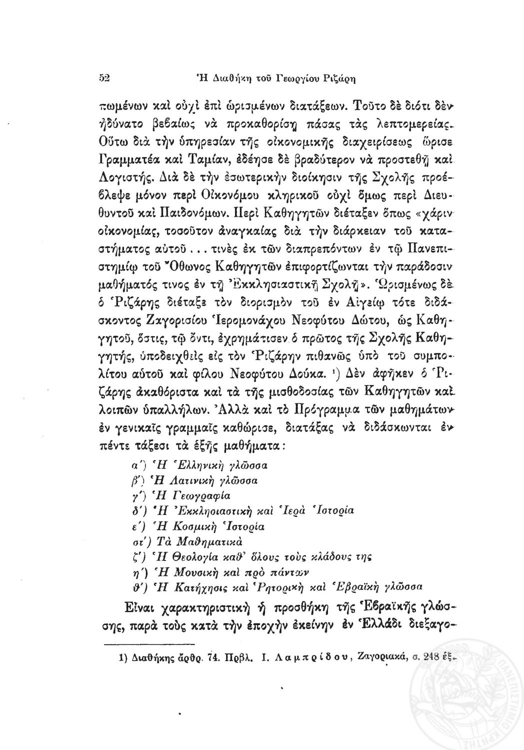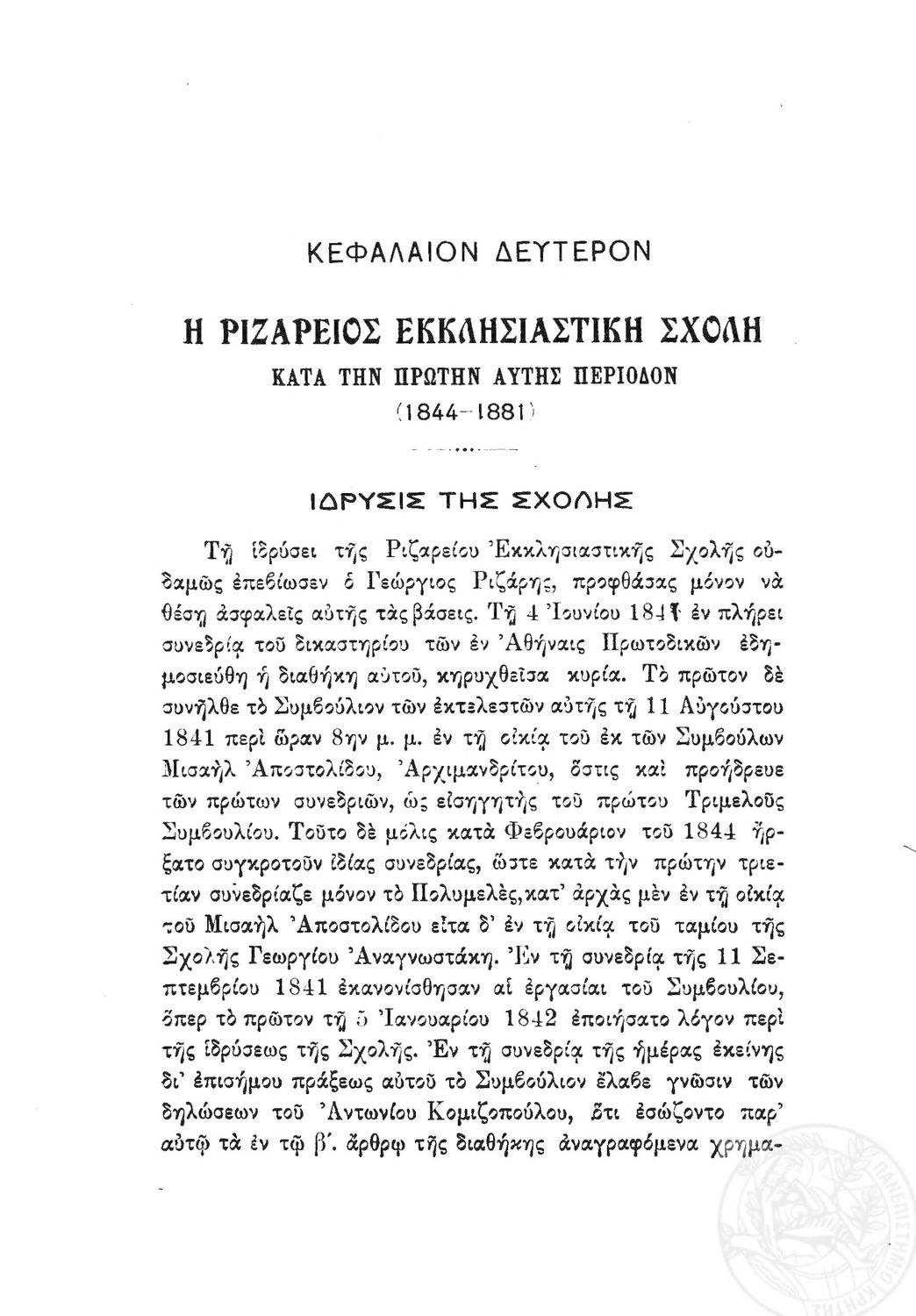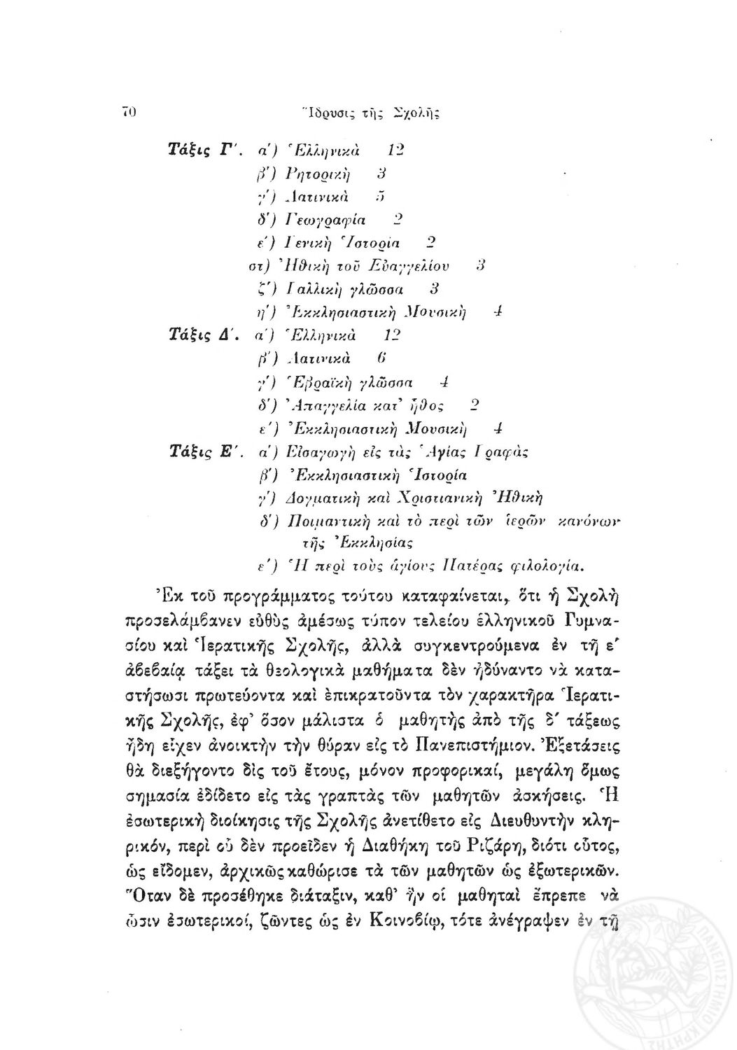 Κωδικός αναγνώρισης: 1919-0032 Τίτλος: Ιστορία της Ριζαρείου Eκκλησιαστικής Σχολής Μέγεθος και υπόστρωμα: Λοιπά προγραμμάτων σπουδών, 251 σελίδες. |