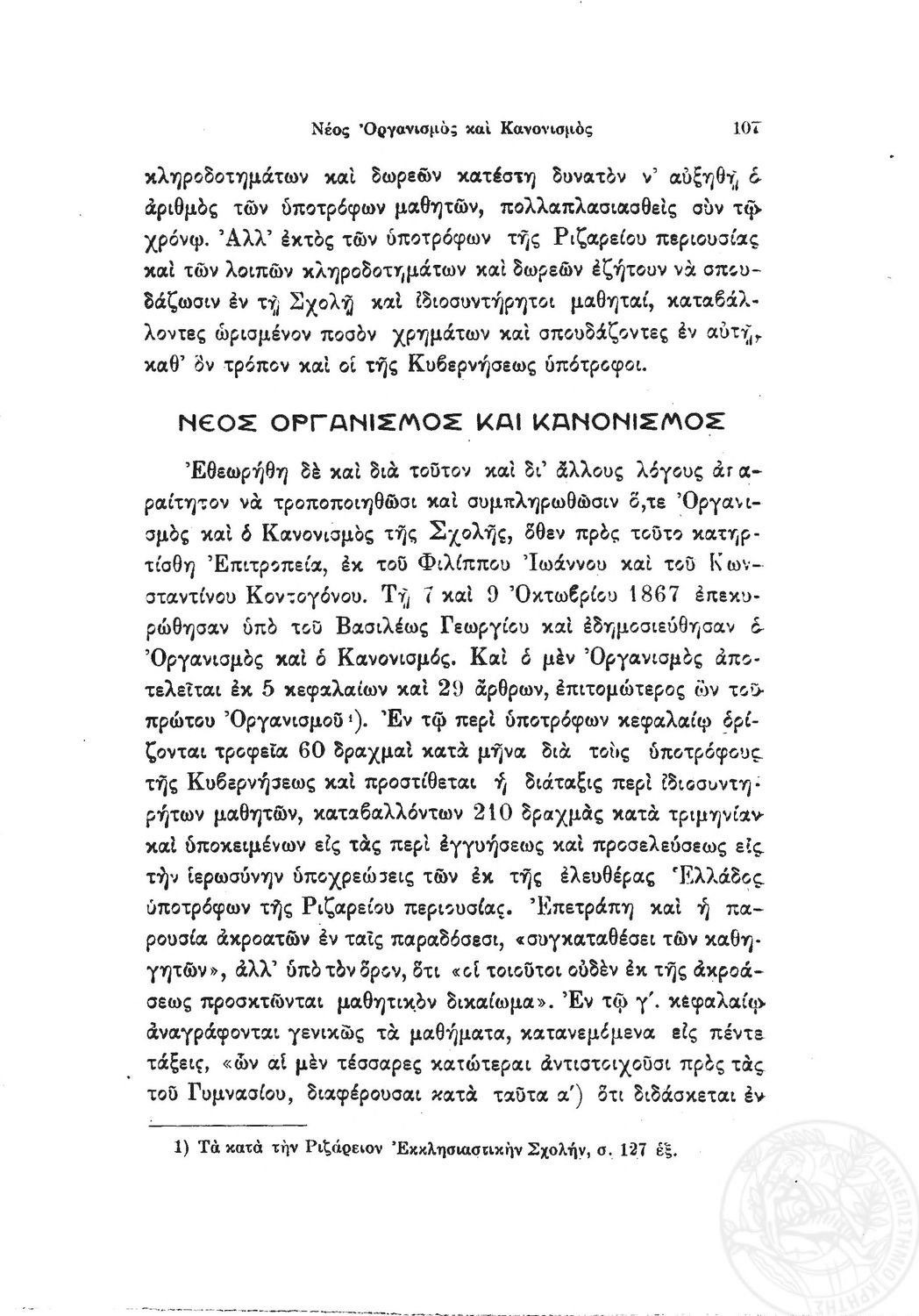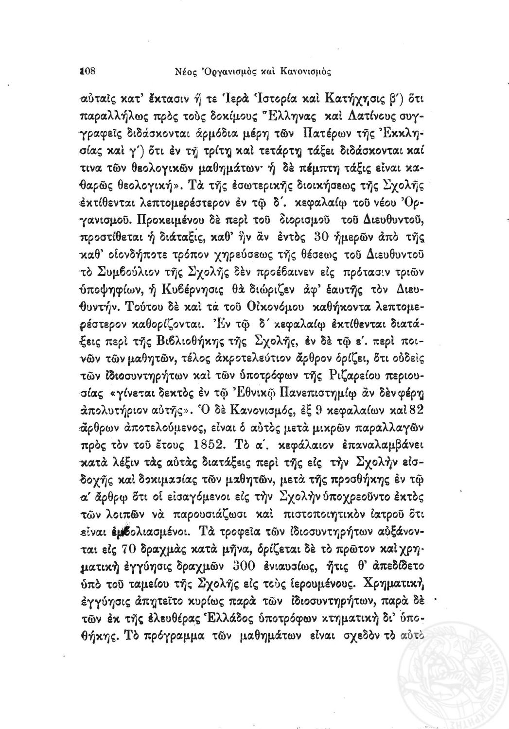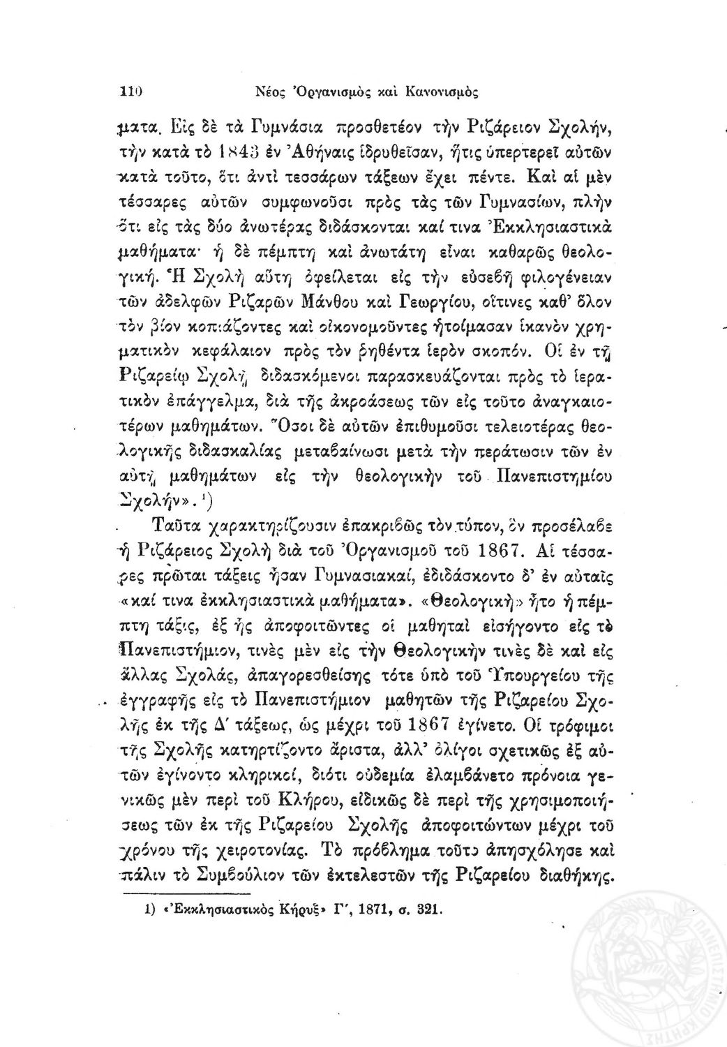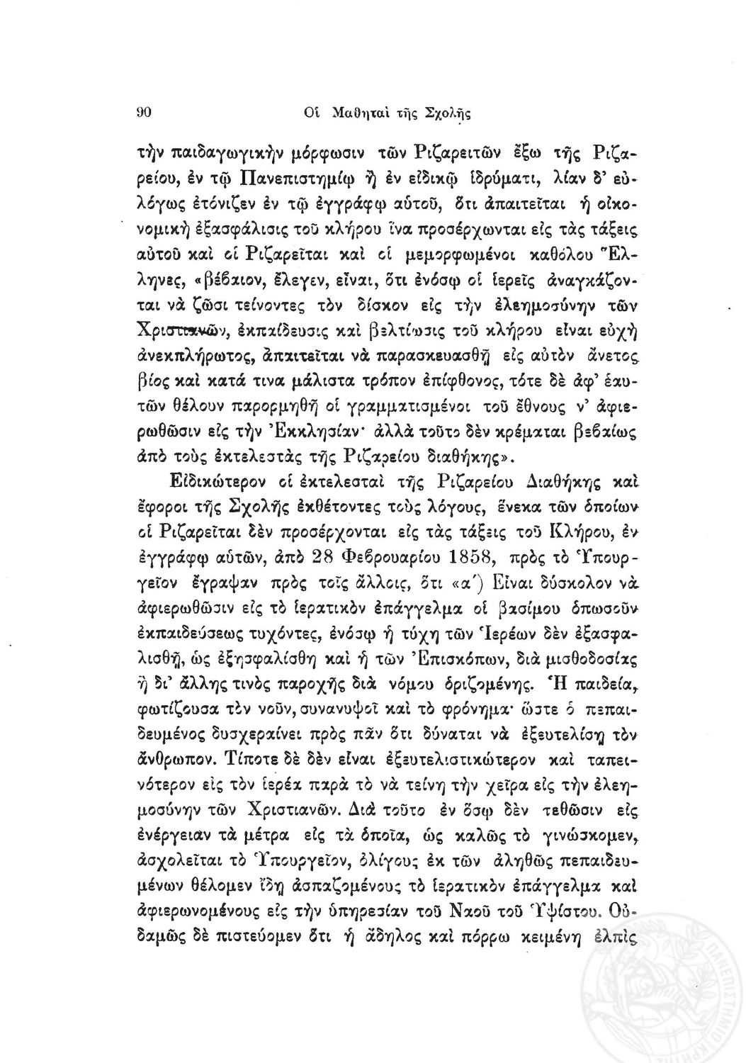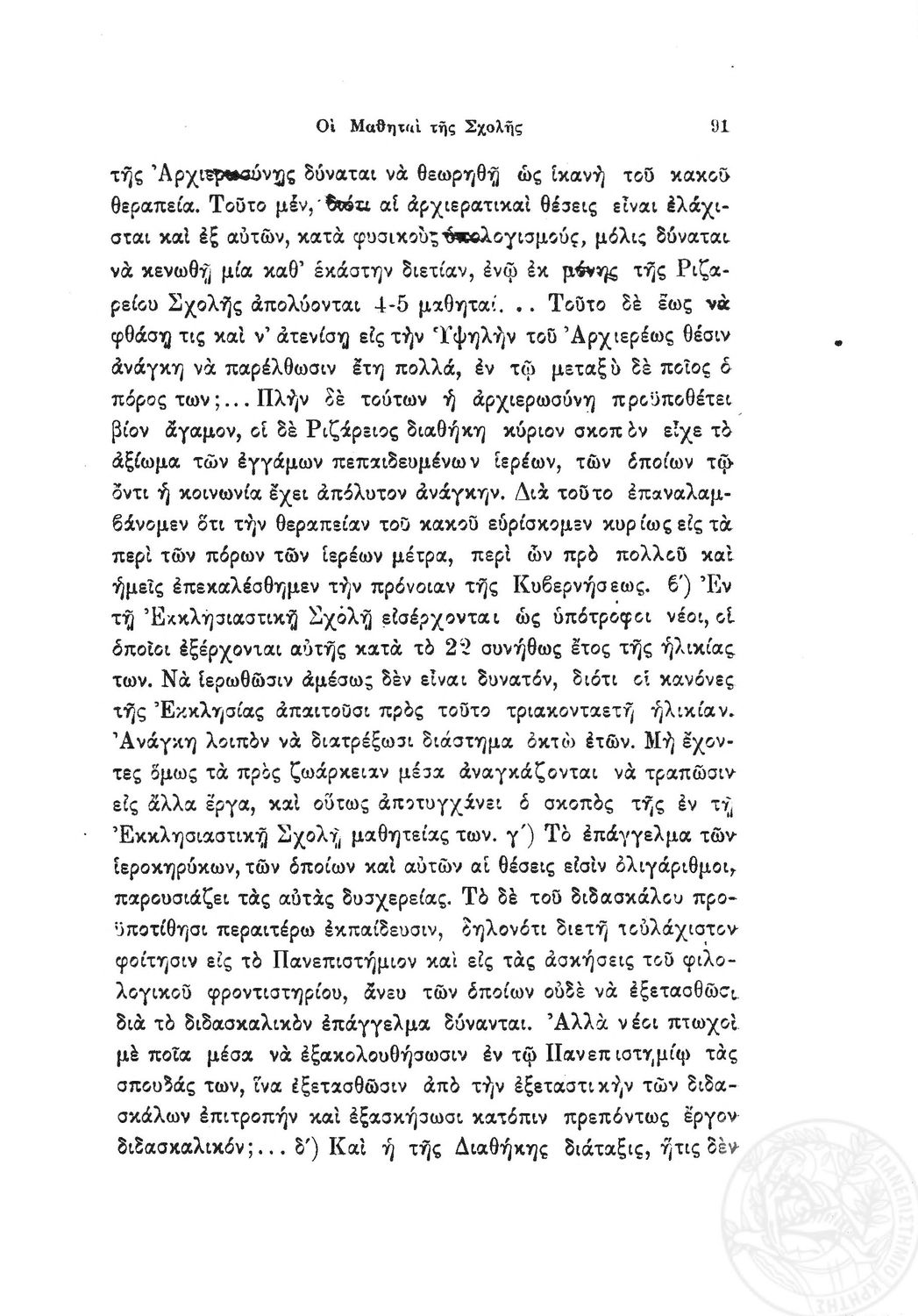 Δ. Περί του οργανισμού της εν Αθήναις Ριζαρείου Εκκλησιαστικής σχολής