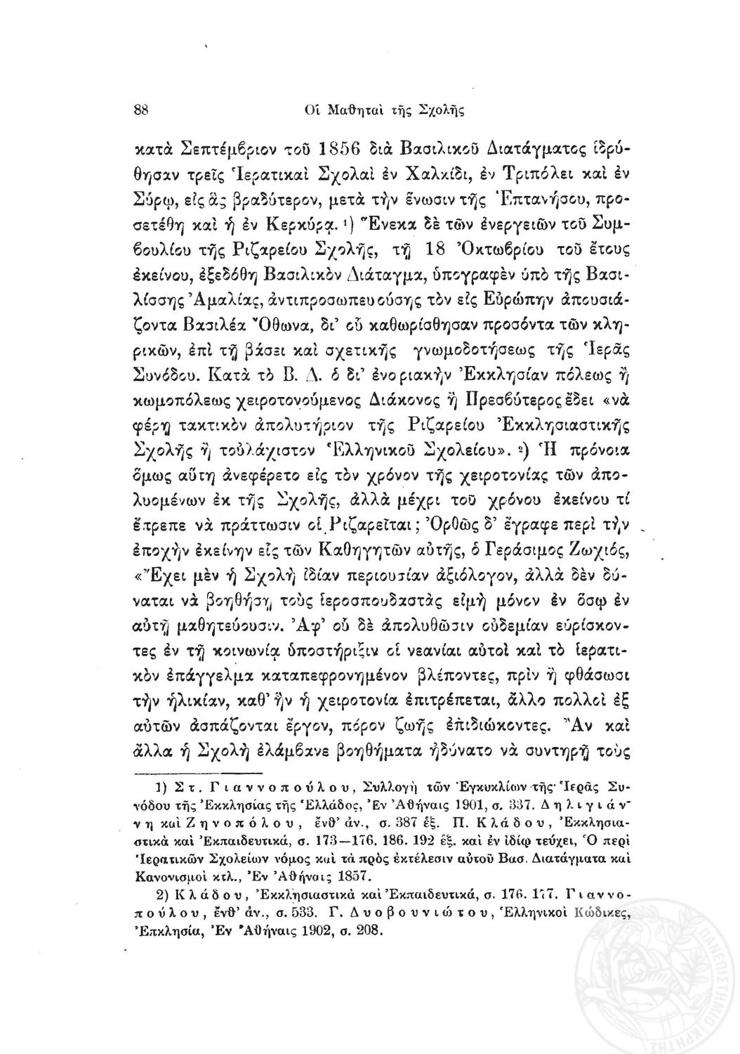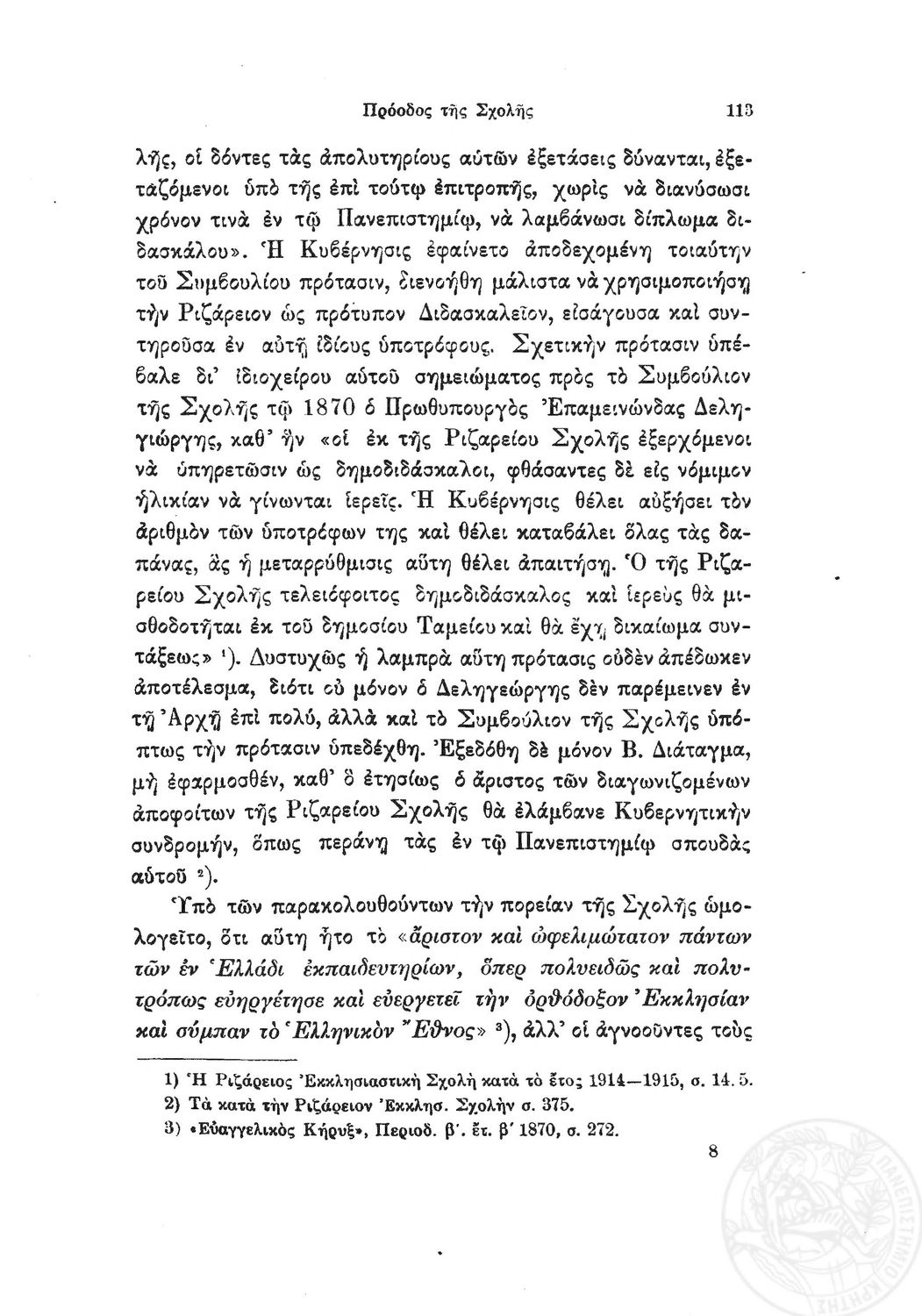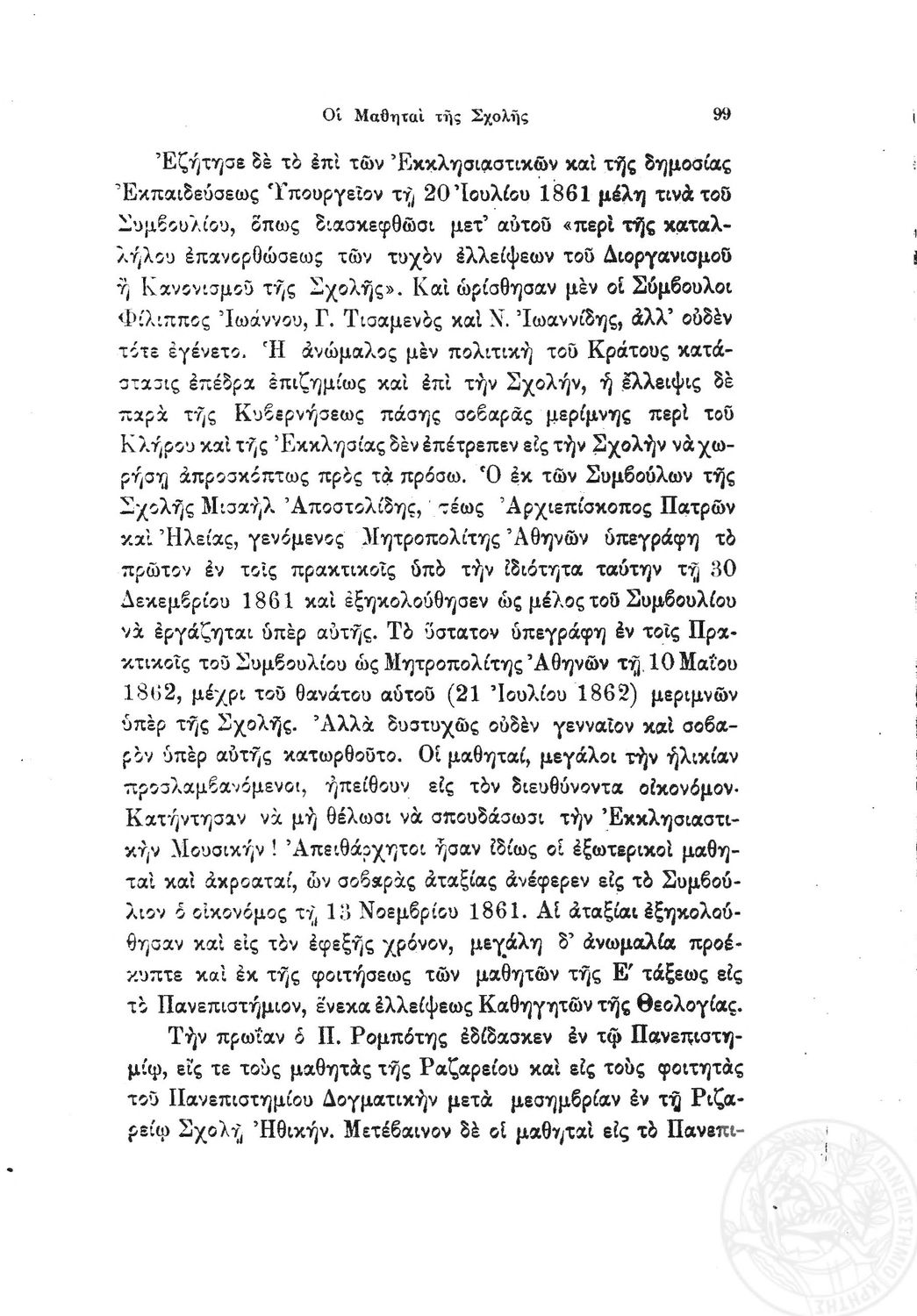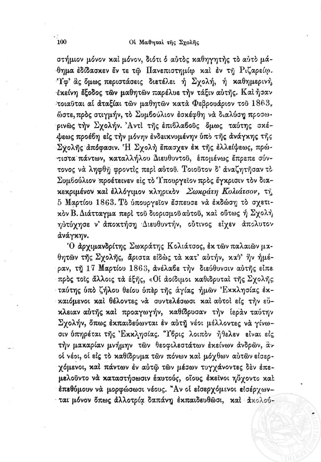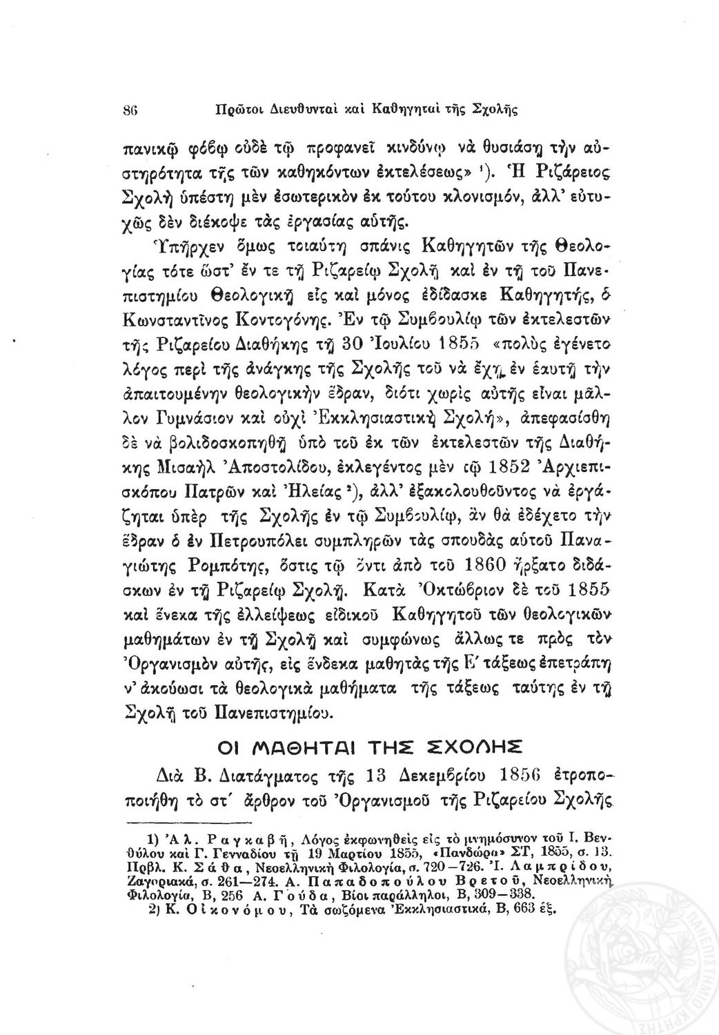 Δ. Περί του οργανισμού της εν Αθήναις Ριζαρείου Εκκλησιαστικής σχολής