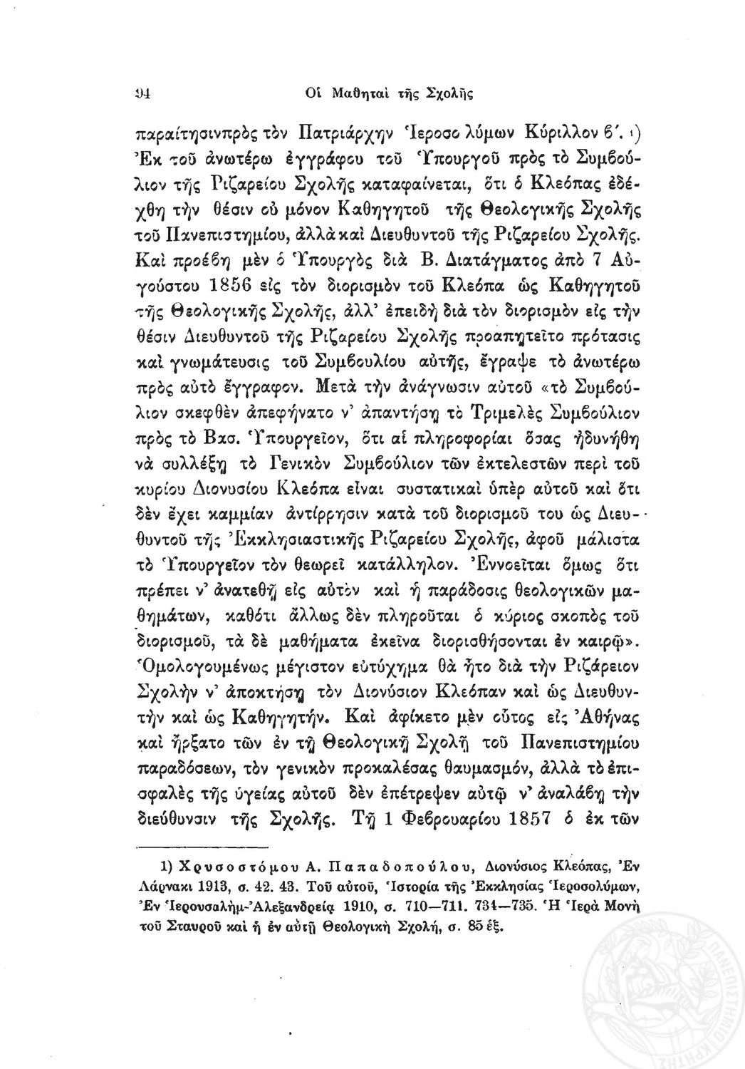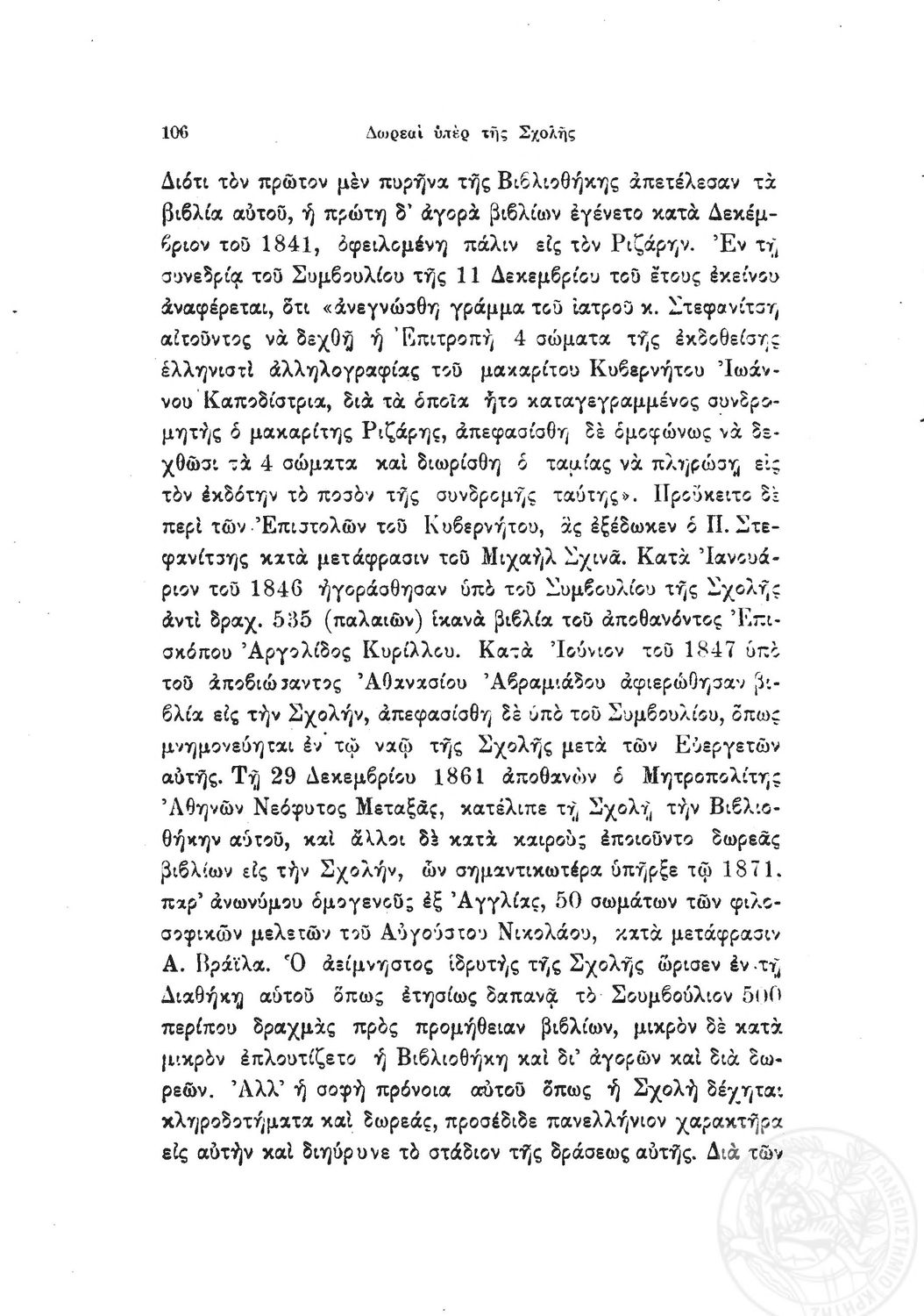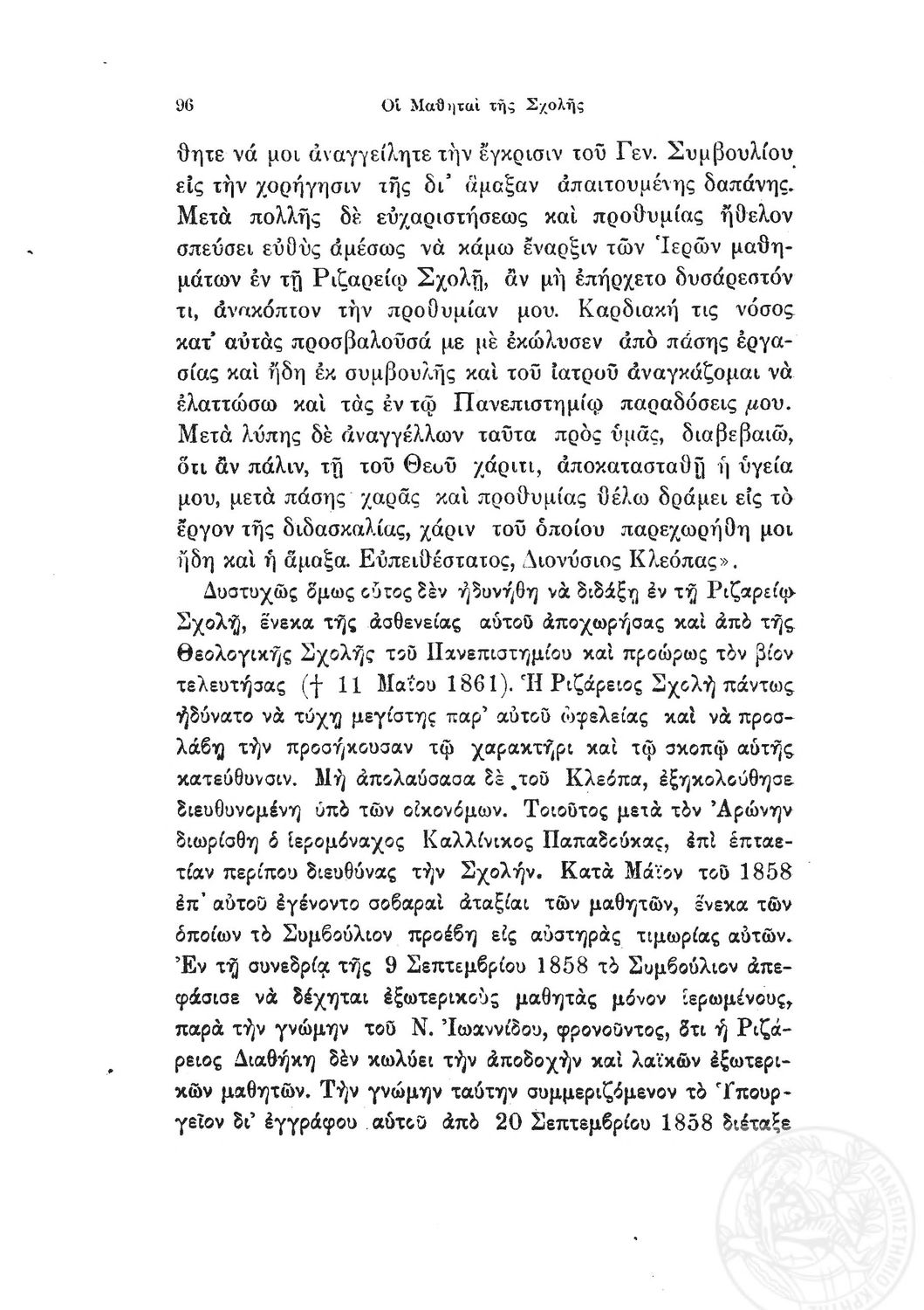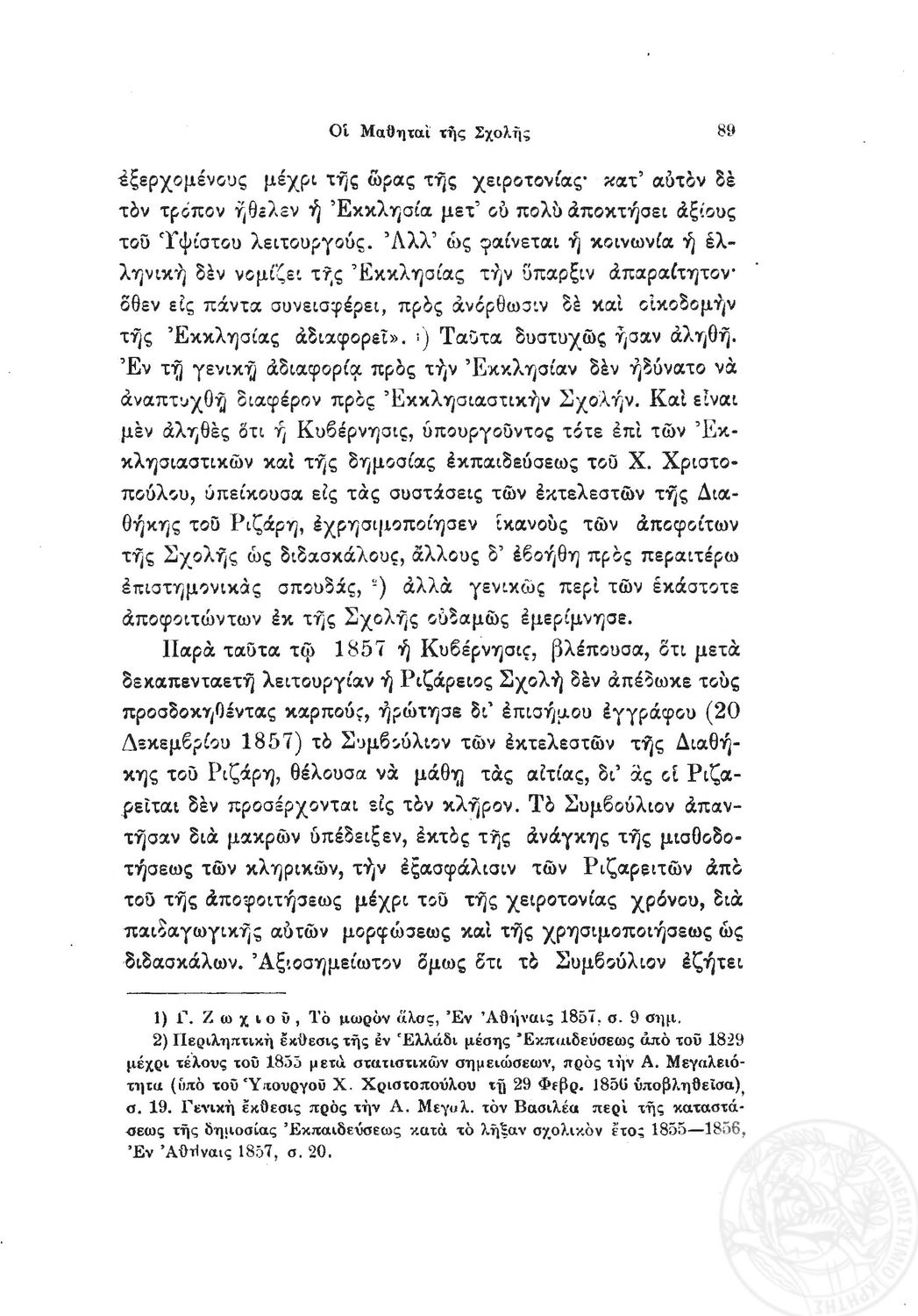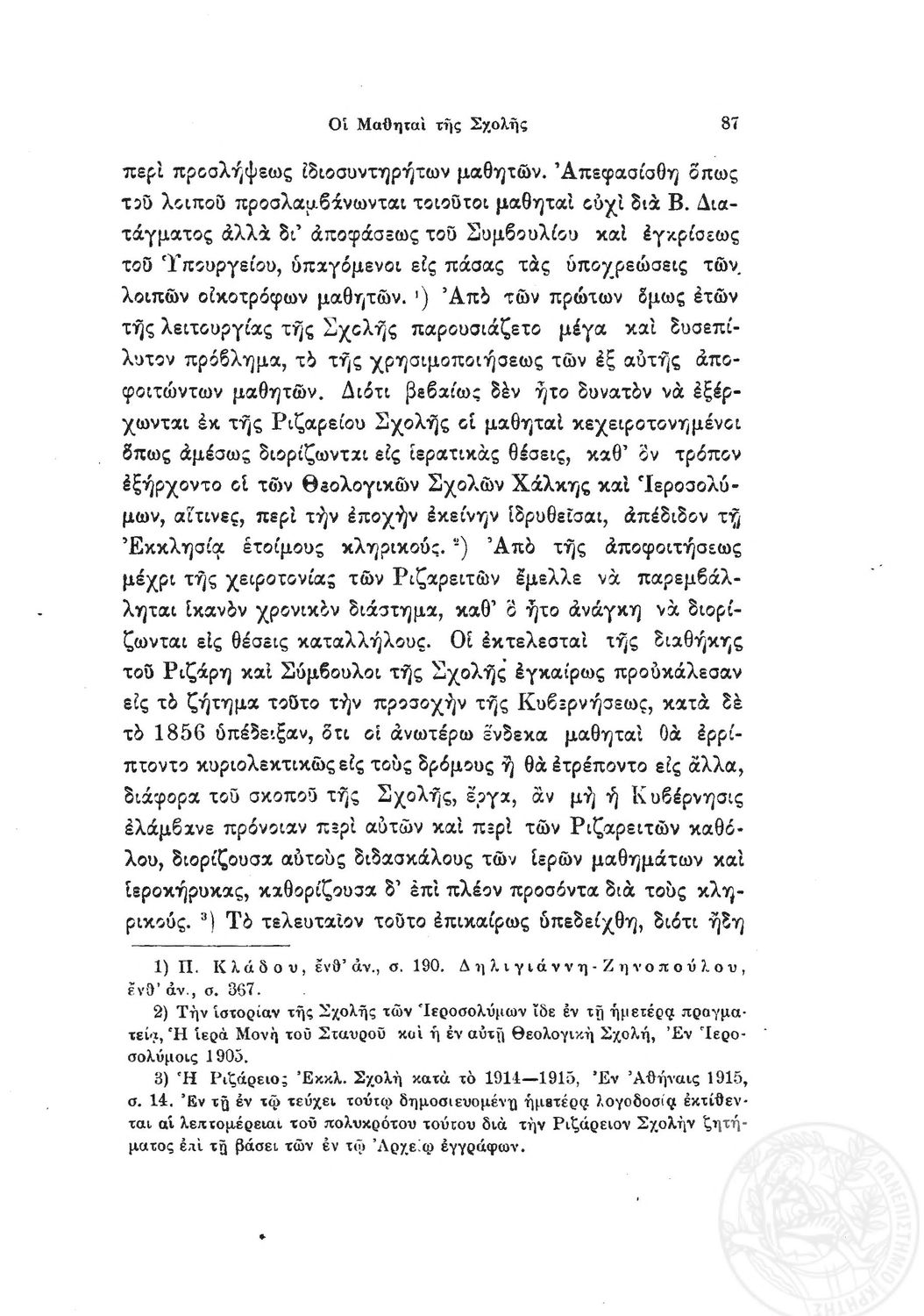 Δ. Περί του οργανισμού της εν Αθήναις Ριζαρείου Εκκλησιαστικής σχολής