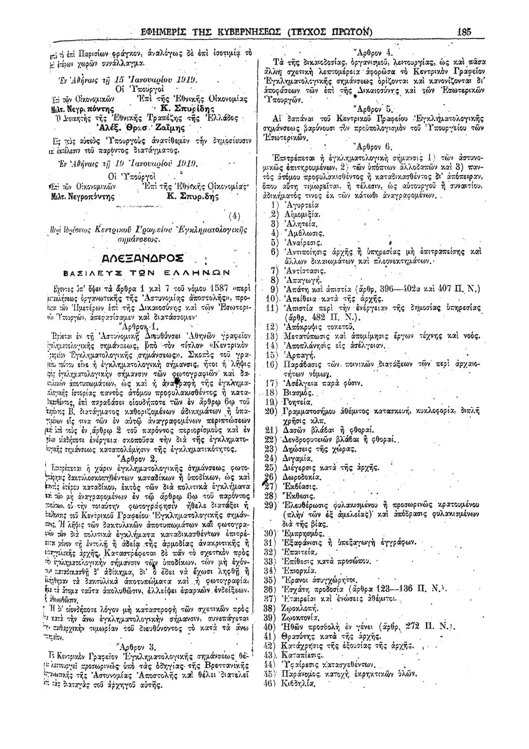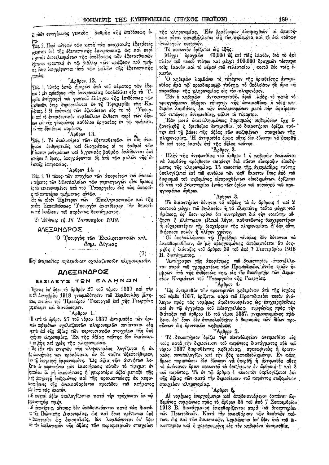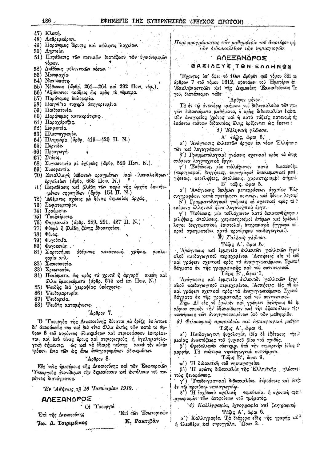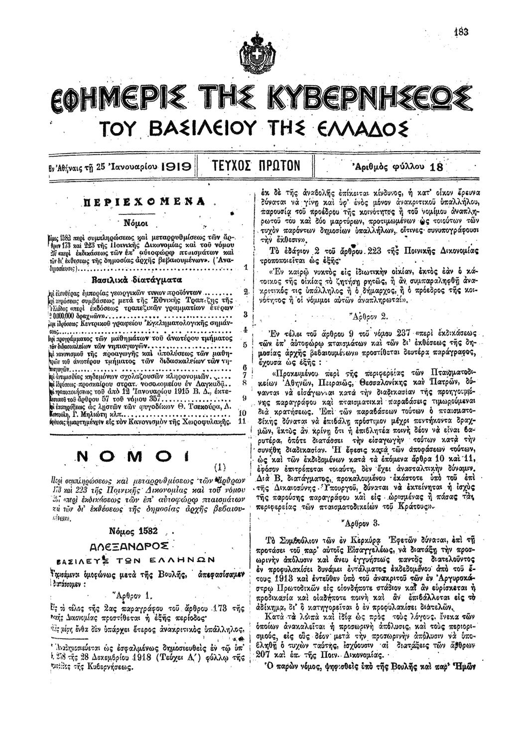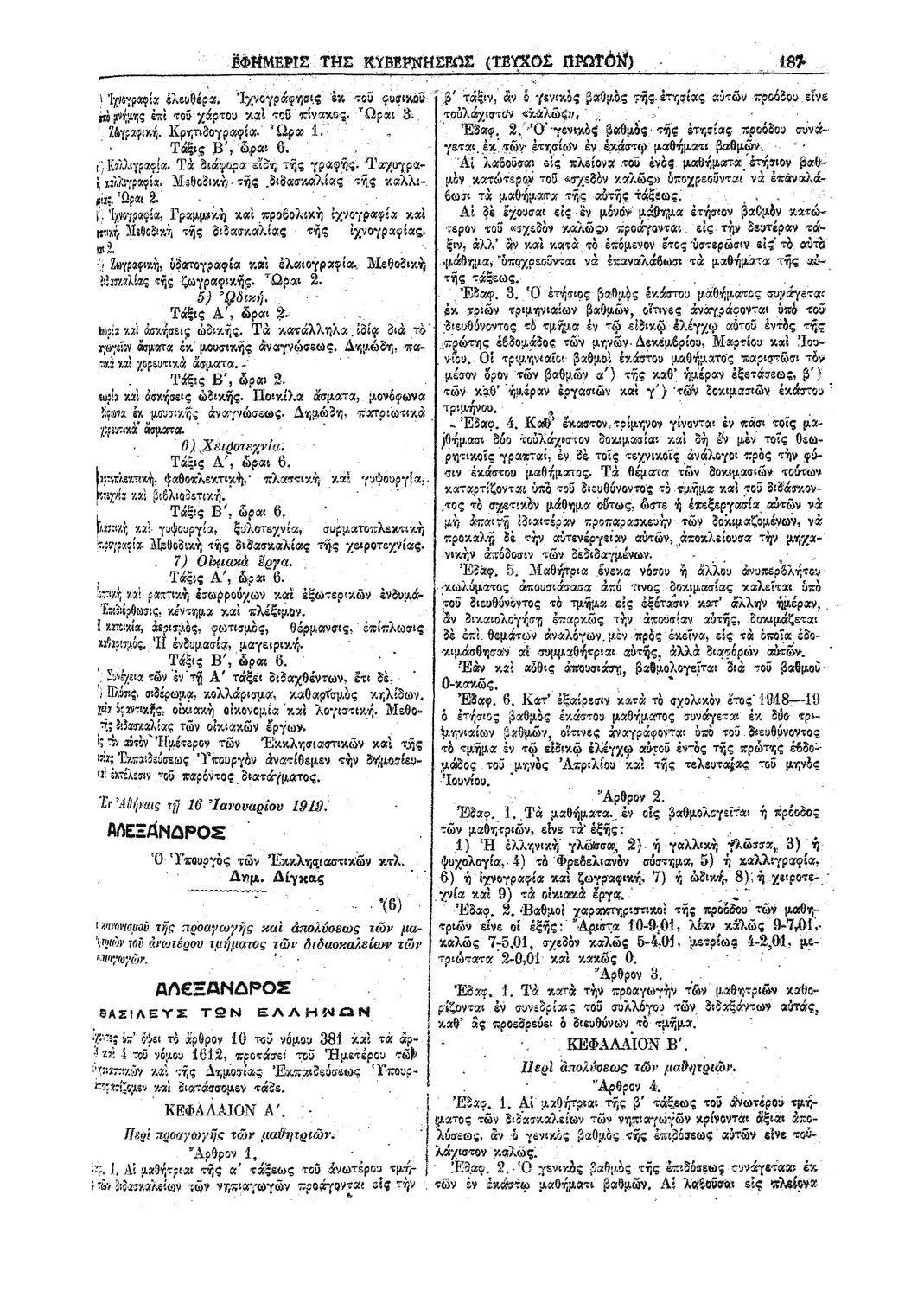 Κωδικός αναγνώρισης: 1919-018A Τίτλος: ΦΕΚ 18/25.01.1919, Τεύχος Α Μέγεθος και υπόστρωμα: Φεκ προγραμμάτων σπουδών, 3 σελίδες. |